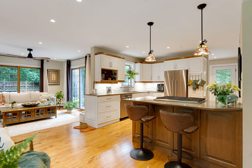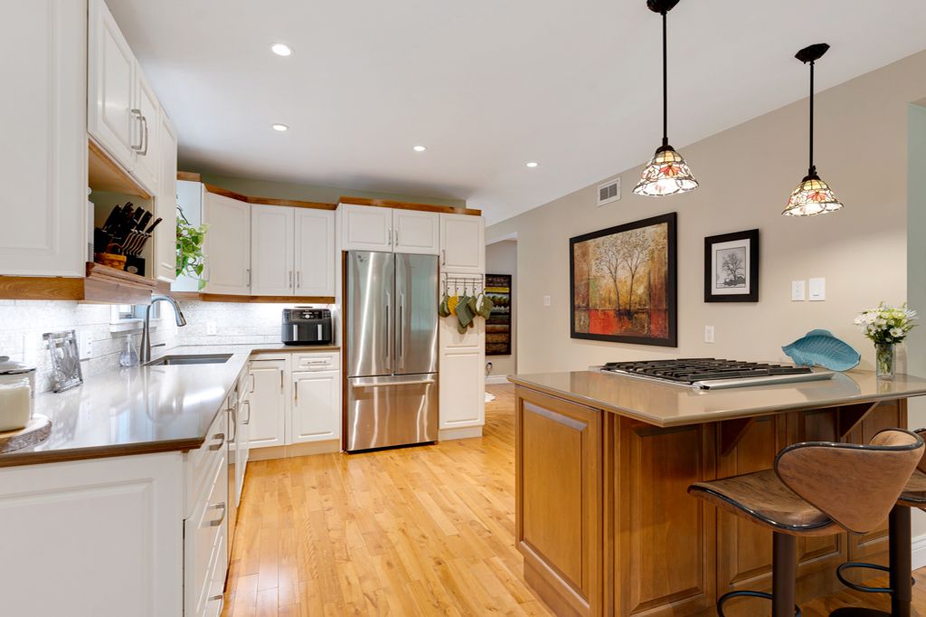 • Newly updated kitchen featuring quartz counters and upscale appliances.