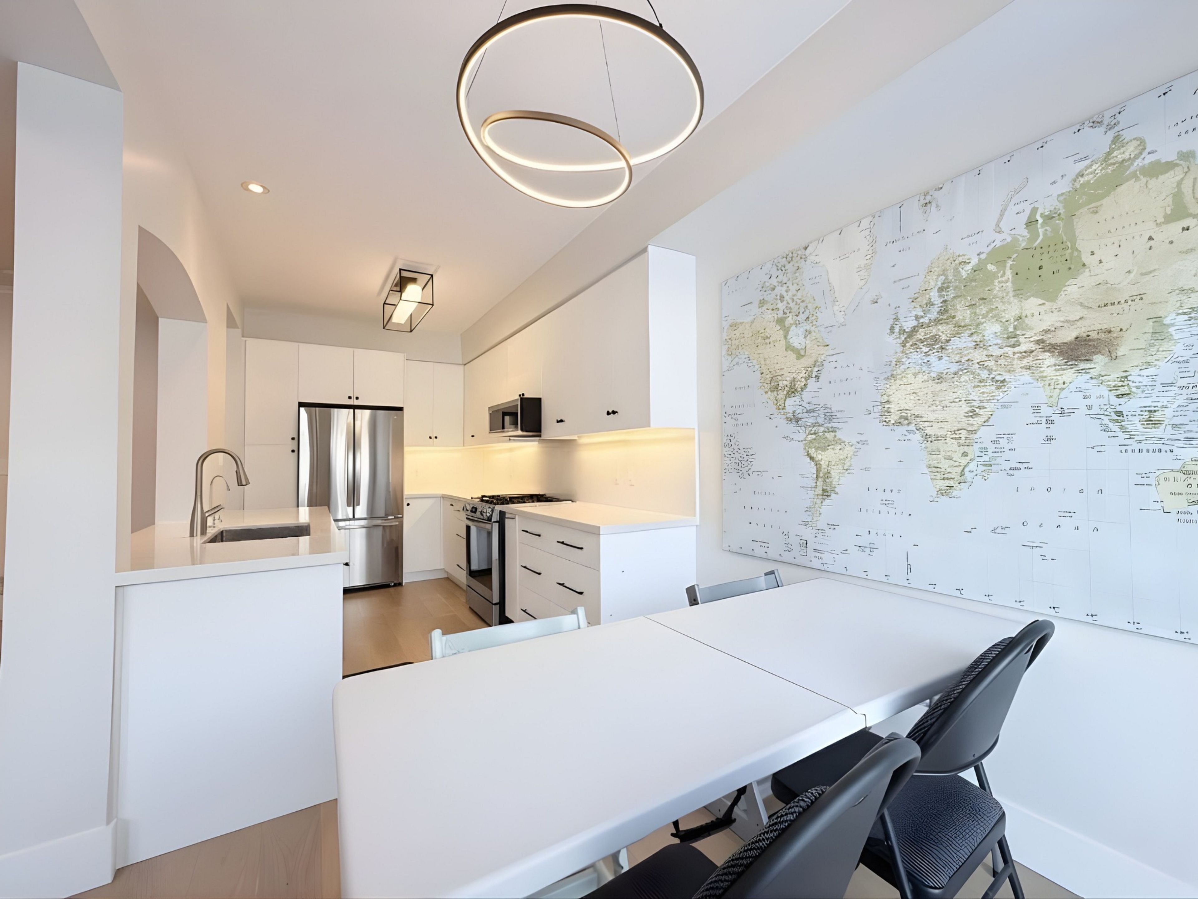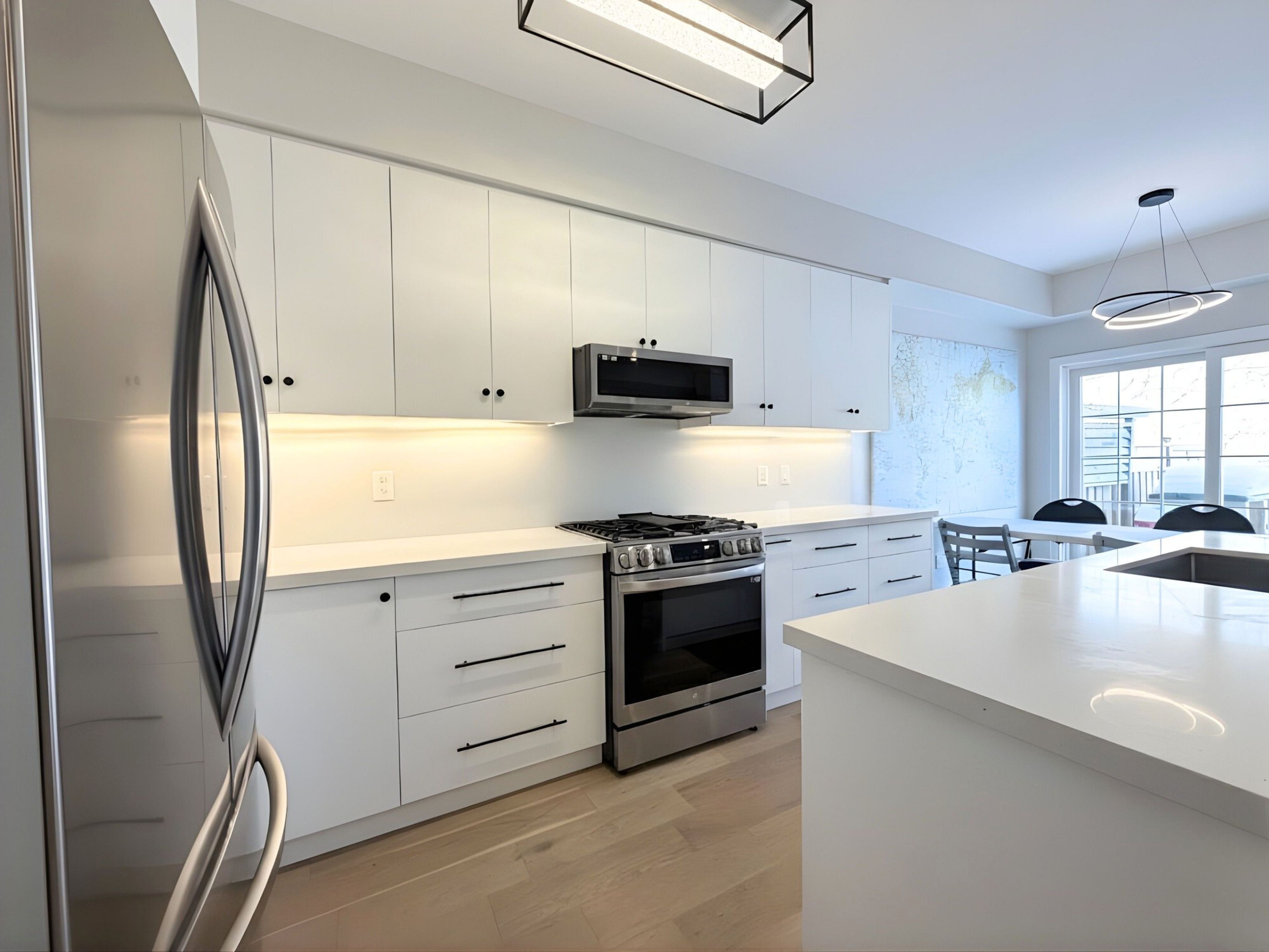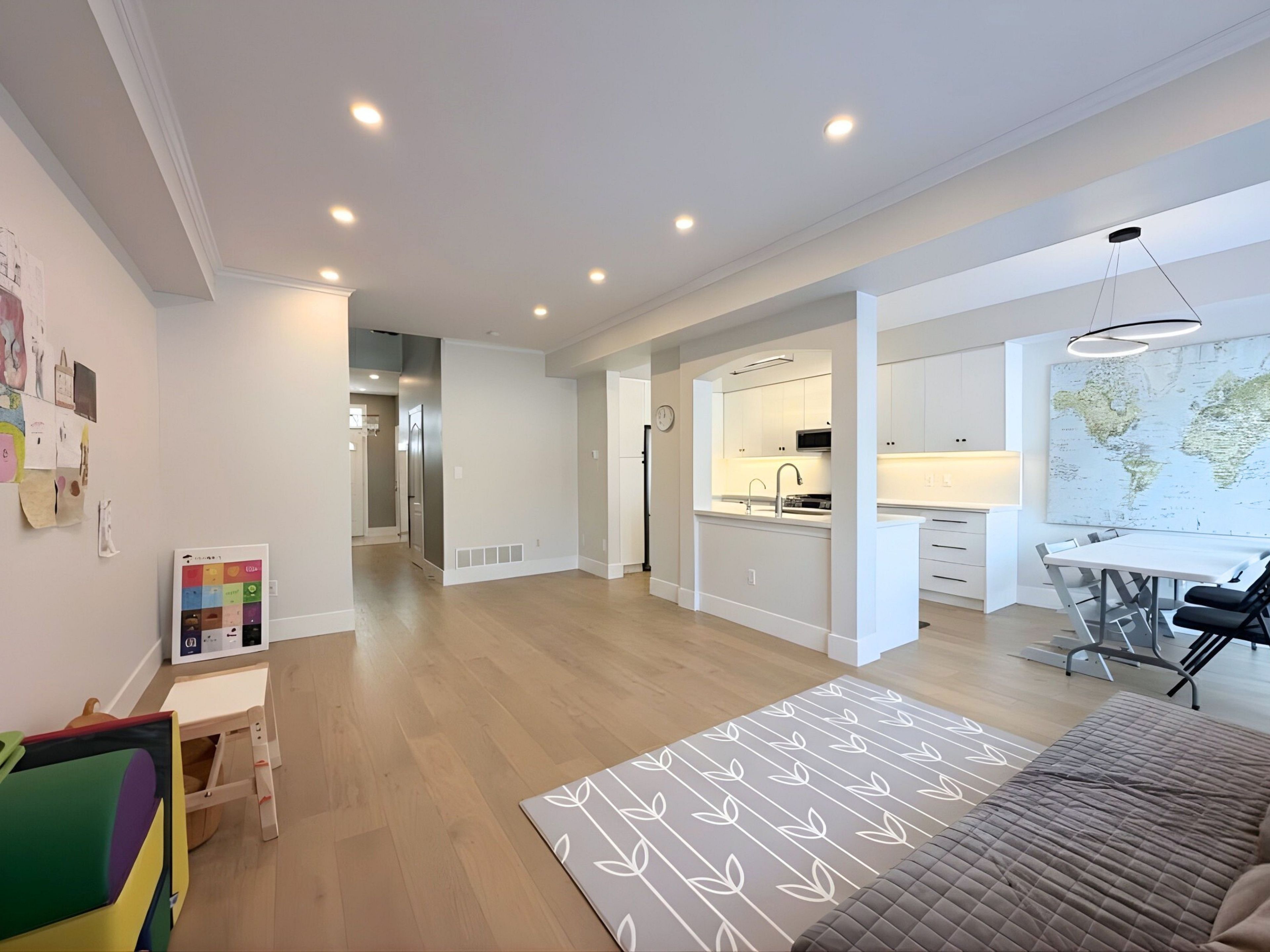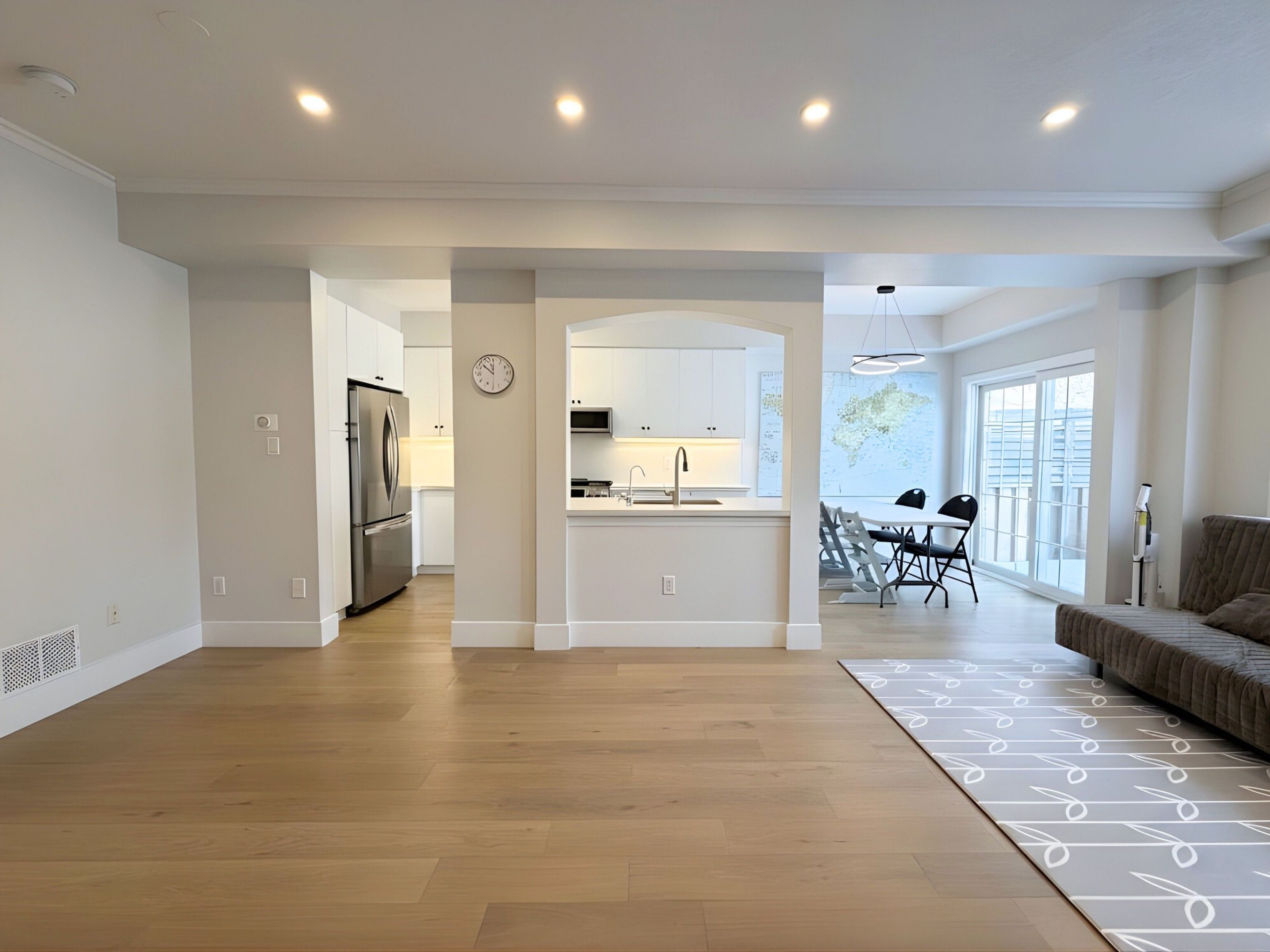 • Spacious living area and upgraded kitchen with quartz countertops.