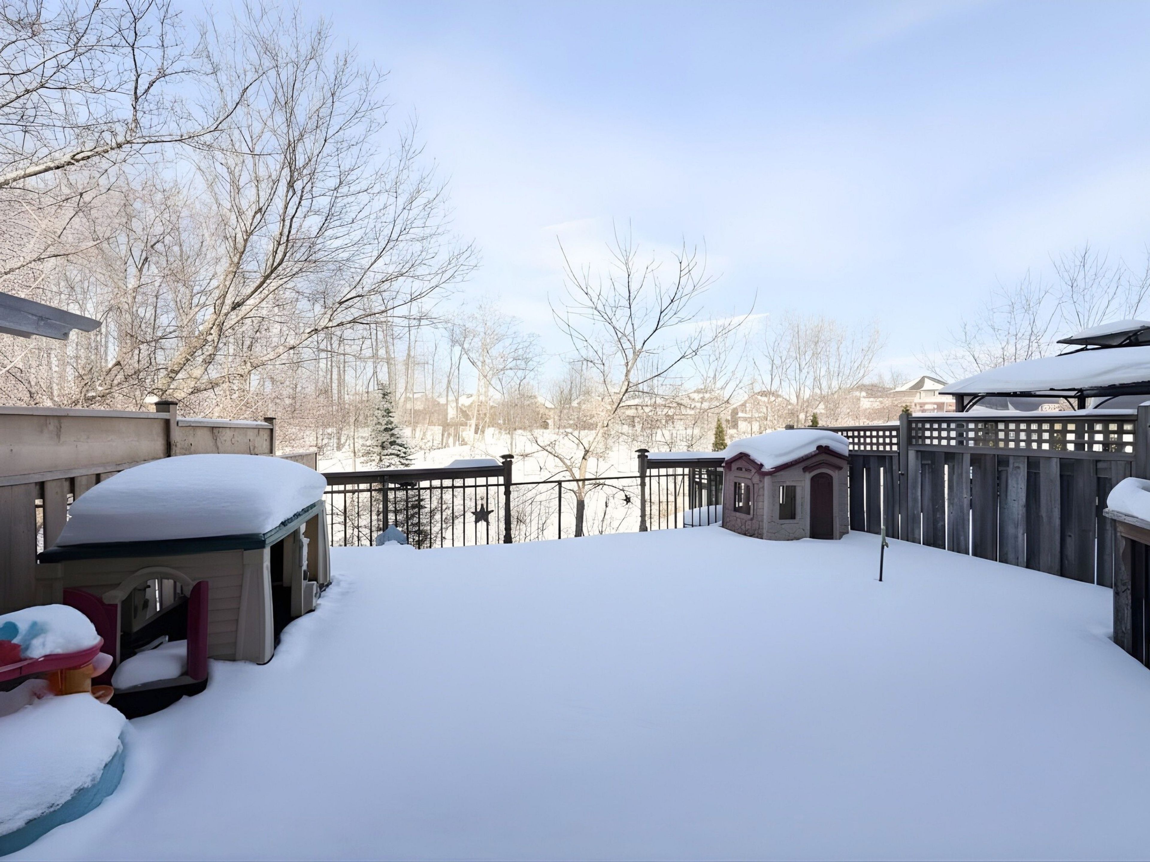 • Private fenced backyard with no rear neighbours for added peace.