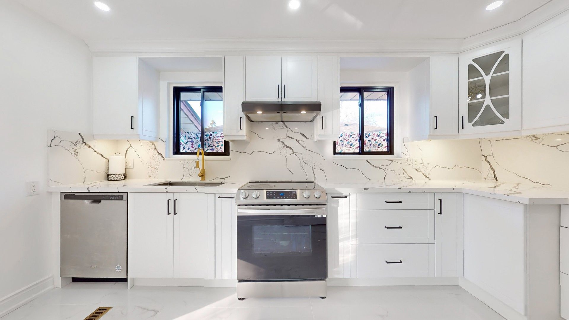 Stunning fully renovated 3+3 detached bedroom home with income potential! Welcome to this beautifully fully renovated detached home featuring 3 spacious bedrooms on the main level and a separate 3-bedroom basement apartment-perfect for extended family or rental income. The basement offers two modern washrooms, a functional layout, and excellent living space. Located in a highly desirable, family-friendly neighborhood, this home is steps to top-rated schools, lake ontario, public transit, shopping, restaurants, and places of worship-offering unmatched convenience and lifestyle. Enjoy a huge private backyard, ideal for entertaining or family gatherings. Additional features include a 1-car attached garage and a 2-car driveway, providing ample parking. A move-in-ready home in an unbeatable location-perfect for families or investors alike. Don't miss this incredible opportunity!