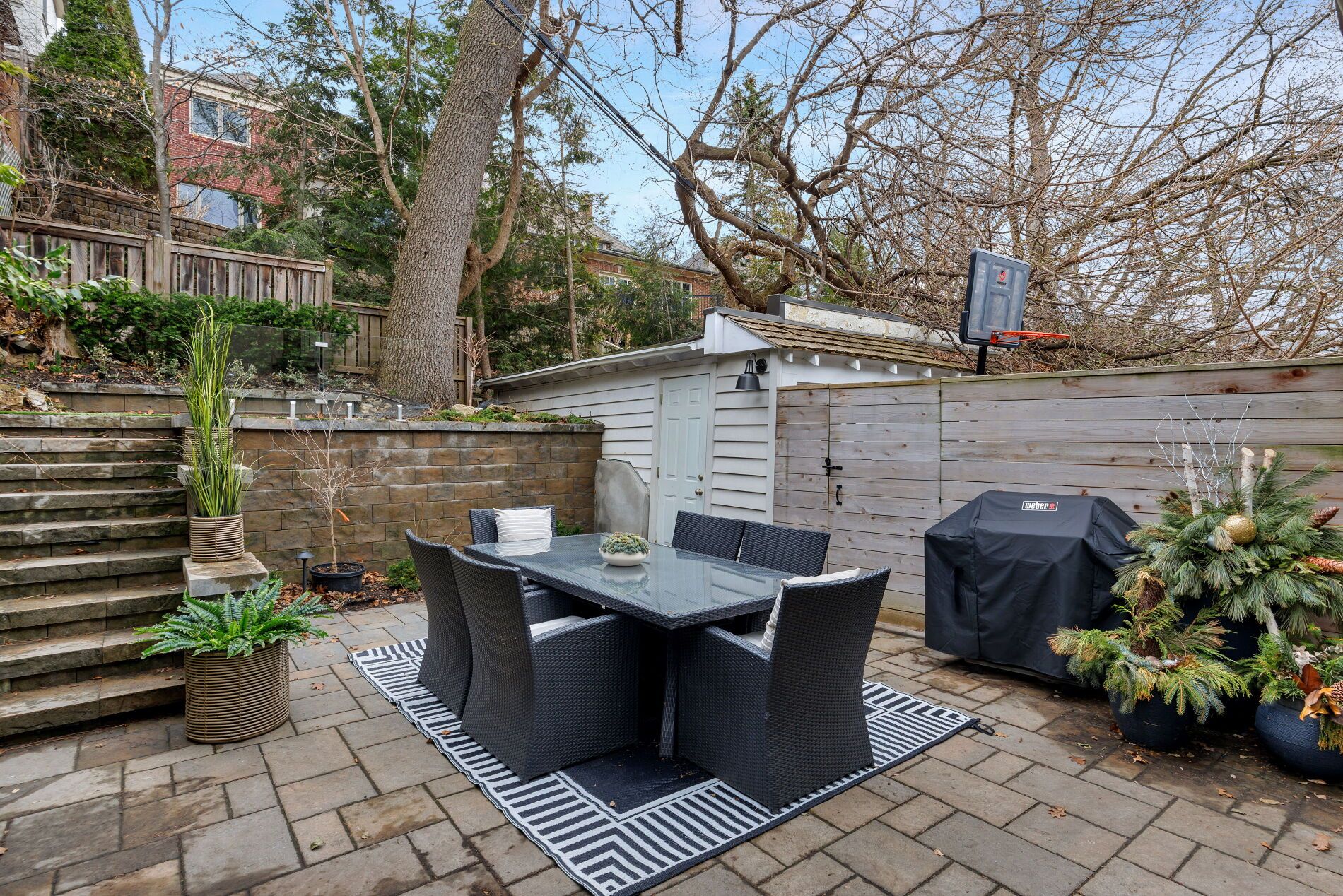 • Beautifully landscaped backyard with gardens and entertainment spaces.