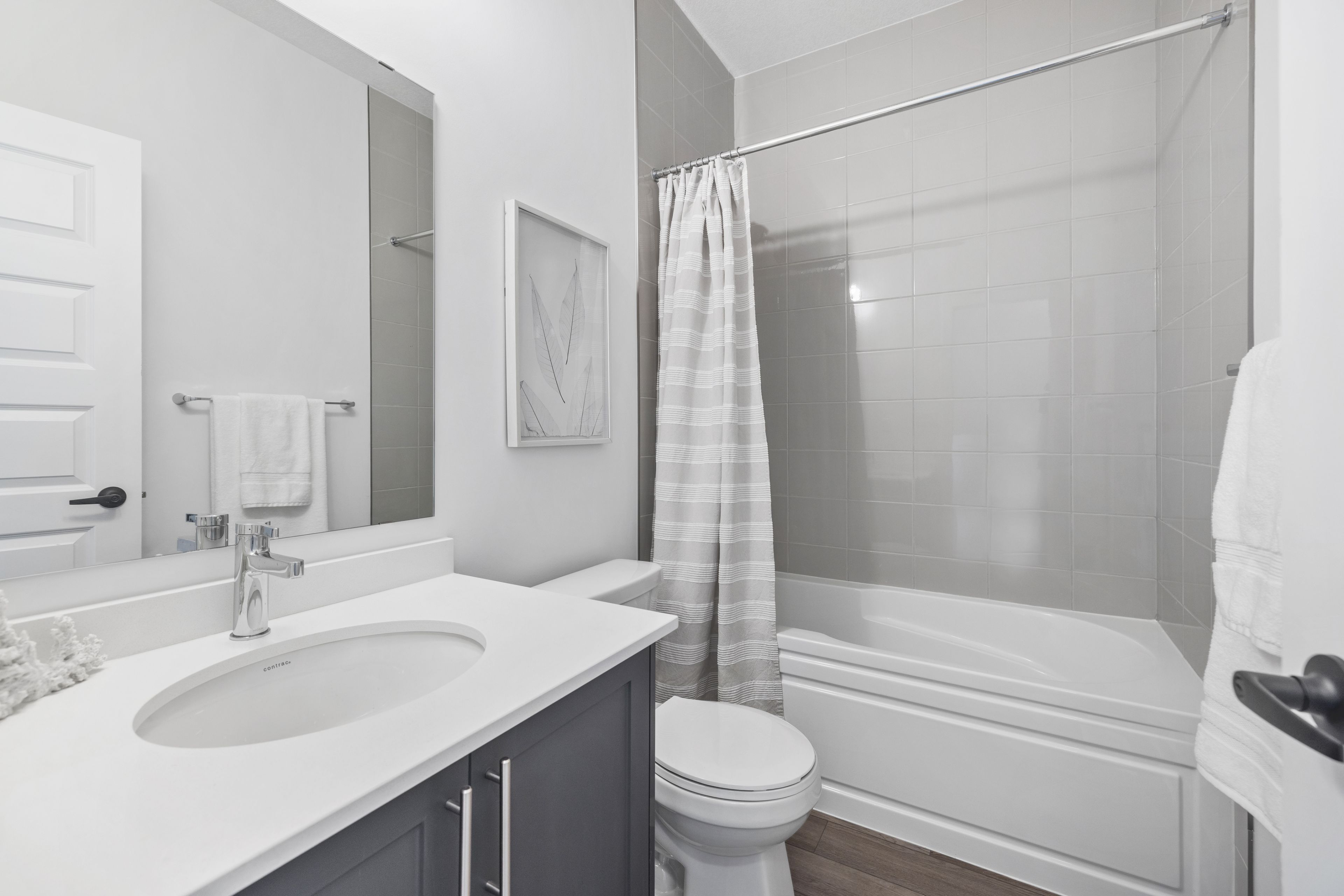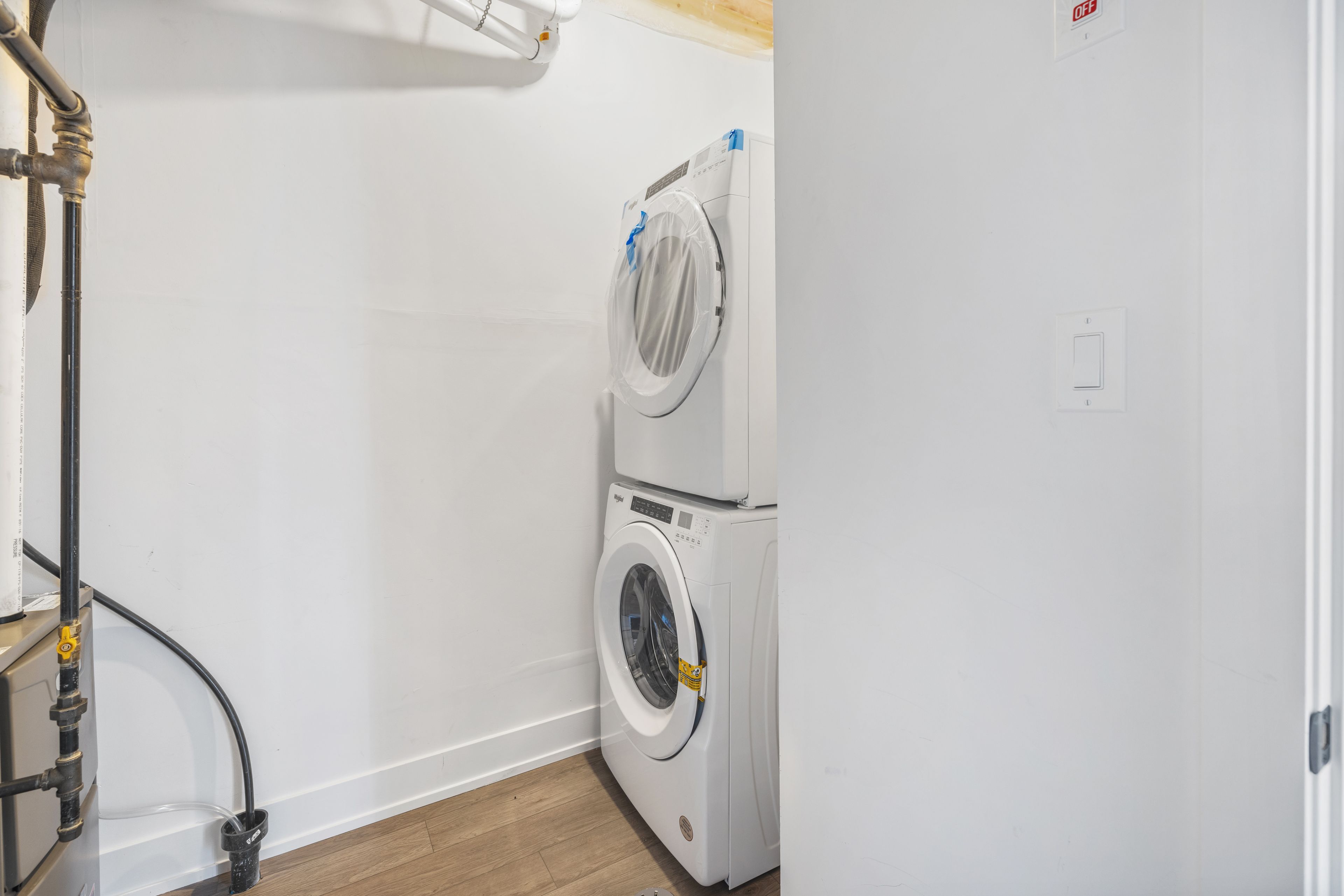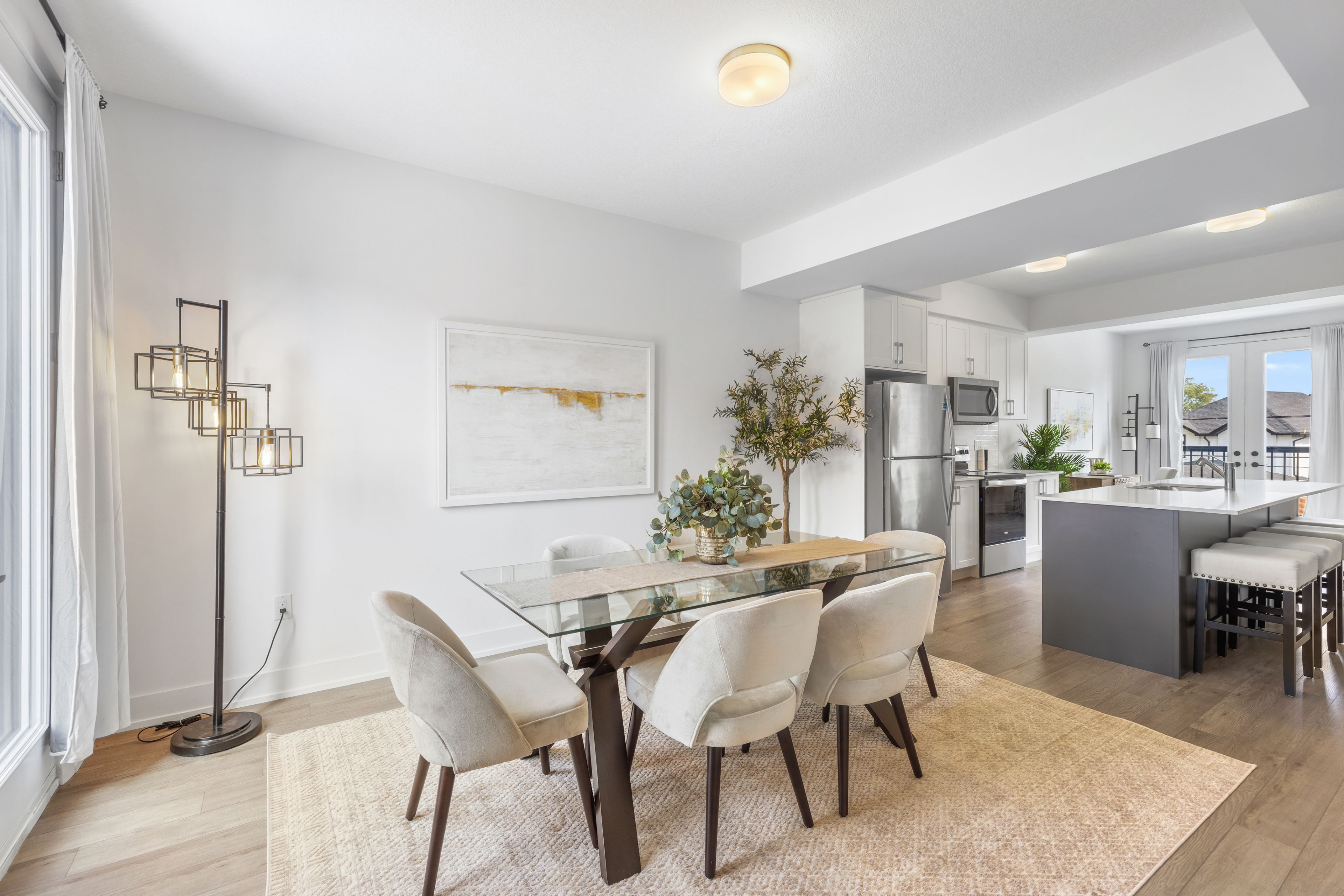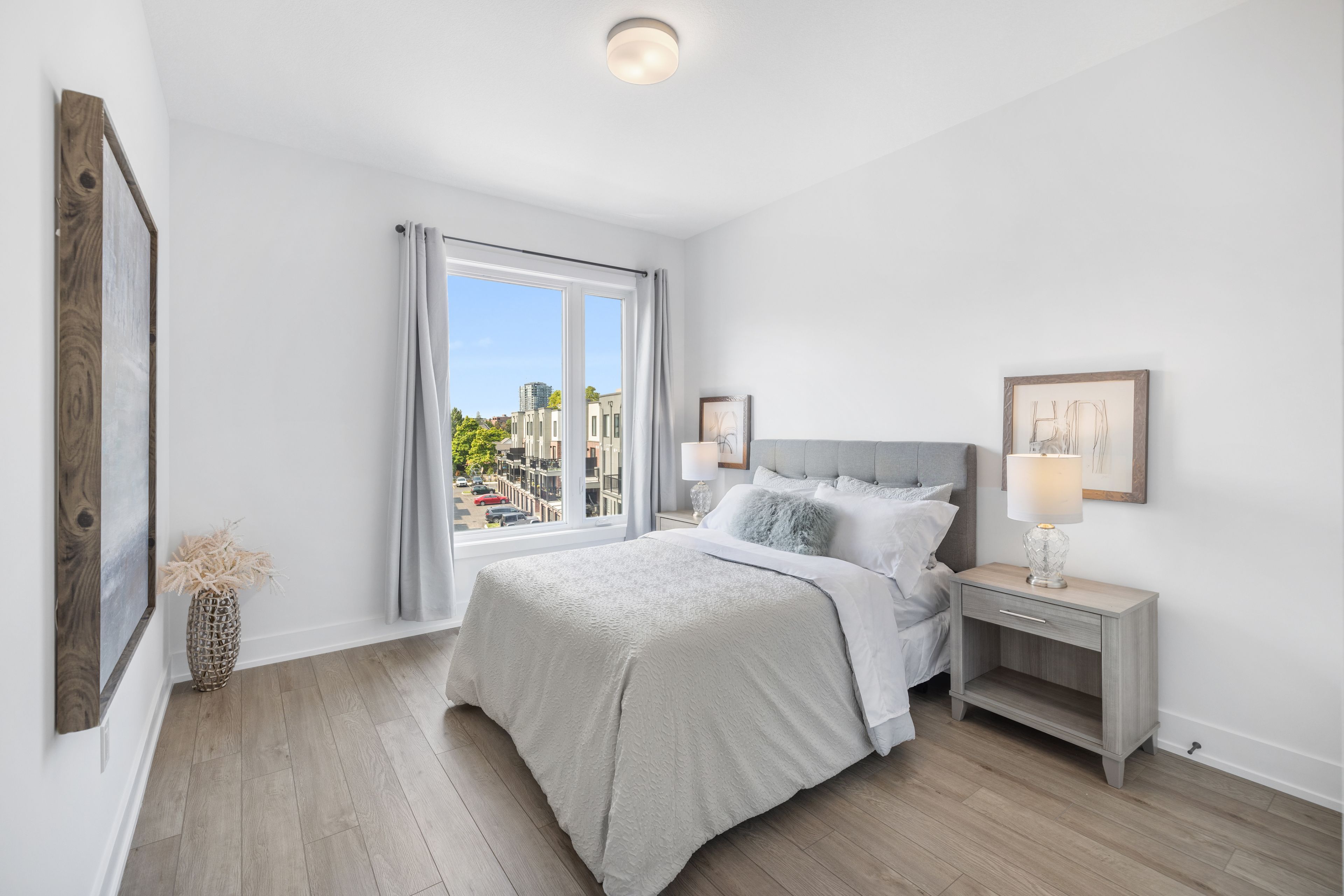 • Modern finishes with quartz countertops and in-suite laundry for convenience.