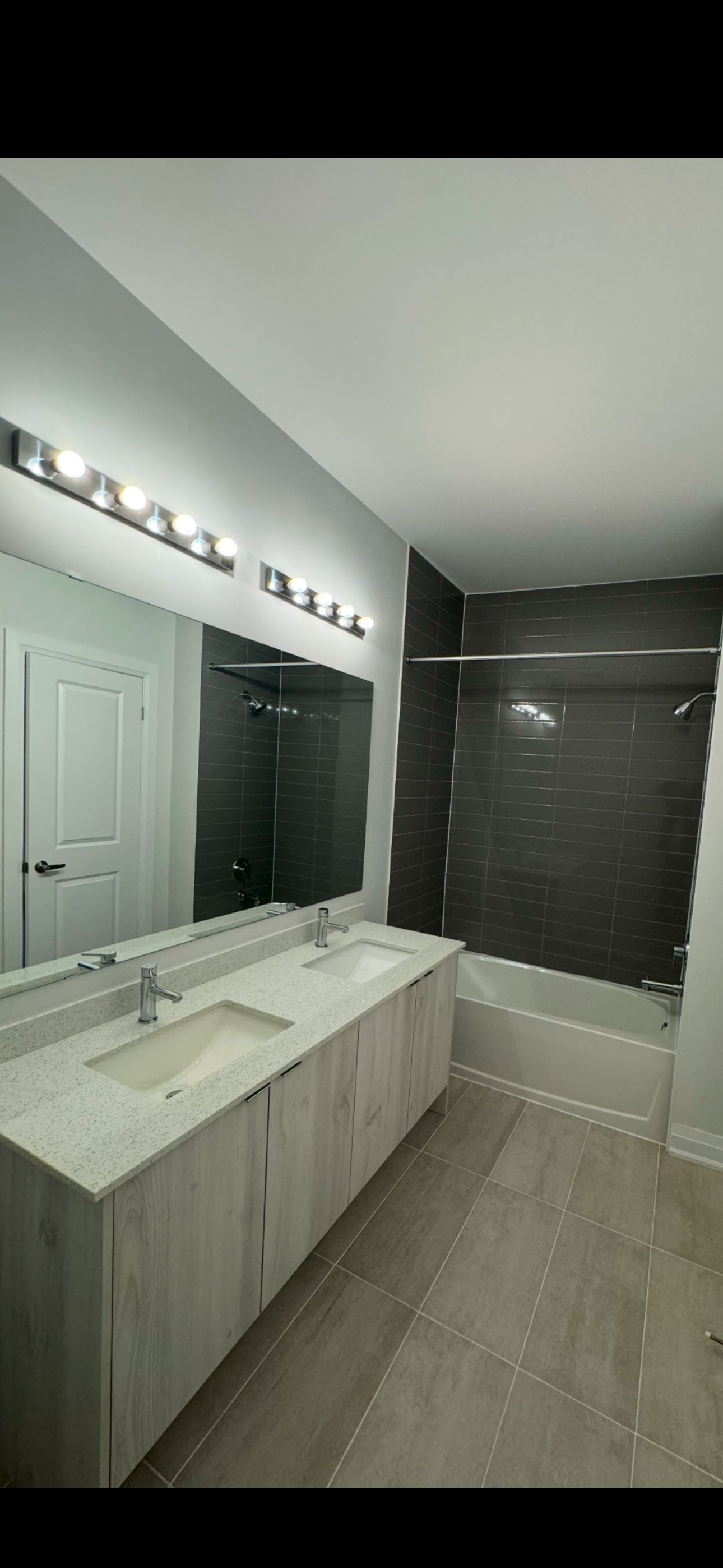 • Modern kitchen featuring quartz countertops and stainless steel appliances.