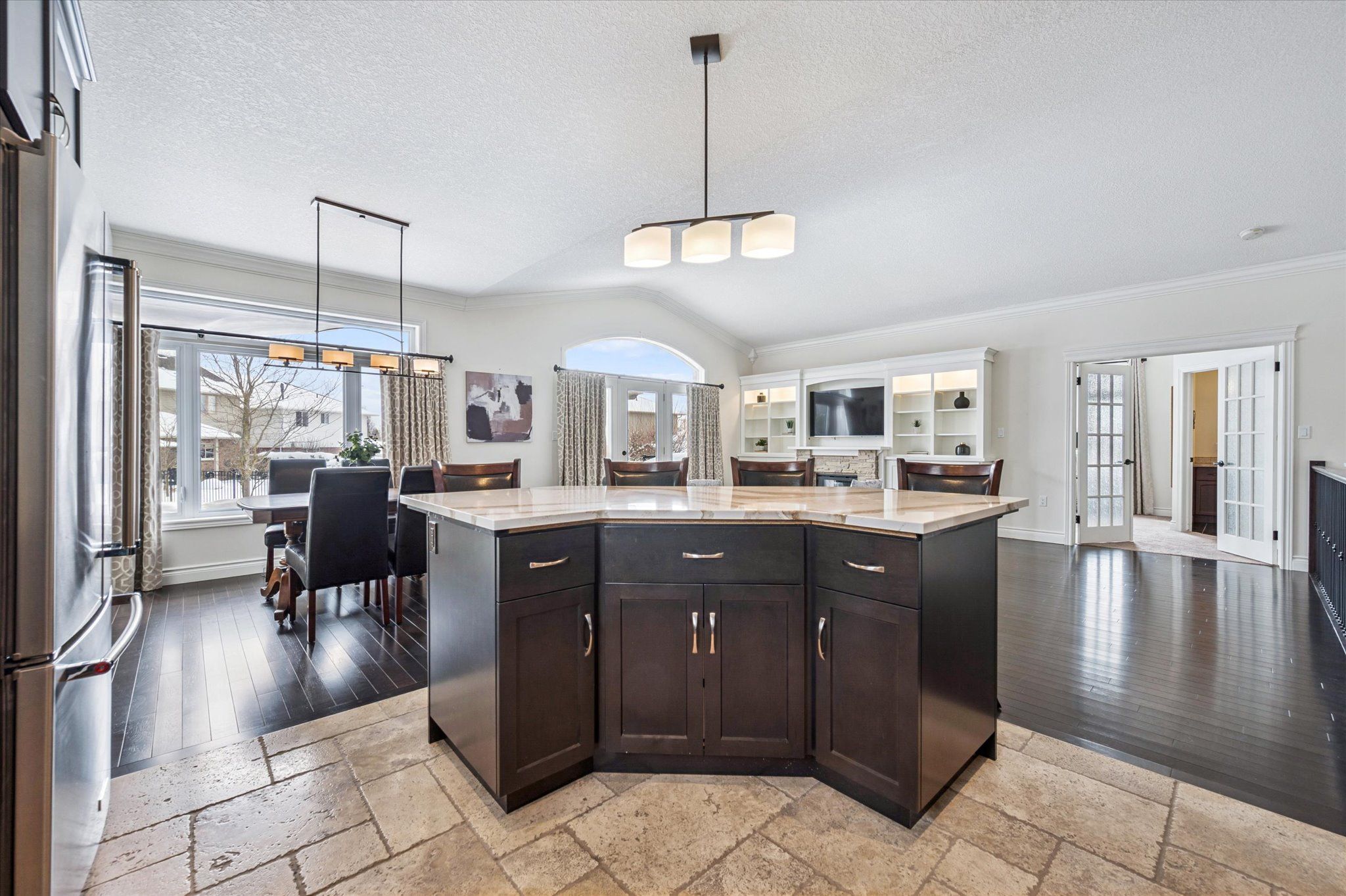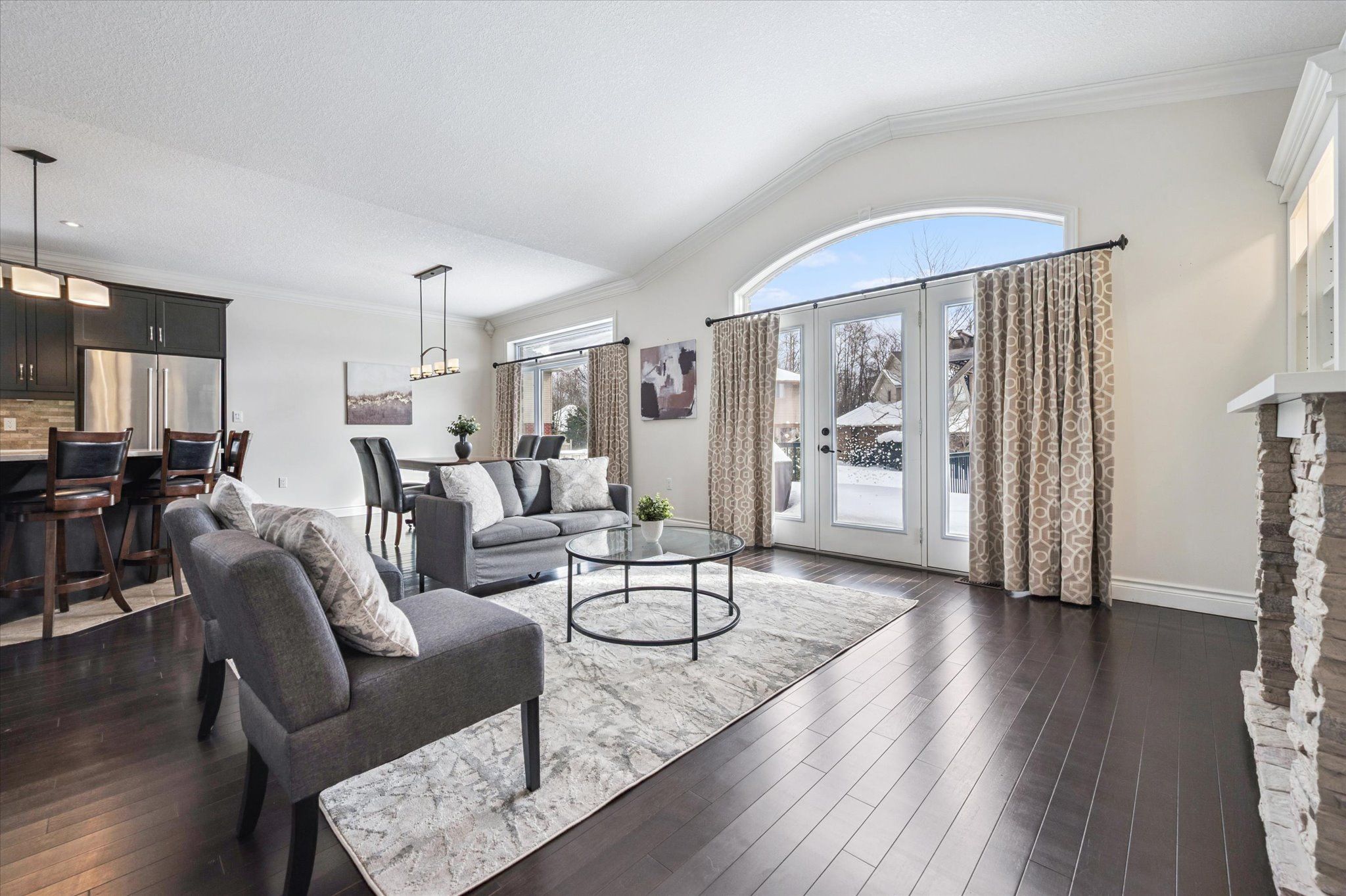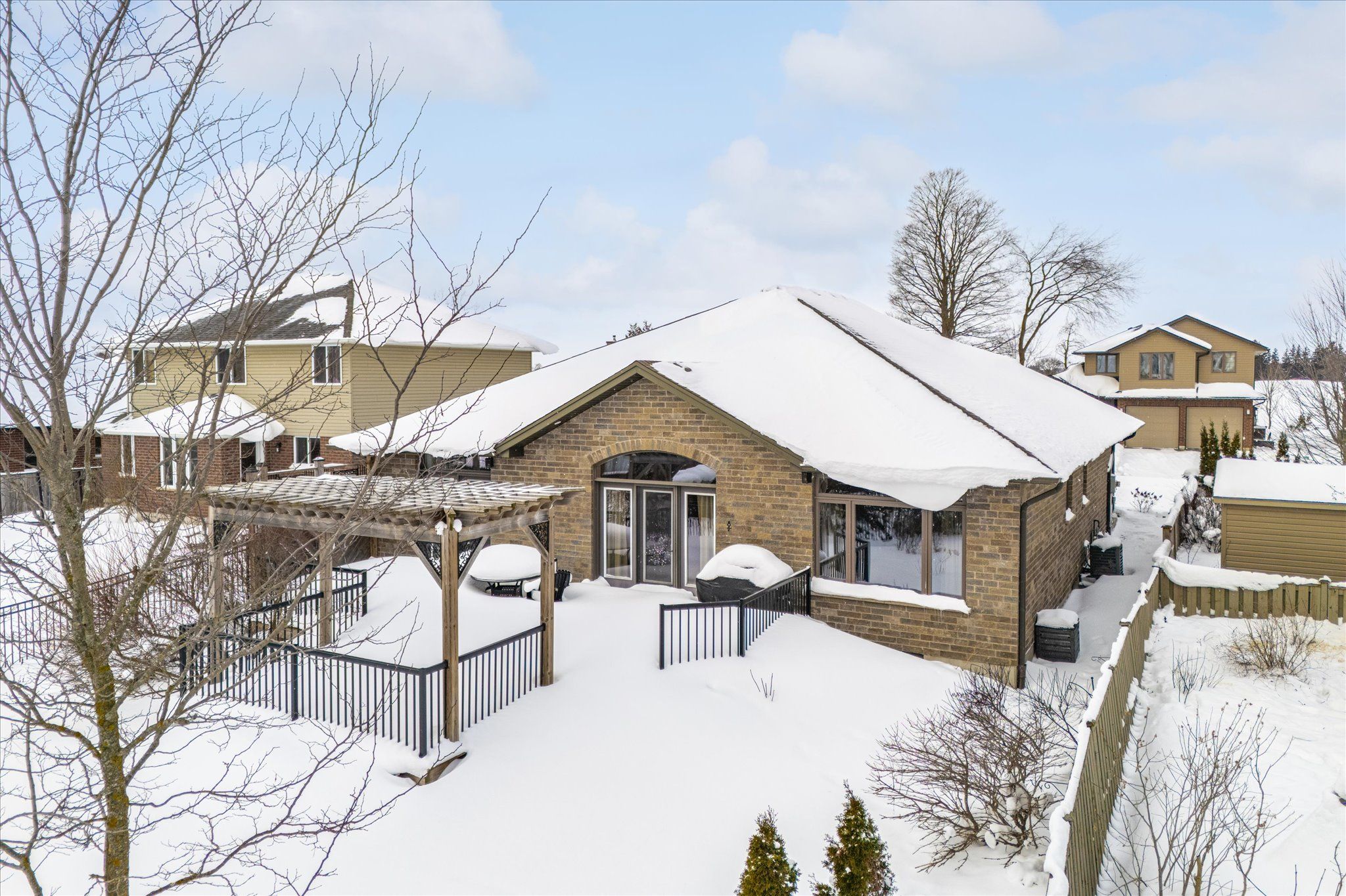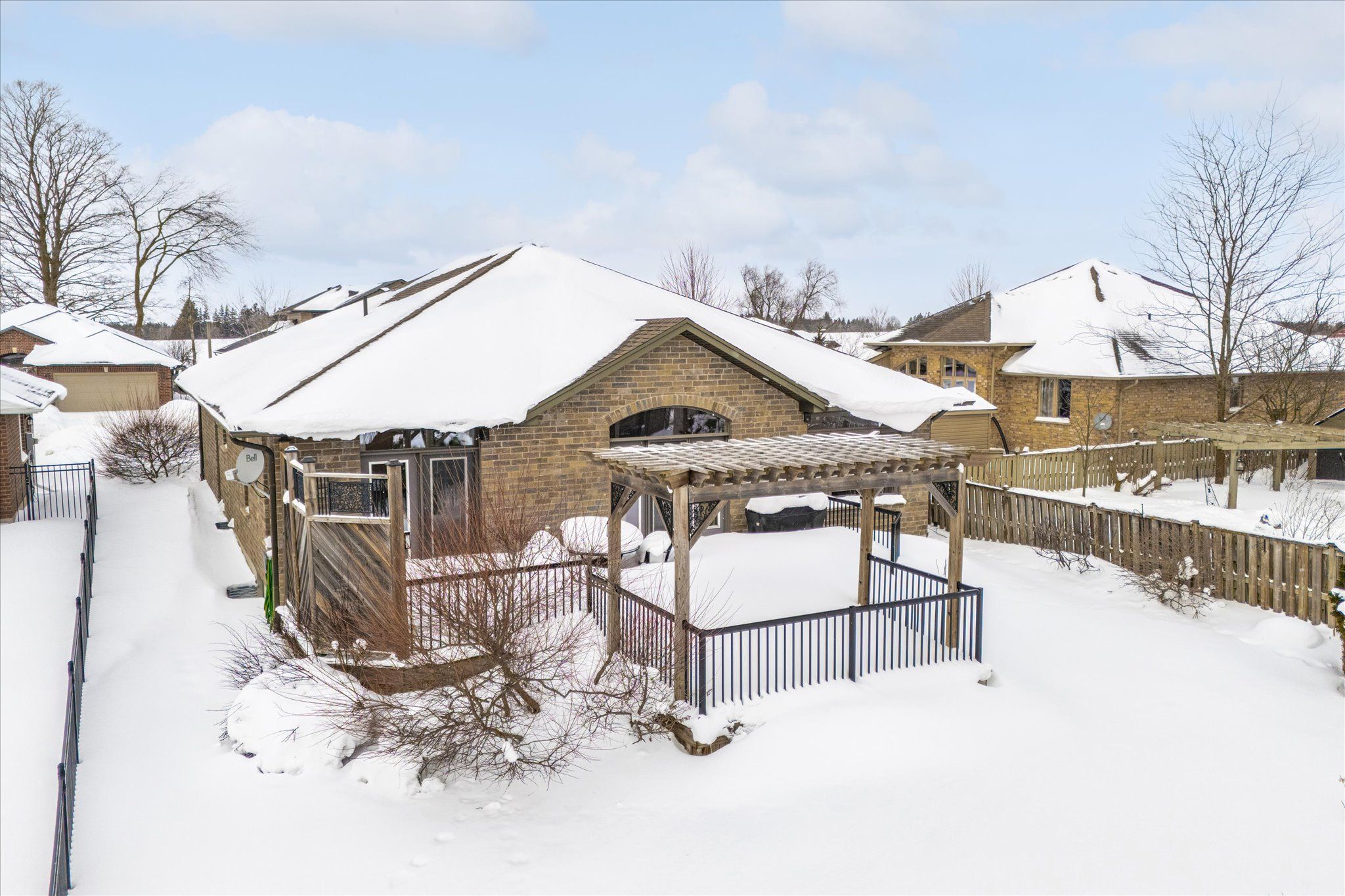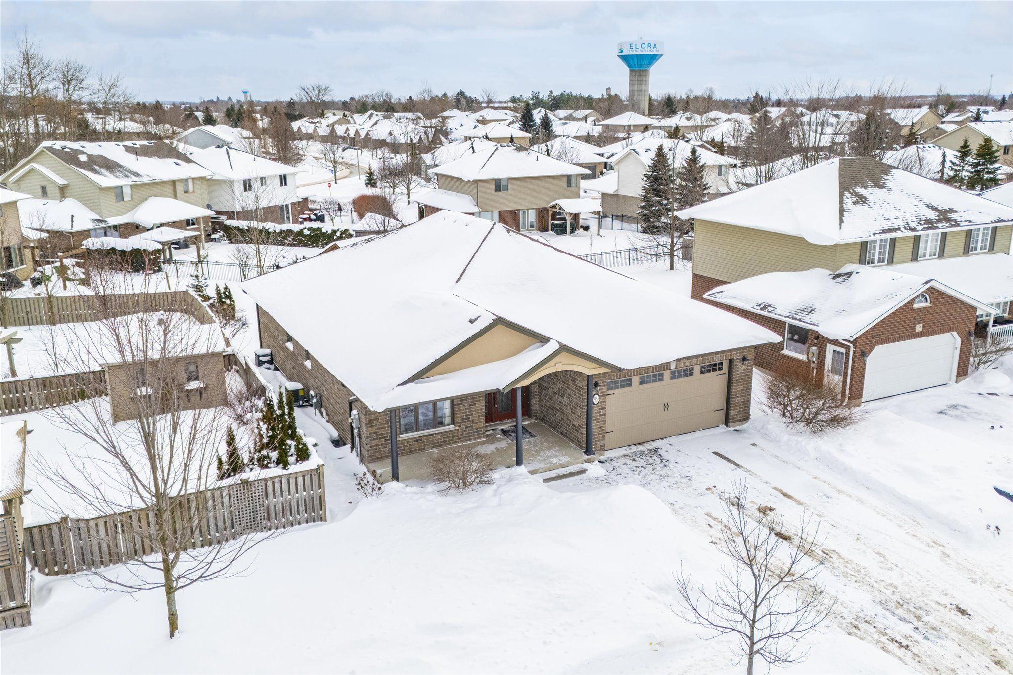 Keating-built bungalow on a desirable, quiet street in elora's north end. Main level features two bedrooms, including a generous primary with walk-in closet, one full bathroom and one 3-piece bathroom. Upgraded kitchen with large island opens to a spacious family room, perfect for everyday living and entertaining. Main floor laundry and attached two-car garage add convenience. Lower level includes a finished bedroom and 3-piece bathroom, with the remainder of the basement unfinished for storage or future development. Sliding doors from the primary bedroom lead to a large rear deck overlooking landscaped gardens. Walking distance to downtown elora shops, restaurants and trails.