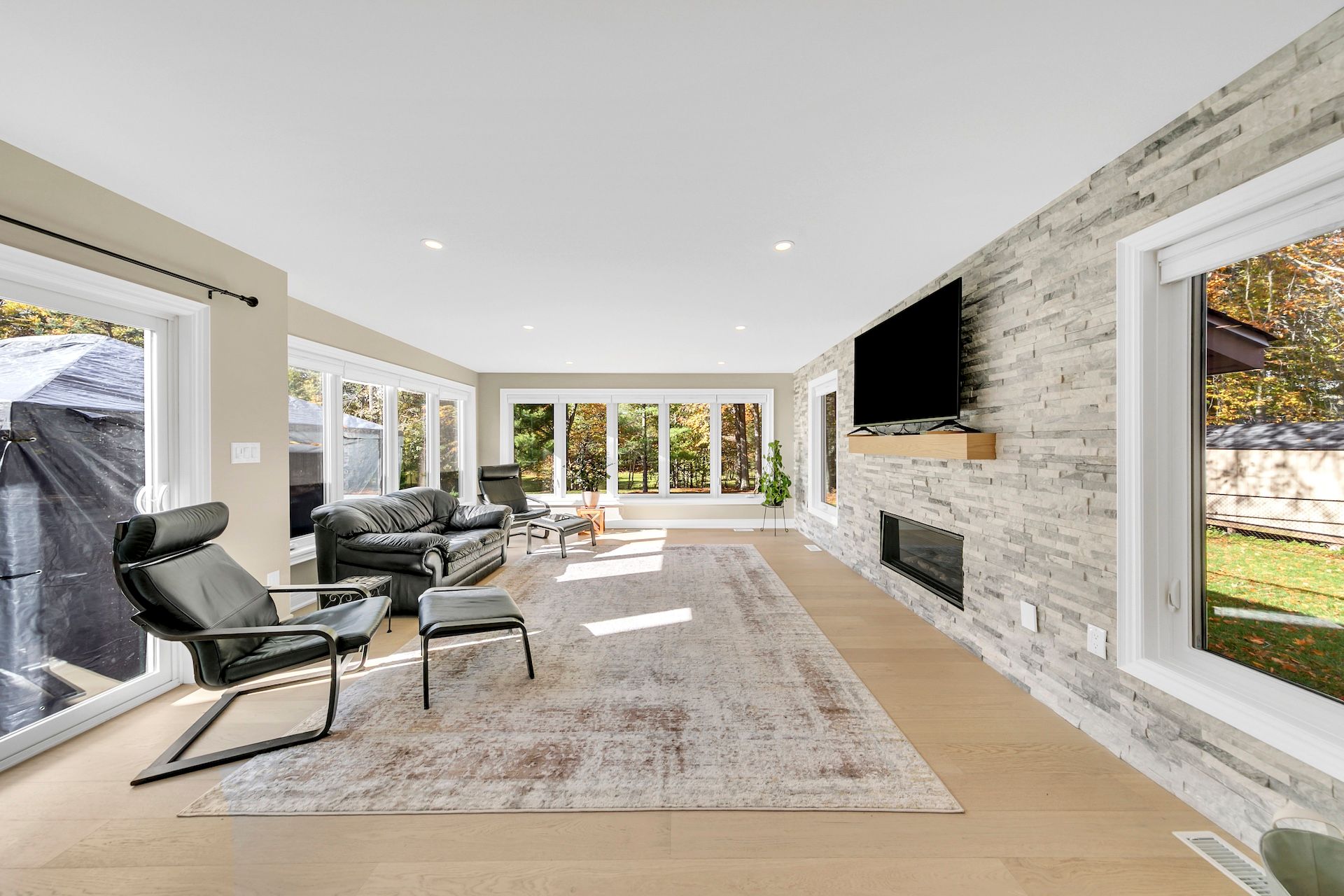 Better than new: a masterpiece of craftsmanship. Why not move into perfection today? This spectacular home has been meticulously stripped to the studs and rebuilt to code by a renowned builder. Forget about maintenance stress; with all-new electrical, plumbing, heating, and ac, the heavy lifting is already done. Even the gutters are protected by guards, and the lawn waters itself via a programmable irrigation system. The exterior commands attention with premium siding and stone veneer, while the interior pampers you with a master retreat featuring radiant floor heating and designer finishes. Set on a sprawling, fenced acre-lot, you'll enjoy a private sanctuary where the only neighbours in sight are the trees-yet you're never more than an 8-minute drive from your favourite grocery stores and cafes. This is a rare opportunity for the discerning buyer who demands excellence.