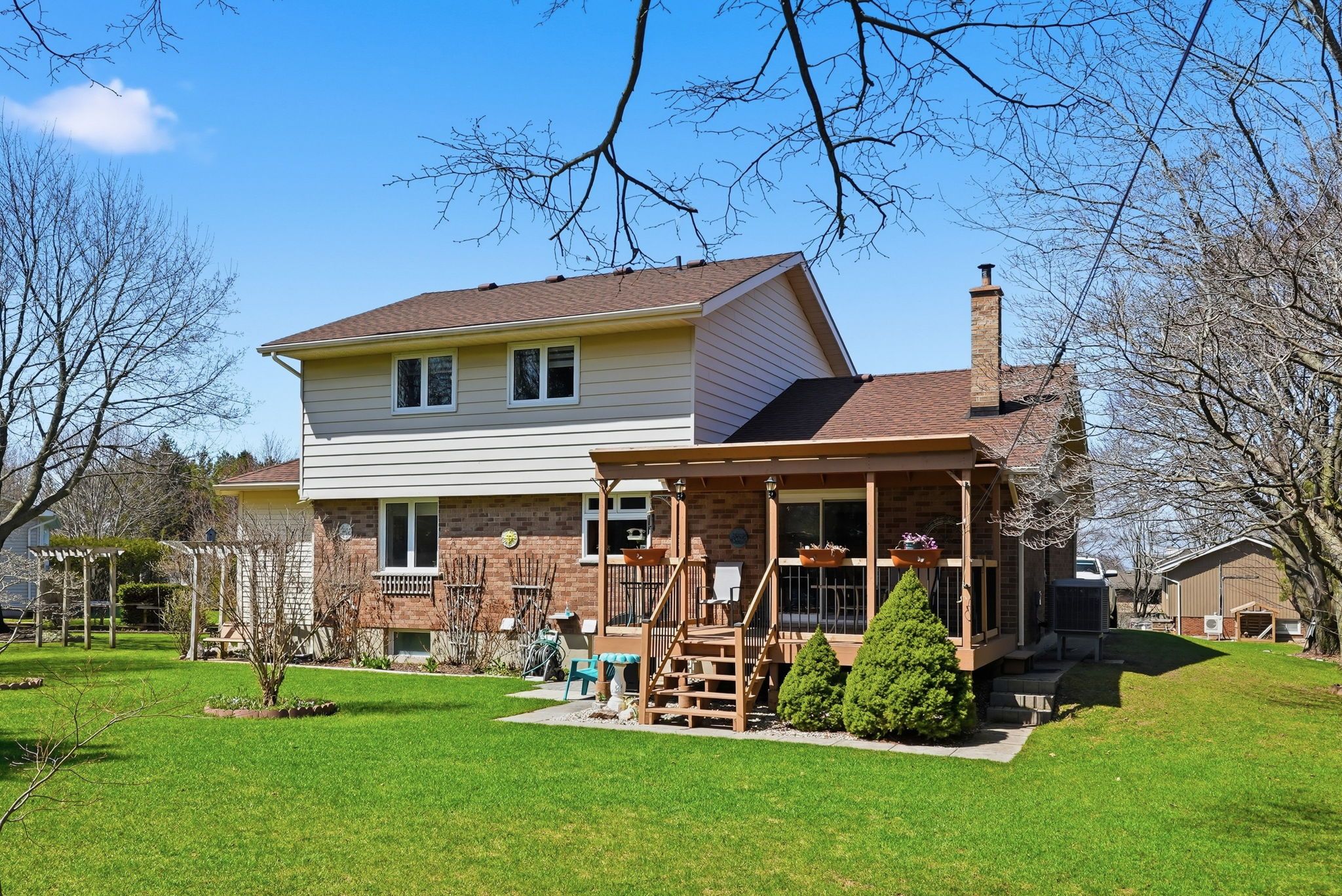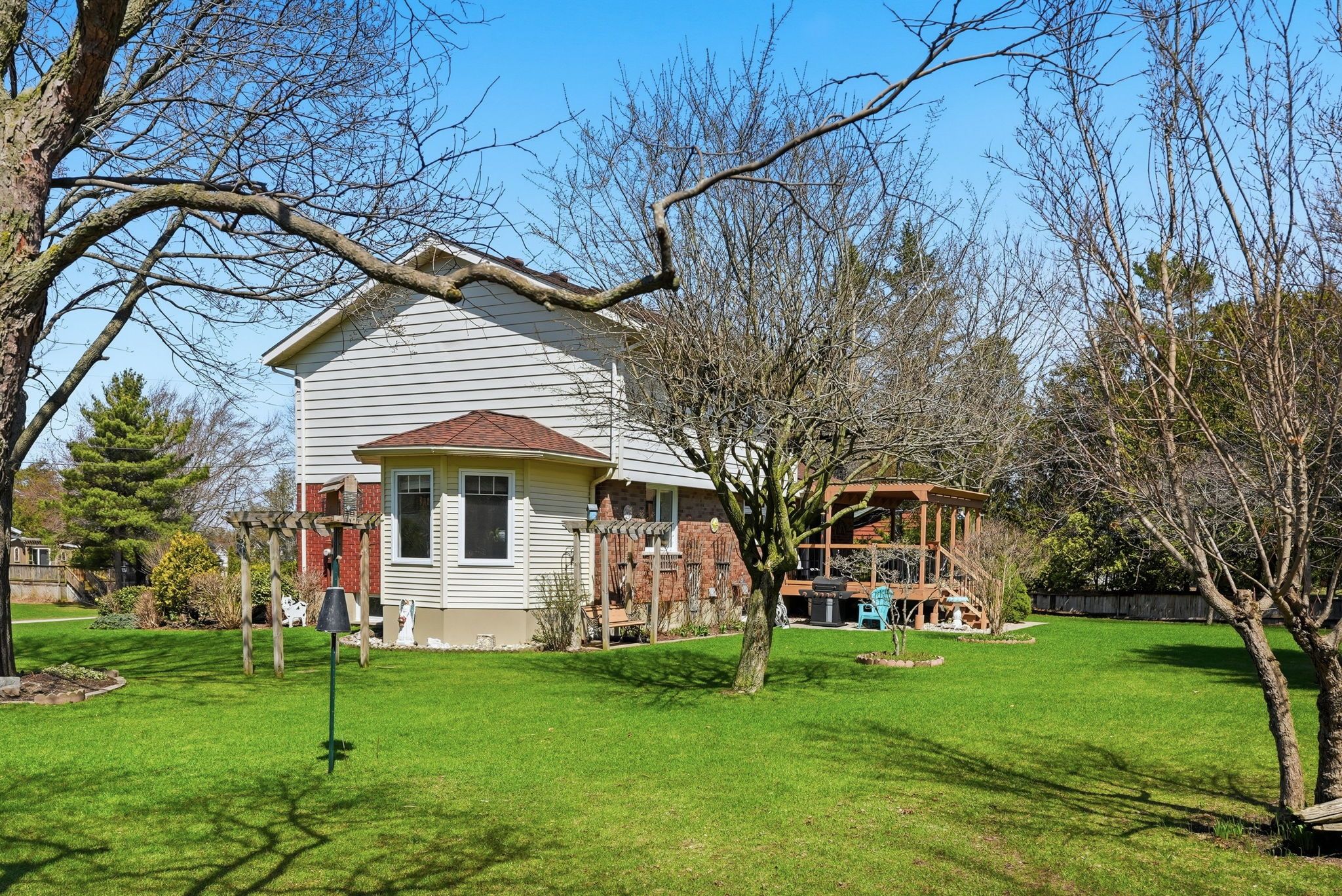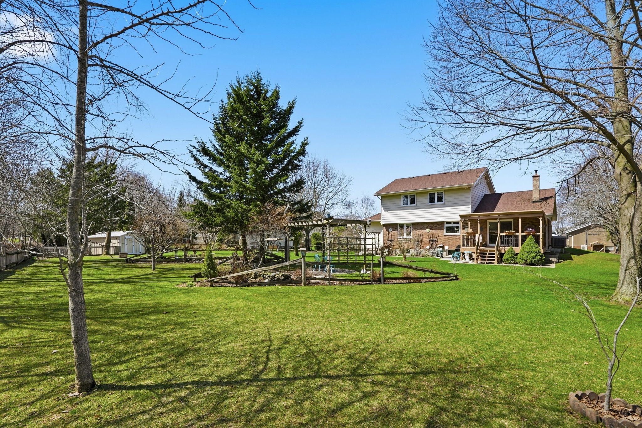 Welcome to one of kincardine's most desirable neighbourhoods-where space, comfort, and lifestyle come together. Just a 10-minute drive to downtown and all amenities, this home is also ideally located near access to the kincardine trail system and within walking distance to the shores of lake huron via boiler beach road. This very well-maintained home offers 3 bedrooms on the upper level, including a spacious primary suite complete with a 4-piece ensuite and soaker tub, plus an additional 4-piece main bathroom. Bright, oversized windows fill every room with natural light, and were updated in 2019. The roof was replaced in 2015, giving peace of mind on the big-ticket items. The main floor is designed for both everyday living and entertaining, featuring three separate sitting areas-perfect for families or hosting guests. Enjoy cozy evenings by the wood-burning fireplace with sliding doors leading to a covered deck, or unwind in the sunroom addition (2009), a peaceful space to relax year-round. A formal dining area, large kitchen with ample counter space, convenient powder room, main floor laundry, and access to the attached garage complete this level. Set on nearly half an acre, the outdoor space is just as impressive-beautifully landscaped gardens with plenty of room to play, entertain, or simply enjoy the privacy and surroundings. A solid option for buyers looking for space, location, and a home that has been thoughtfully maintained over the years.