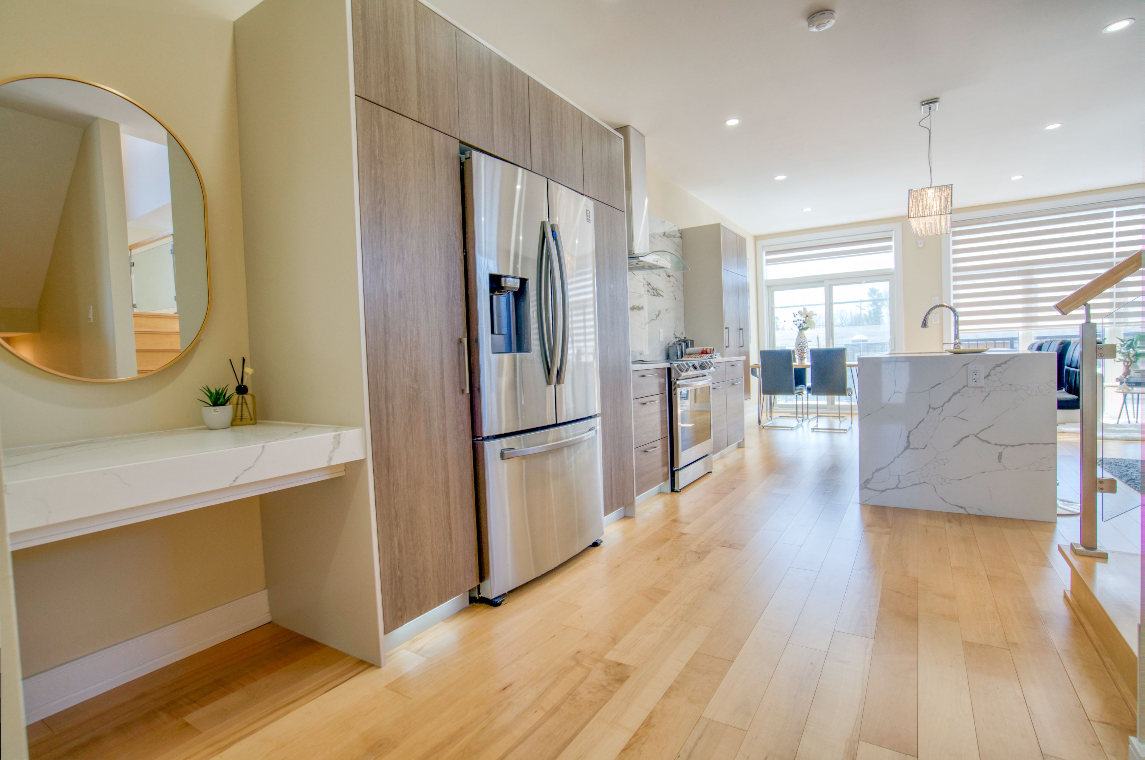 • Modern semi-detached home with stylish finishes and open-concept design.