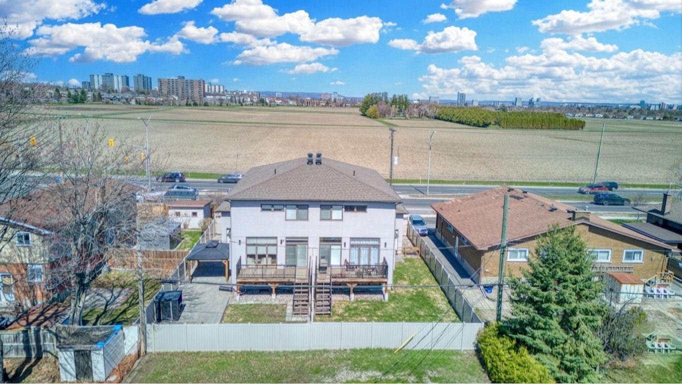 Welcome to 992 baseline rd - 2019 built semi-detached with income potentialmeticulously maintained by the original owner, this modern semi-detached home showcases stylish finishes and a thoughtfully designed layout. Featuring hardwood floors and oak stairs throughout, the main level offers an open-concept design highlighted by a waterfall quartz island, bright living and dining areas, a gas fireplace, and a custom accent wall. The primary bedroom enjoys unobstructed views, a private balcony, and a luxurious 5-piece ensuite with double sinks and a roman tub. Offering 4 bedrooms (3+1) and 3+1 bathrooms, the fully finished basement features a separate side entrance and a highly versatile layout. It includes a comfortable living area and a well-equipped kitchenette complete with sink, dishwasher, hood fan, full-size refrigerator, and its own dedicated washer and dryer. The basement also features radiant in-floor heating, a cozy bedroom, and a full bathroom. With a city-recognized occupancy permit on file, this level is ideal for extended family, guests, or future rental potential. Additional upgrades include an owned on-demand water heater, providing energy efficiency and modern convenience. Exterior features include a double garage and an oversized driveway accommodating up to 6 vehicles. Professionally landscaped front and backyard with interlock, plus a fully pvc-fenced rear yard and durable, low-maintenance composite decking, perfect for outdoor entertaining. Ideally located with a bus stop at your doorstep offering direct access to algonquin college and convenient transit to carleton university. Just minutes to costco, shopping, and everyday amenities. A true turnkey opportunity offering modern comfort, flexible living space, and strong income potential in a highly desirable and convenient location.