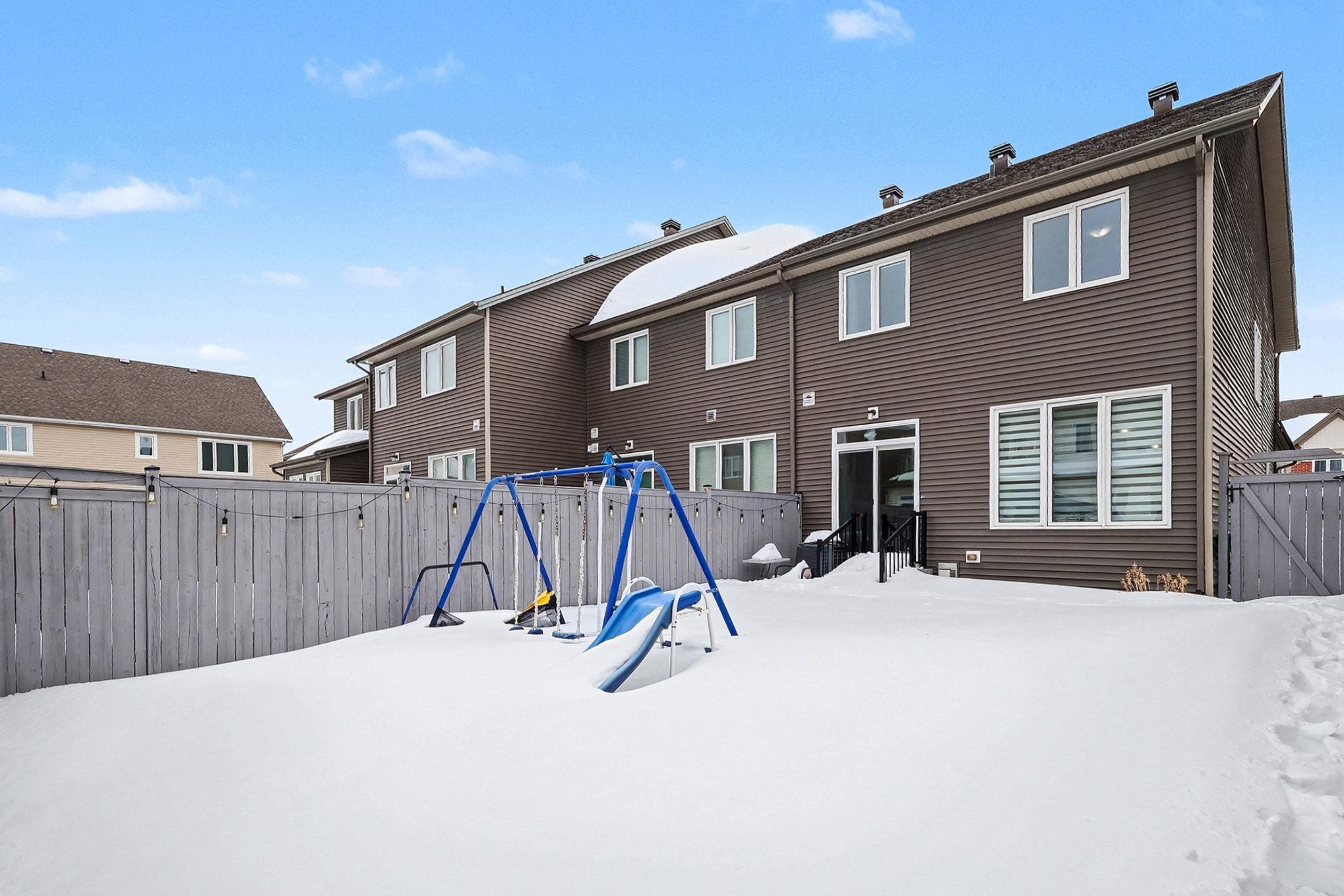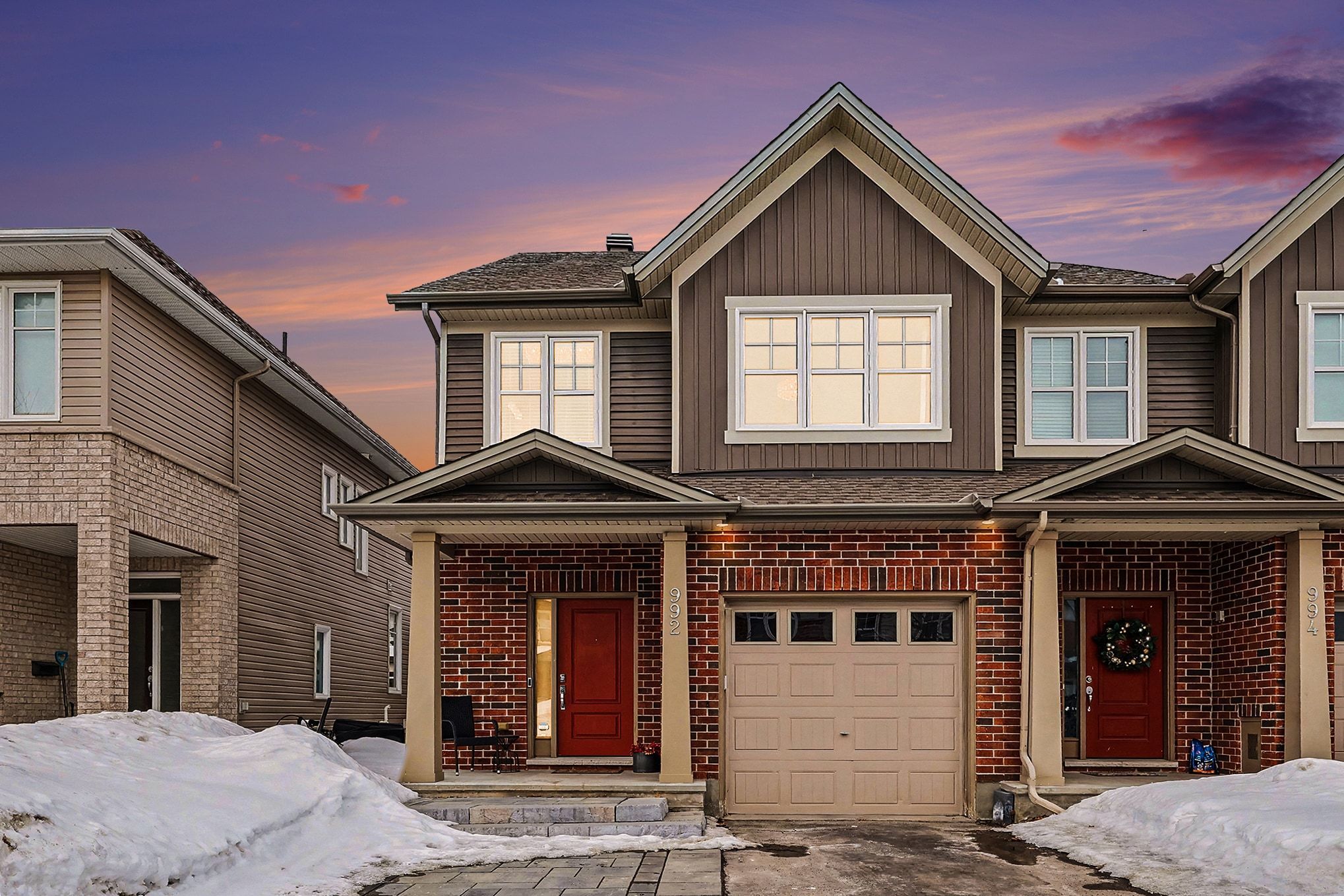 This wonderful tartan built 3 bed 3 bath topaz model end unit townhome is move-in ready in family friendly findlay creek. This is a wonderful community with expansive greenspace - nature trails, parks, great schools and endless ammenities. This bright and meticulously cared-for home has all the contemporary finishings you would want in a newer home and lots more in upgrades. Great curb appeal! At first look you will notice the tasteful interlocked walkway -step professionally designed to expand the parking for 3 cars- 2 side by side on the driveway plus 1 garage parking with inside foyer access. The property is fully fenced with a side gate and a generous interlock patio with new stairs - railings to access for entertaining and family fun. The main tiled foyer is functional with a large coat closet and 2 piece bathroom. This home is well layed out for maximum interaction with family and friends. Main floor 9 ft ceilings - creates an airy and open area with large windows, patio doors and continuous well-presented neutral hardwood floors. Kitchen features crisp arctic white cabinetry that extends to ceiling for an abundance of storage plus sit up island. Granite countertops and a stylish, upgraded backsplash complete the look. The principle bedroom has a generous 4-piece ensuite with upgraded granite countertops, spa soaker tub and glass shower with upgraded tiled wall plus walk in closet. 2 nicely sized bedrooms with double closets and room to hang out. The shared bathroom with tub and shower is generous with lots of storage. The bright finished lower level has a cozy gas fireplace with realstone facade and oversized egress windows plus a laundry area with rough-in for future bathroom. You will appreciate how well-maintained this home is. Recently painted, vents and ducts cleaned, carpets cleaned 2026, new stove & dishwasher and more. Everything has been regularly serviced. Bring your discerning buyers - they will be impressed. 24 hours irrevocable on all offers