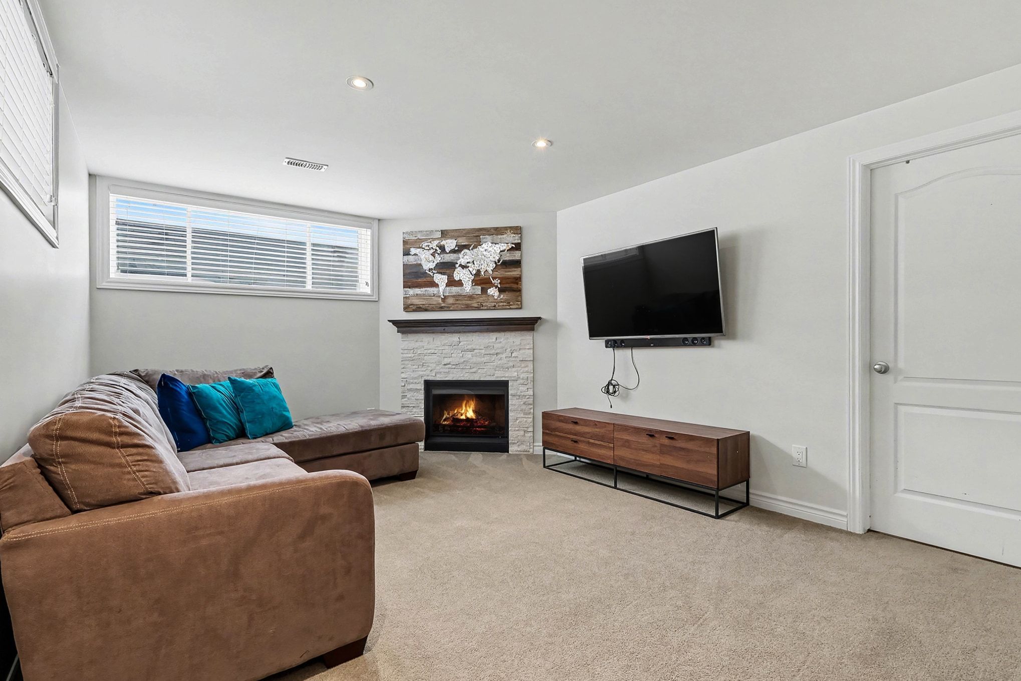 • Finished lower level with cozy gas fireplace and space for future bathroom.
