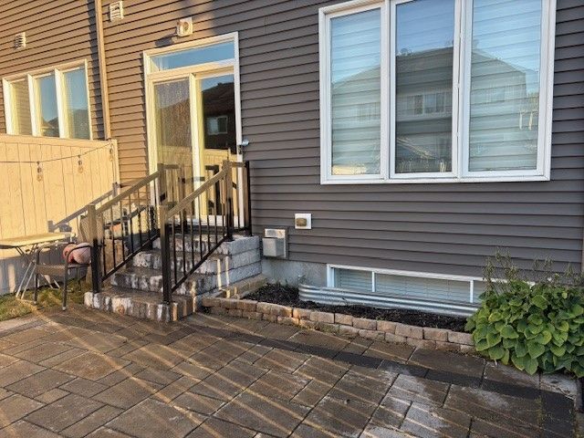 This wonderful tartan built 3 bed 3 bath topaz model end unit townhome has over 1700 sq ft of finished space and is move-in ready in family friendly findlay creek. A community with expansive greenspace - nature trails, parks, great schools and endless ammenities. This bright and meticulously cared-for home has all the contemporary finishings you would want in a newer home with more in upgrades. Great curb appeal! At first look you will notice the tasteful interlocked walkway -step professionally designed to expand the parking for 3 cars- 2 side by side on the driveway plus 1 garage parking-inside foyer access. The property is fully fenced with side gate and generous interlock patio with new stairs - railings to access for entertaining and family fun. The main tiled foyer is functional with a large coat closet and 2 piece bathroom. This home is well layed out for maximum interaction with family and friends. Main floor 9 ft ceilings - creates an airy and open area with large windows, patio doors and continuous well-presented neutral hardwood floors. Kitchen features crisp arctic white cabinetry that extends to ceiling for an abundance of storage plus sit up island. Granite countertops and a stylish, upgraded backsplash complete the look. The principle bedroom has a generous 4-piece ensuite with upgraded granite countertops, spa soaker tub and glass shower with upgraded tiled wall plus walk in closet. 2 nicely sized bedrooms with double closets and room to hang out. The shared bathroom with tub and shower is generous with lots of storage. The bright finished lower level has a cozy gas fireplace with realstone facade and oversized egress windows plus a laundry area with rough-in for future bathroom. You will appreciate how well-maintained this home is. Recently painted, vents and ducts cleaned, carpets cleaned 2026, new stove & dishwasher and more. Everything has been regularly serviced. Bring your discerning buyers - they will be impressed. 24 hr irrevocable offers
