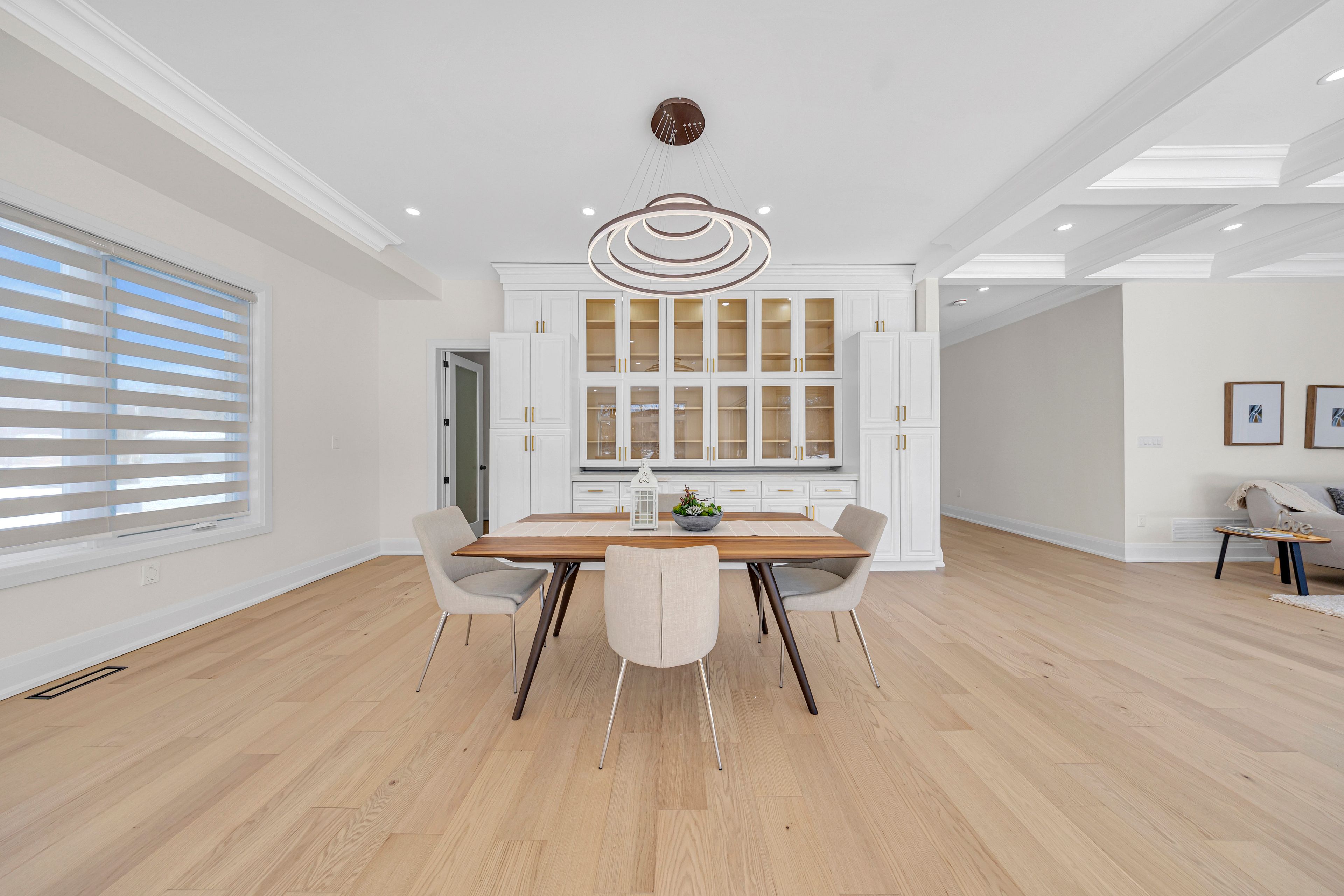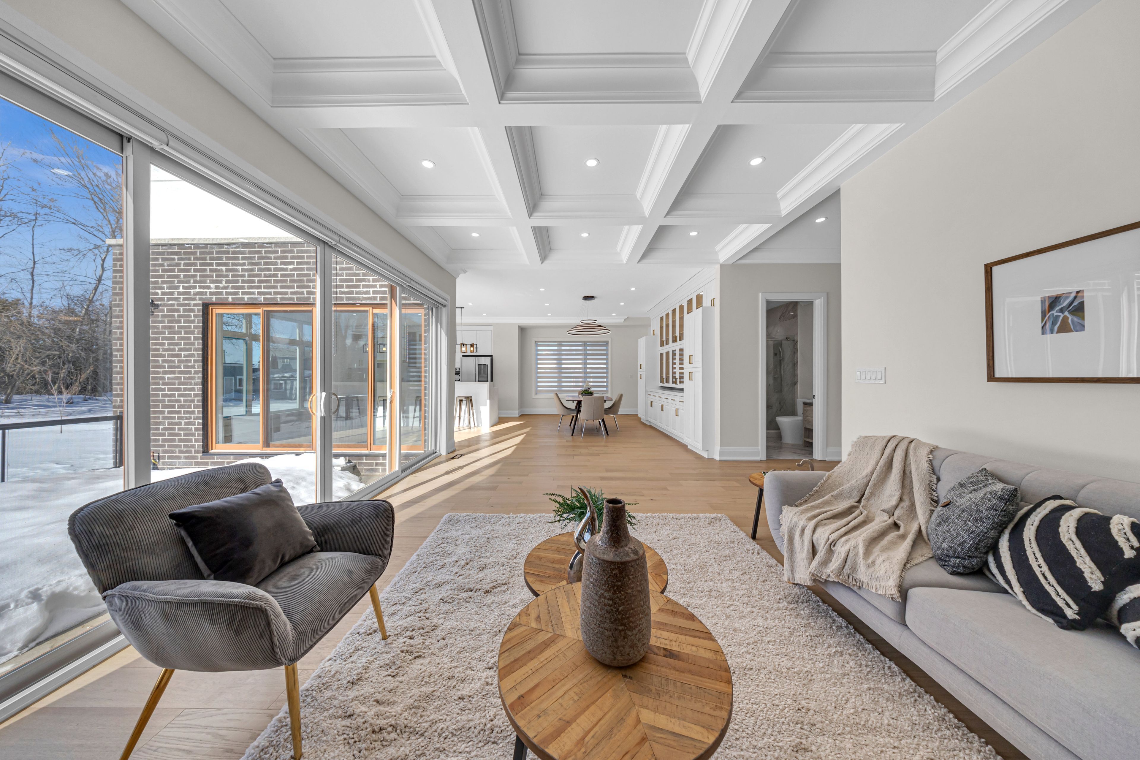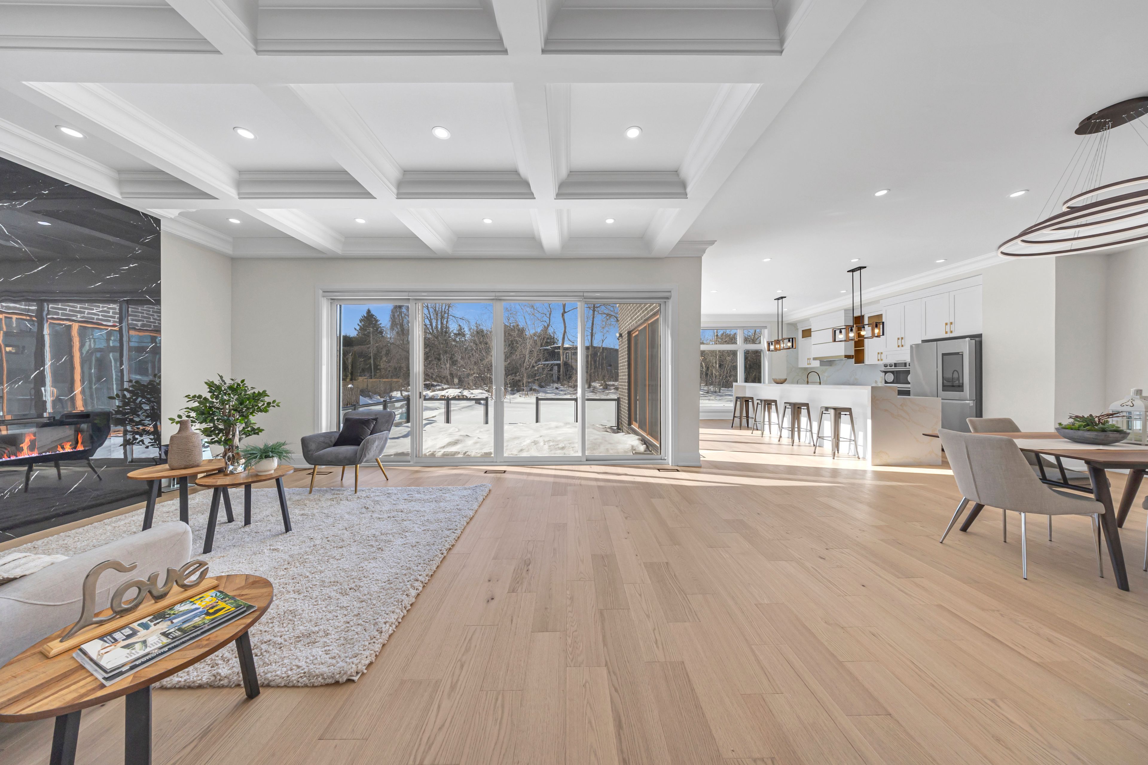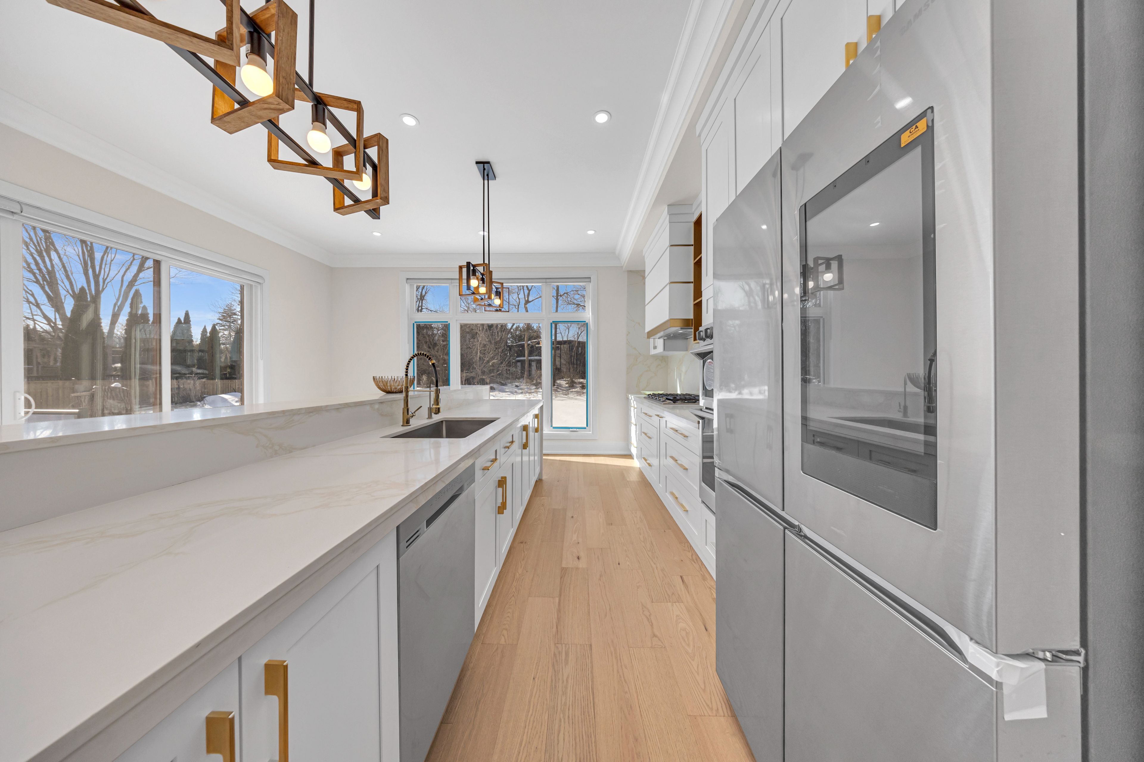 • Gourmet kitchen with a waterfall island and designed bar area.