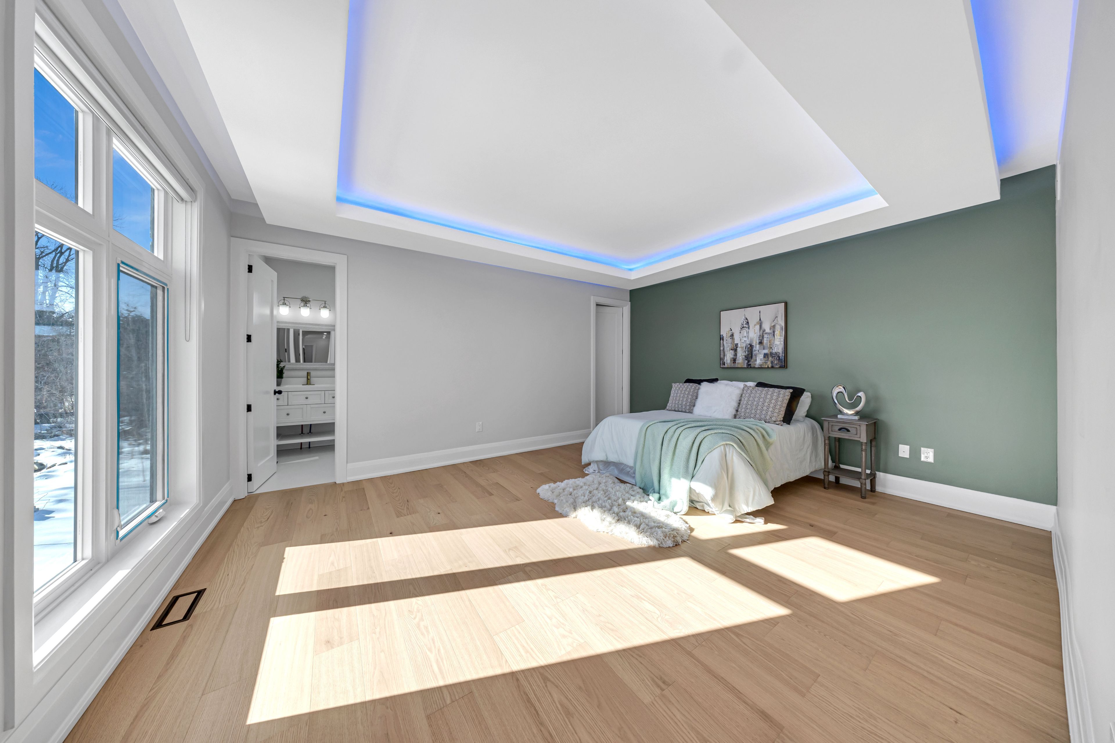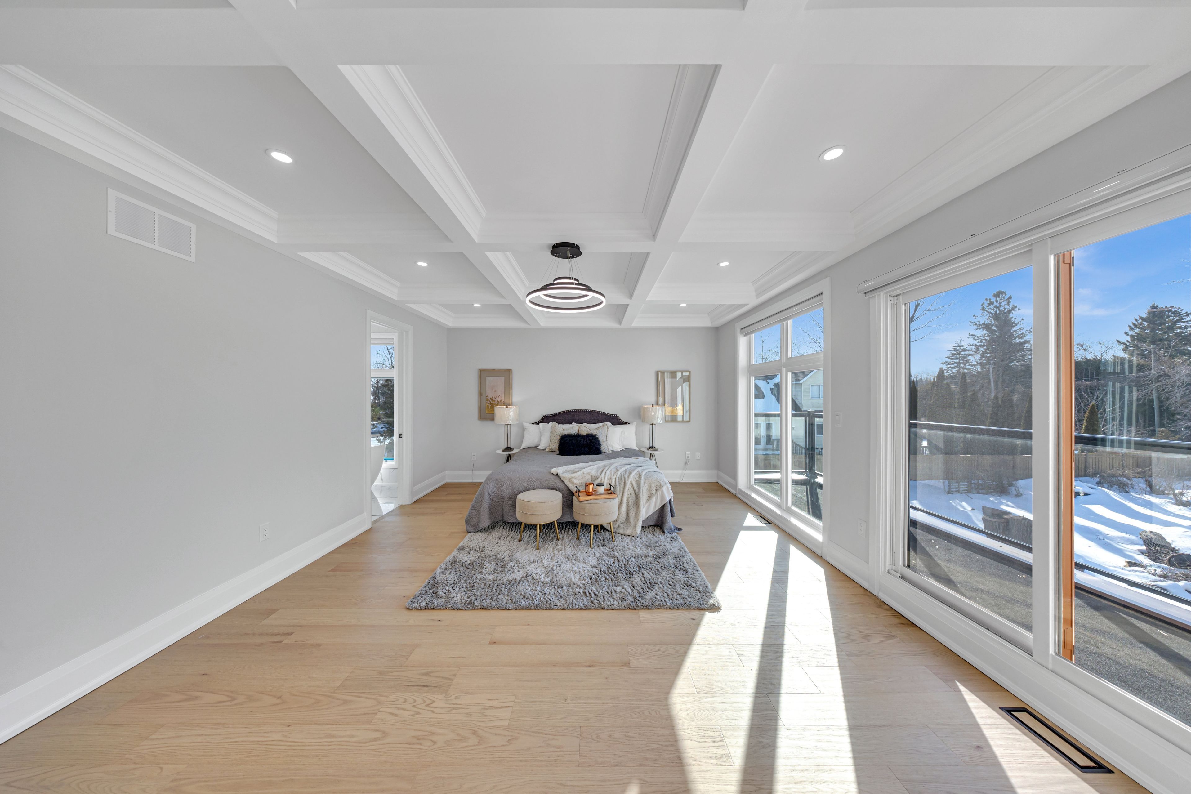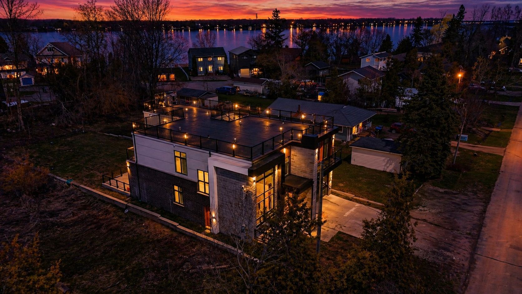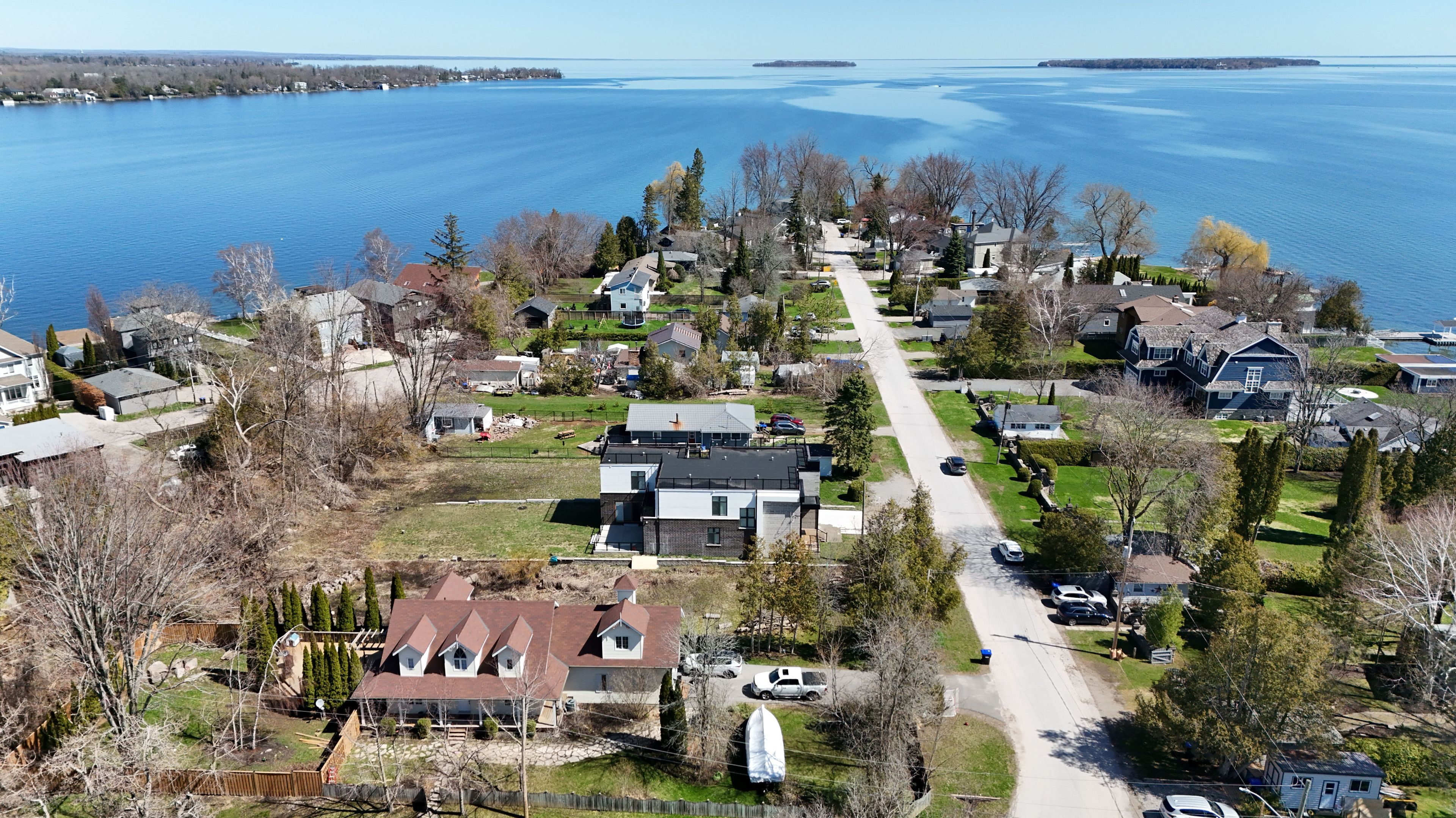 Welcome to 992 little cedar ave, innisfil, ontario. Discover this 4,585 sq. Ft. Custom-built masterpiece offering a 3-side panoramic view of lake simcoe. This 4-bedroom, 6-bathroom home features 4 bedrooms with ensuite bathrooms, plus a main-level office and in-law suite. Designed for both comfort and sophistication, the home boasts a stunning rooftop patio with glass railings, a concrete back deck, and a fully drywalled garage with a stamped concrete driveway. The gourmet kitchen is a chefs dream, complete with a custom waterfall island and a professionally designed bar area, perfect for entertaining. Additional features include a fireplace, central vacuum, whole-house zebra blinds, and a spacious cold room. Enjoy peace of mind with owned tankless water heater, ac, furnace, water filtration system & softener, plus a smart security system with fingerprint main door lock. Outdoor convenience includes a bbq gas line, roof top terrace, side garage opener, and spacious 202 ft deep back yard for your enjoyment. Unmatched luxury, functionality, and breathtaking lake views. Schedule your private showing today!