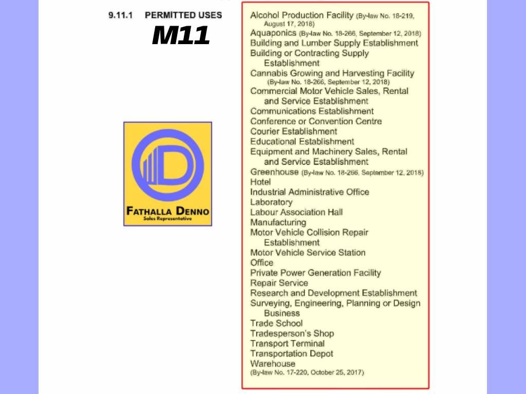 Commercial development land within m11 airport employment growth district zone. Zoning allows many uses such as: storage, hotel, conference or convention centre, courier establishment, trade school, warehouse, commercial school, communication establishment, building and lumber supply establishment, building contracting supply establishment, educational establishment, equipment and machinery sales and rental establishment, motor vehicle service, collison and repair service, transportation terminal, etc.