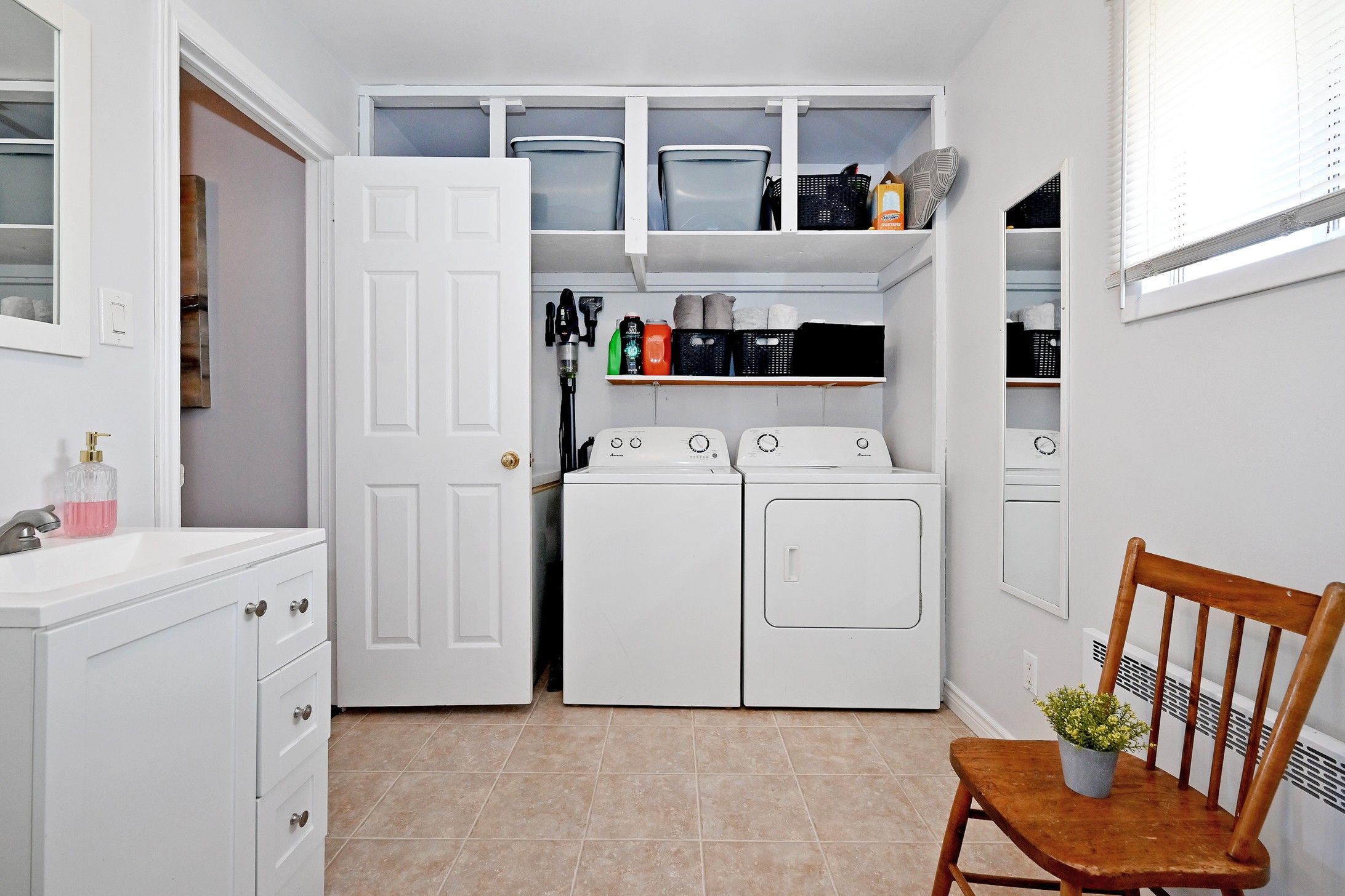 • Bright decor and low-maintenance laminate flooring throughout.
