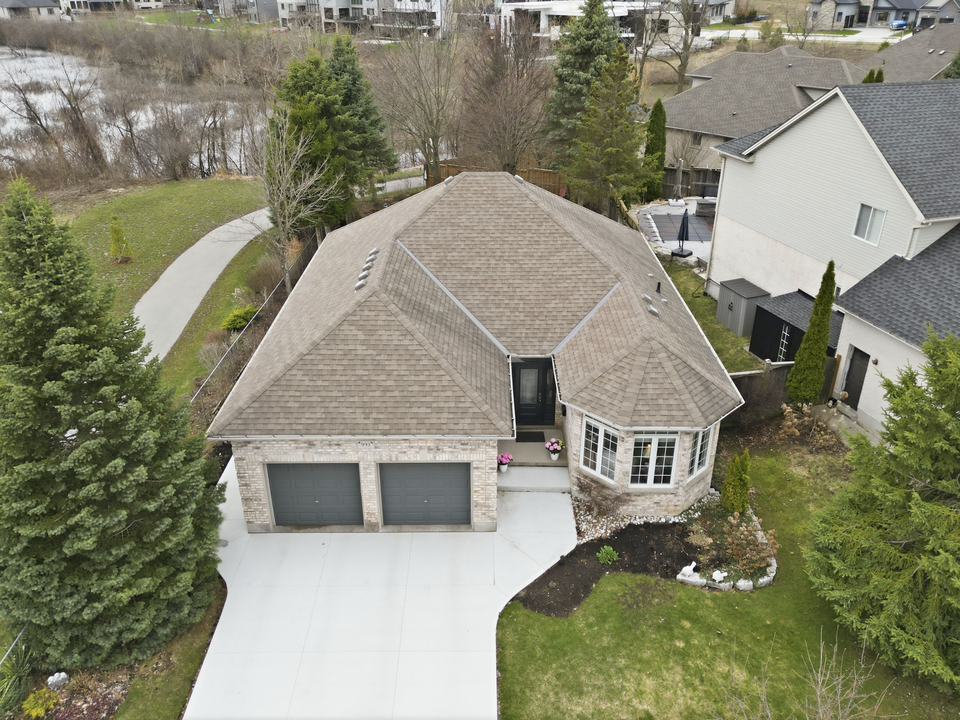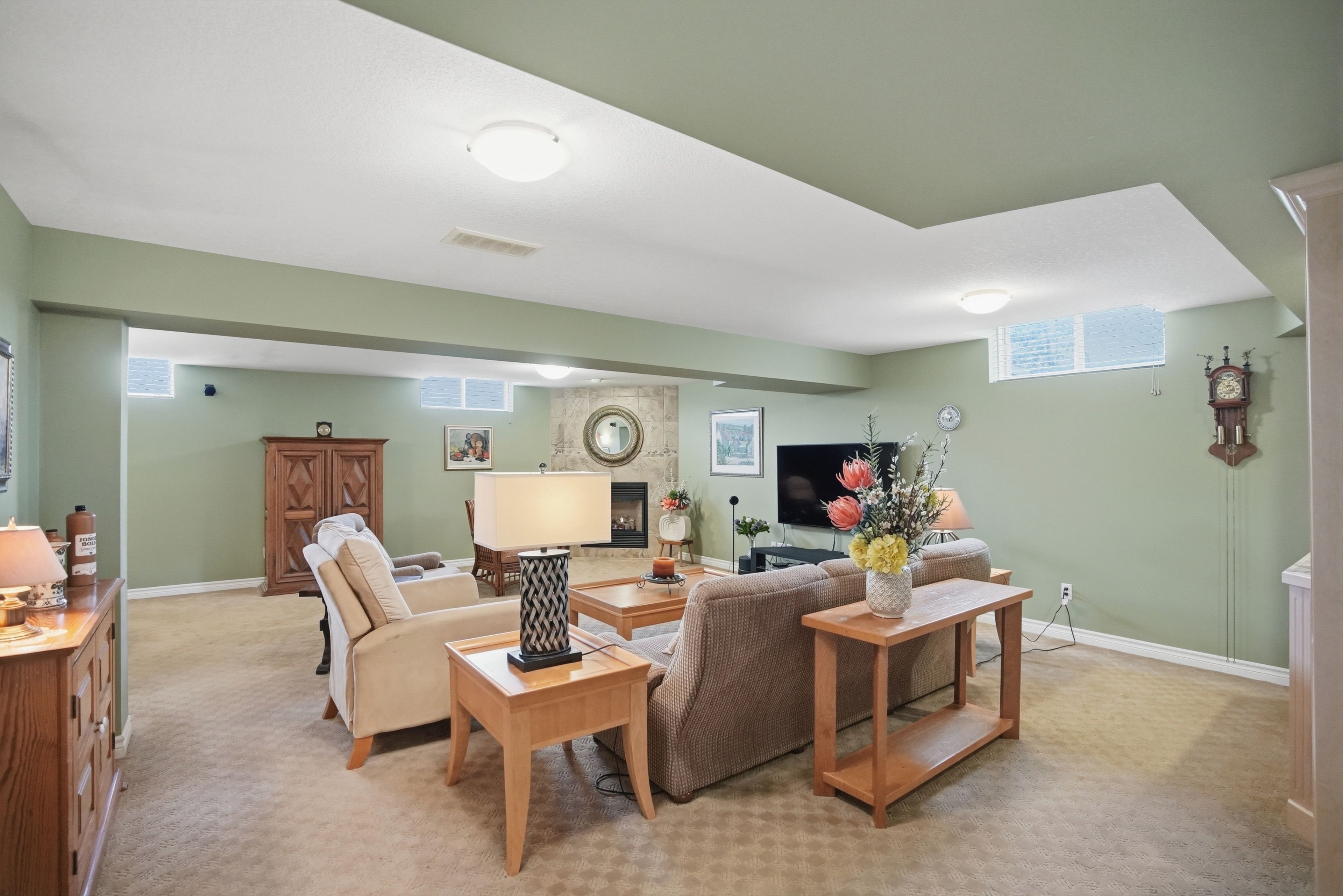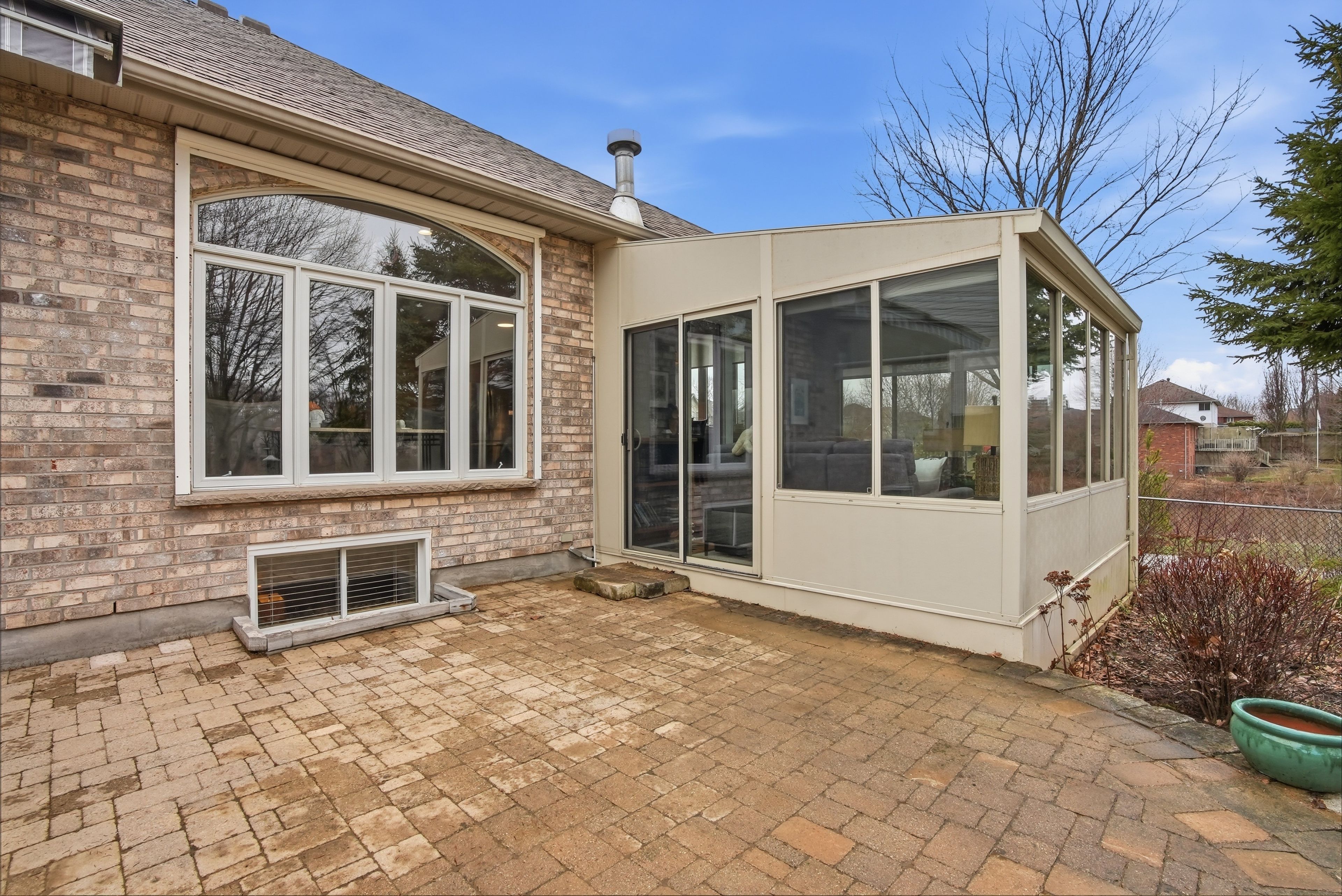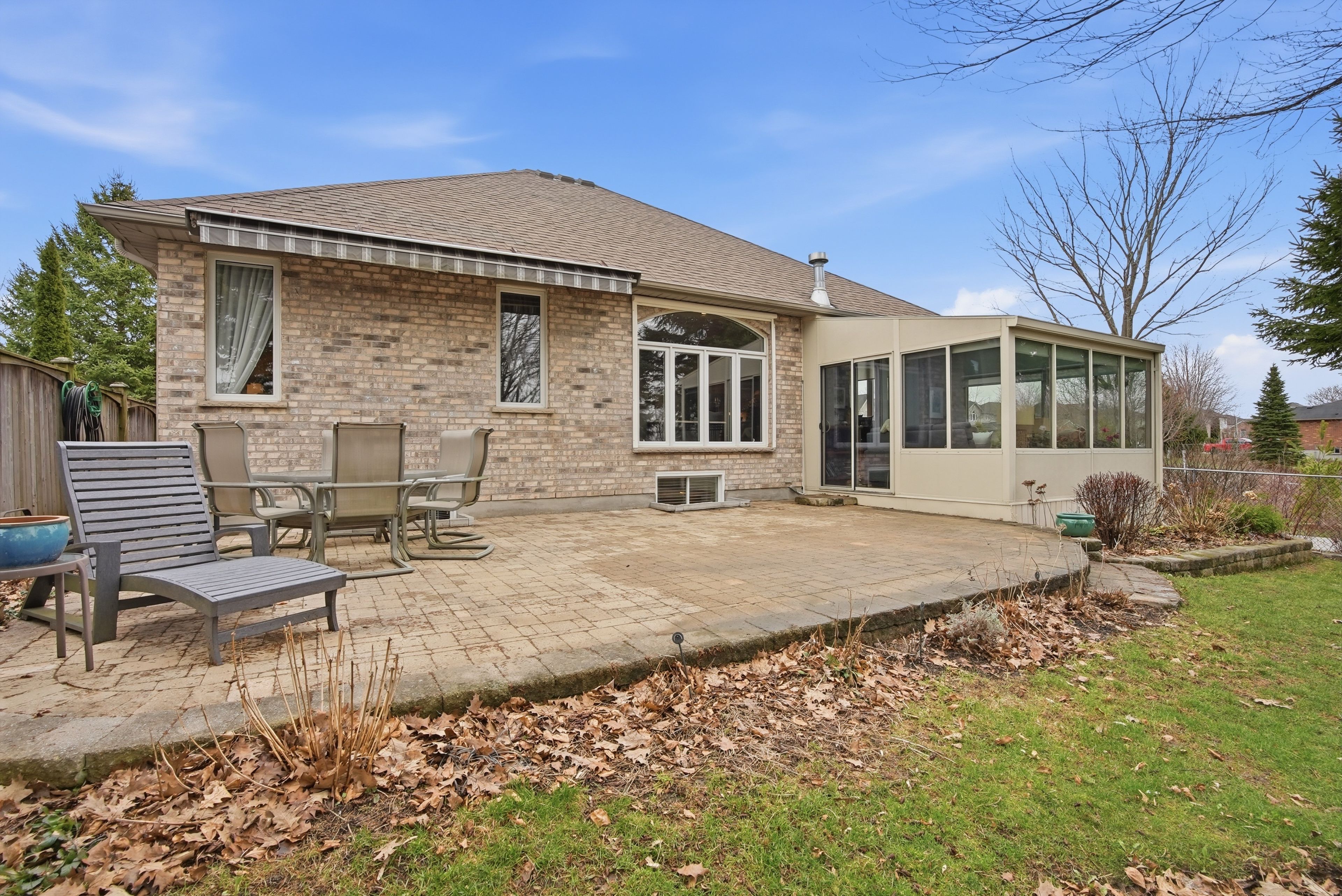 Welcome to this rare 2+2 bedroom open-concept bungalow - a true unicorn offering the best of city and cottage living. Offered for the first time ever on the market, this beautifully maintained home showcases a bright, airy main floor with a seamless flow between the kitchen, dining, and living areas. The space is enhanced by a stylish kitchen that features an island, modern cabinetry and granite countertops. The spacious living room features stunning three-sided fireplace that adds warmth and elegance. The primary bedroom features a private ensuite bathroom and walk-in closet. Rounding out the main floor is a second bedroom, a full 4-piece bathroom, and convenient main floor laundry adds to the ease of everyday living. Many upgrades over the years have brought a fresh, modern touch throughout. The finished lower level offers two additional bedrooms, a spacious family room with a cozy gas fireplace, and a 3-piece bathroom. Escape to the sunroom addition and enjoy picturesque views of the beautifully landscaped backyard and the tranquil pond next door-your own private retreat in the heart of the city. Frequent visitors include cranes, blue herons, king fishers, geese, ducks and much more. Additional updates include a new concrete driveway and walkway (2025), a grand front door entranceway (approx. 2018), and garage man door (2026). Complete with a spacious double car garage, this exceptional home blends comfort, charm, and convenience in one truly special package.