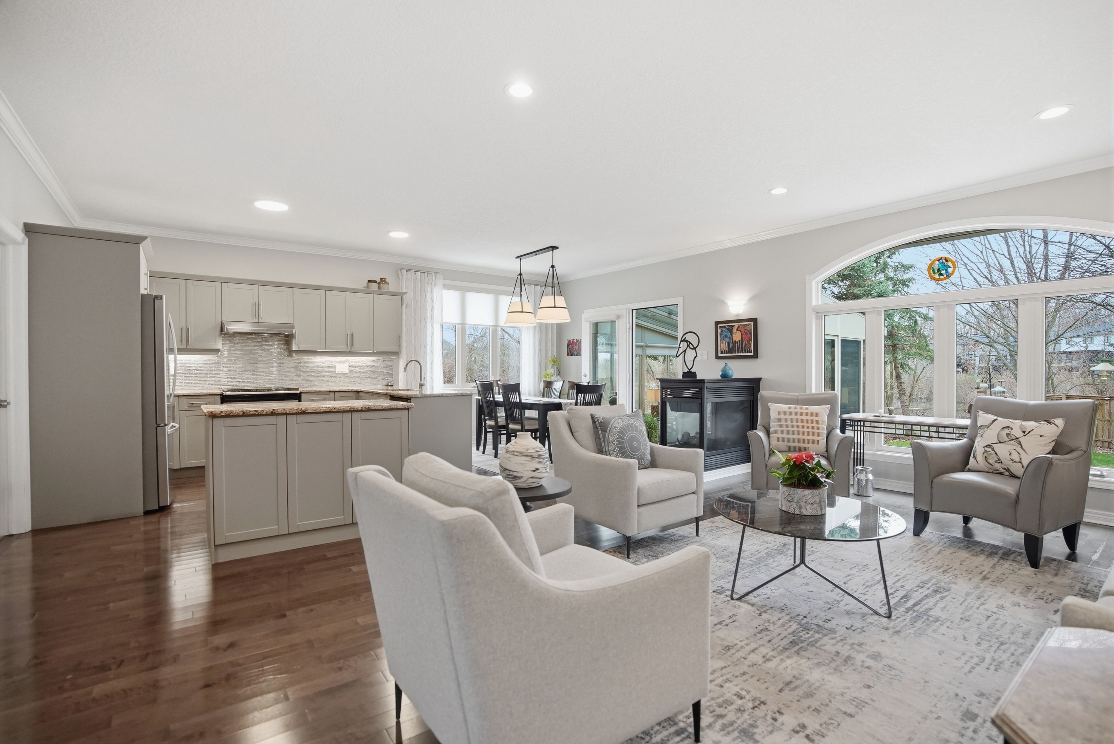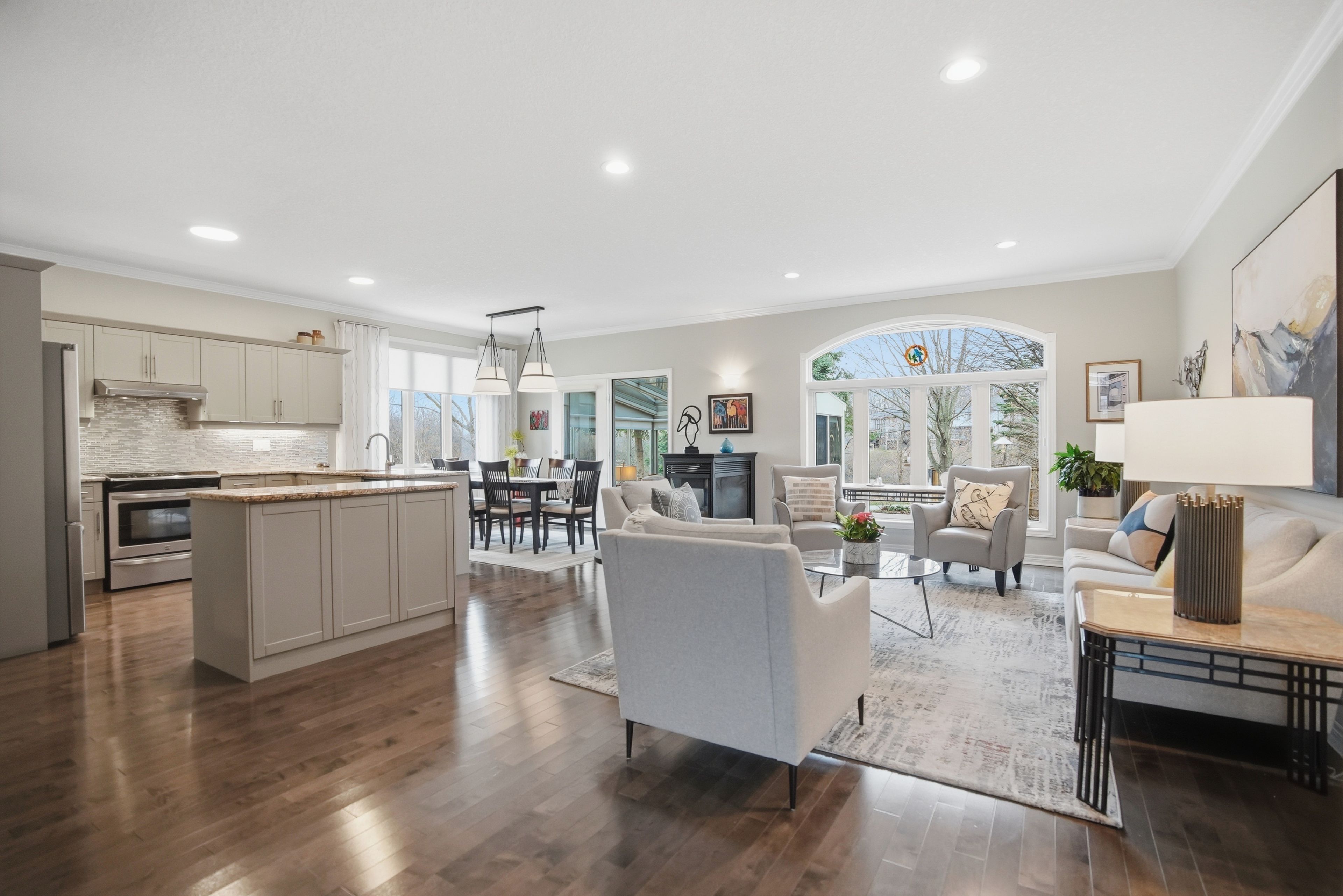• Bright main floor with seamless flow between kitchen, dining, and living areas.