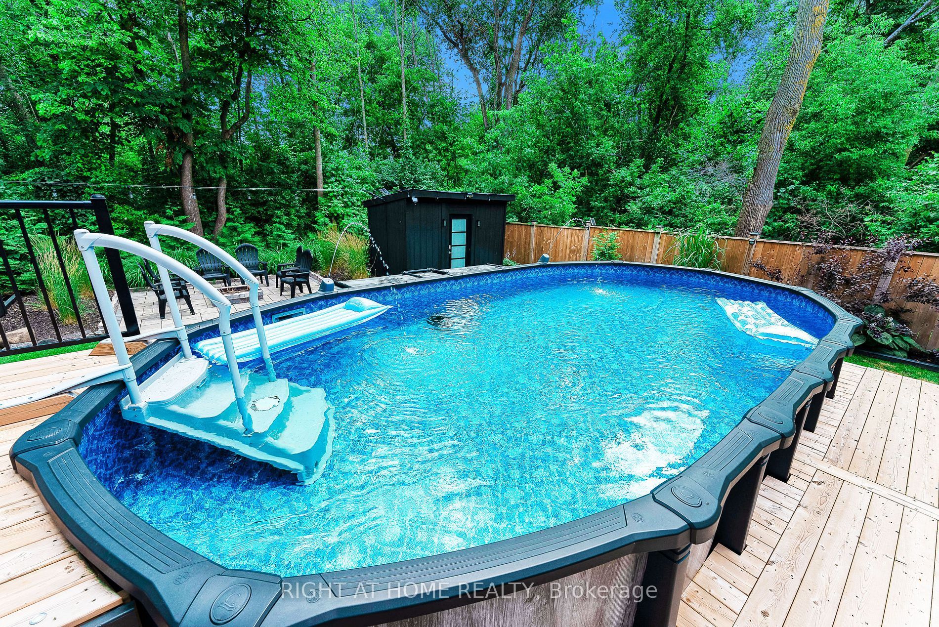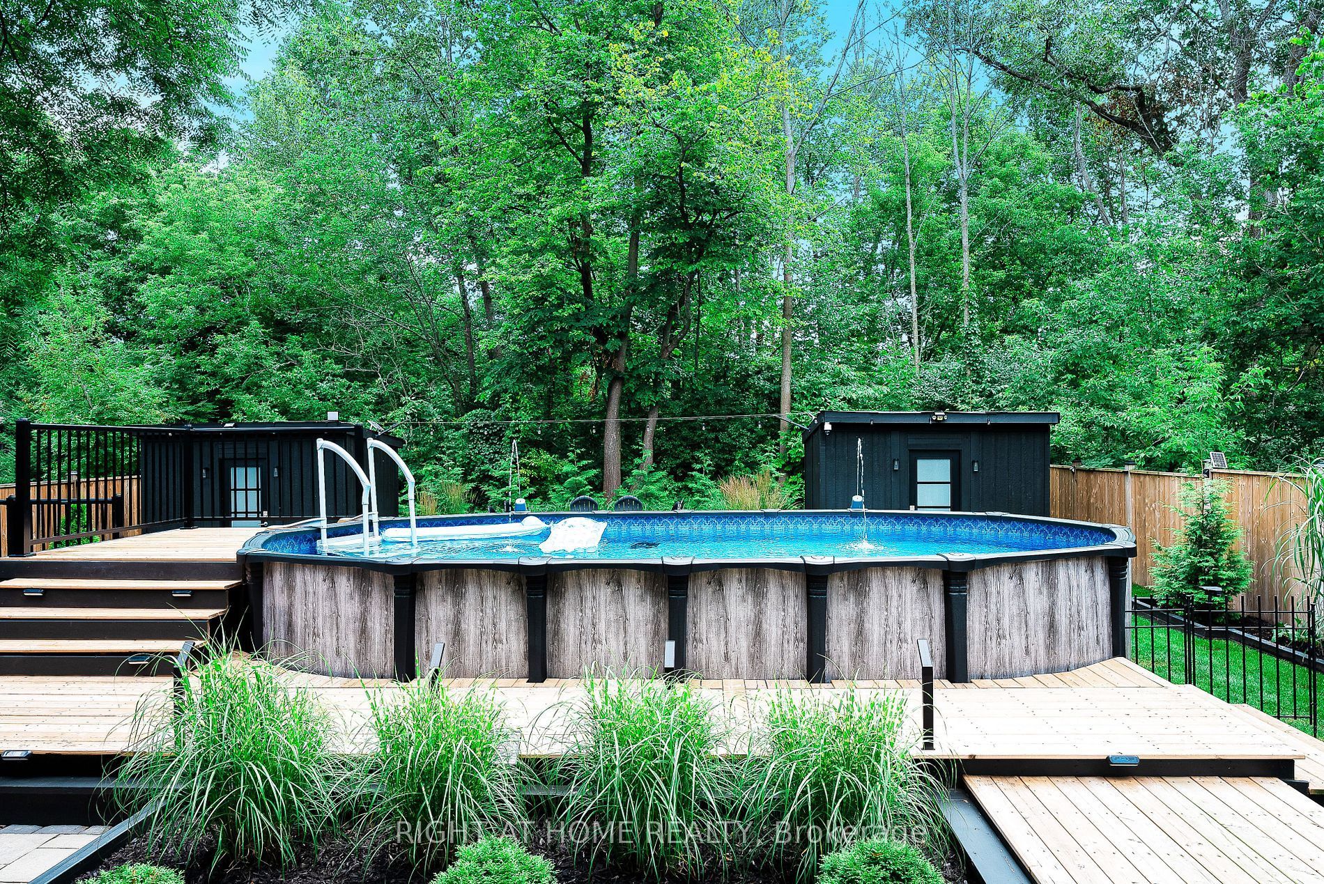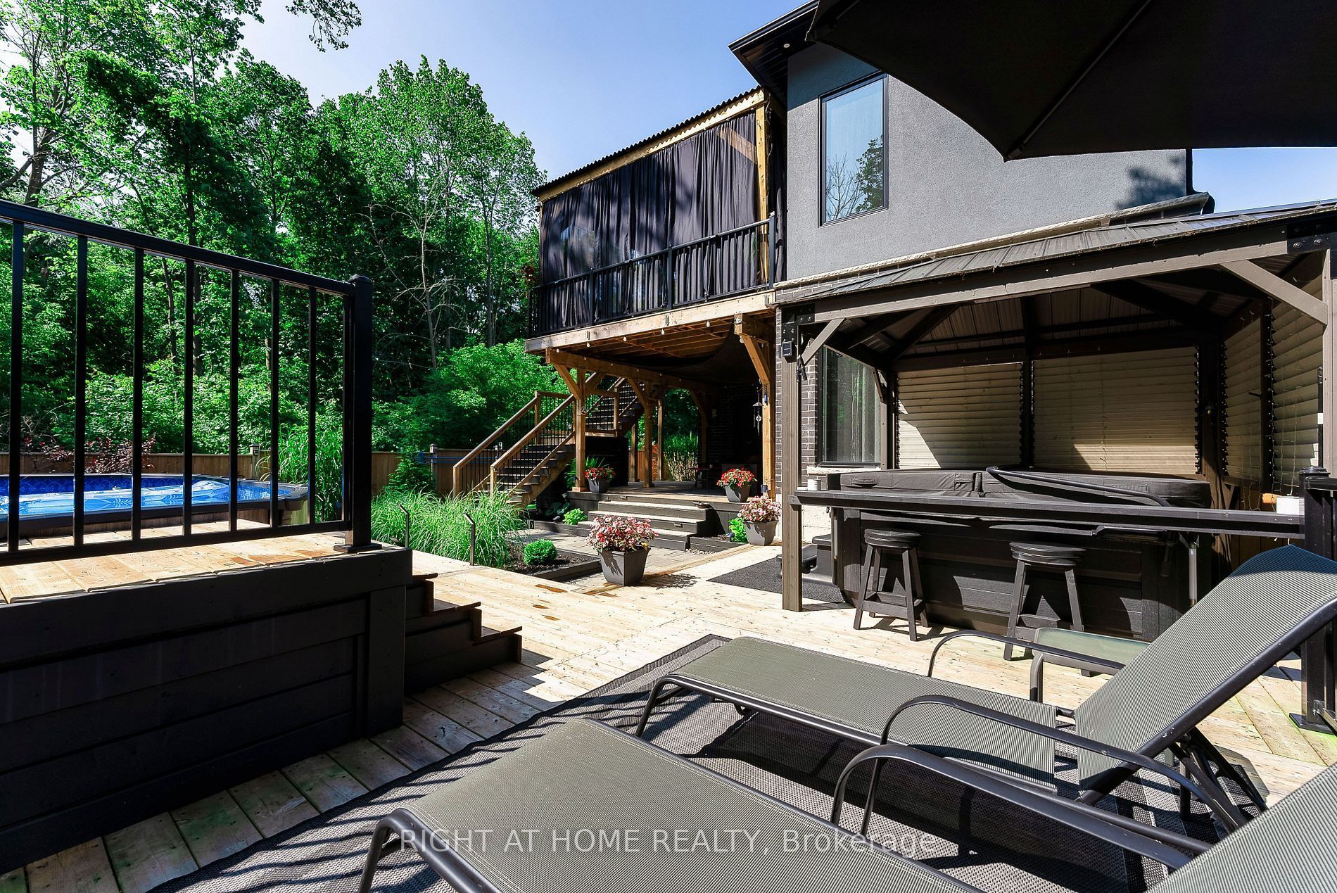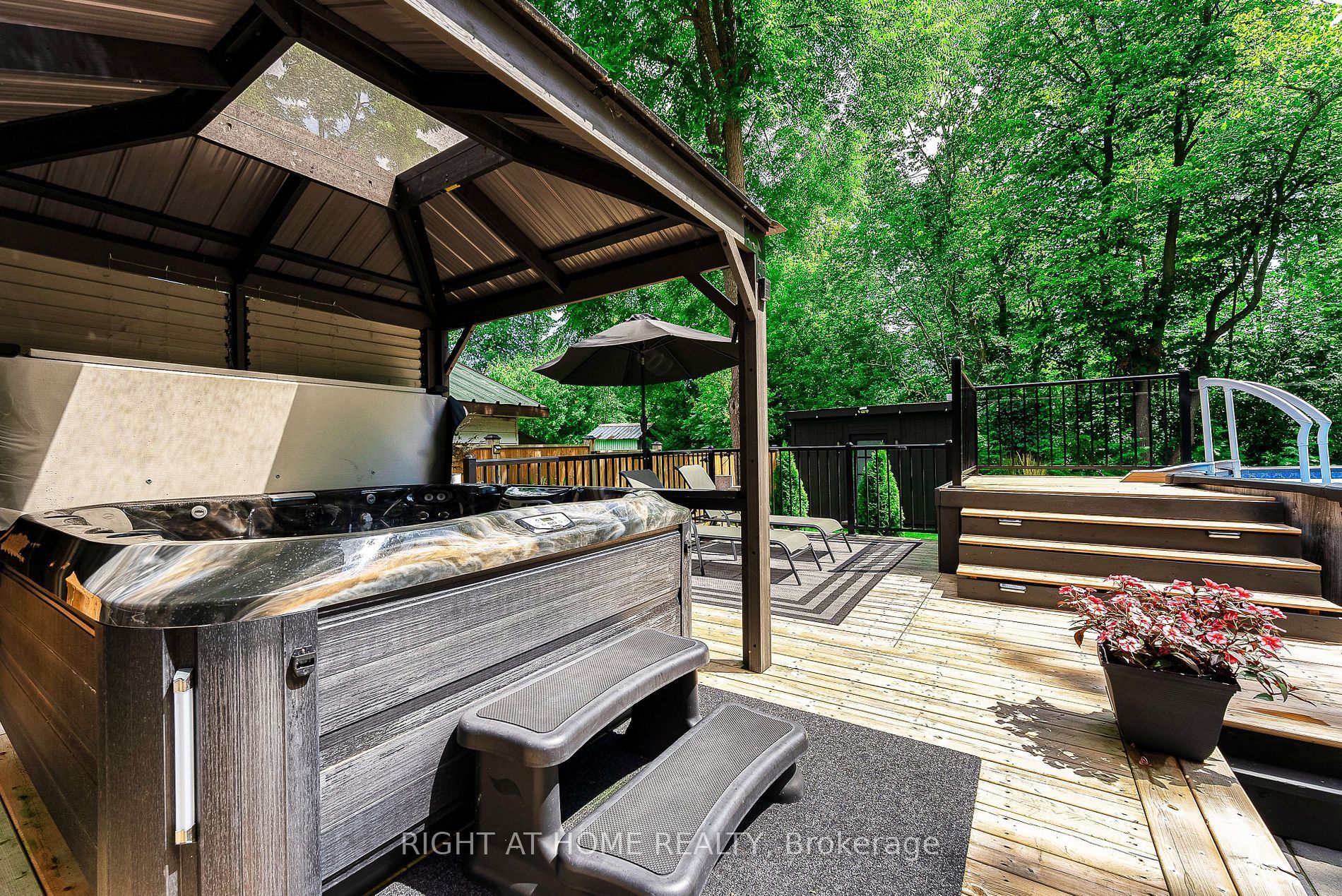 • Private backyard oasis includes an above ground pool and hot tub.