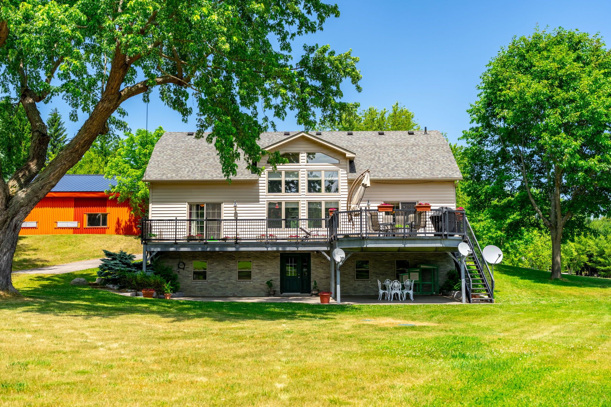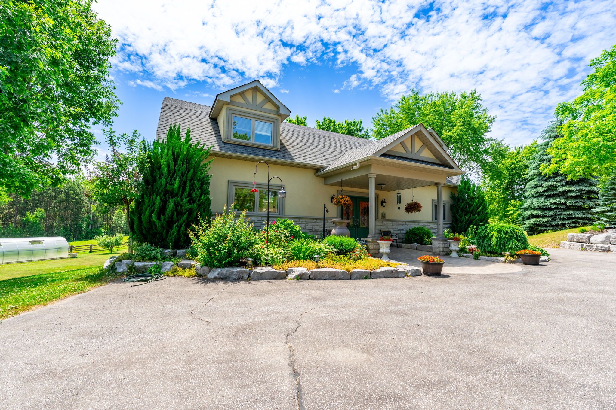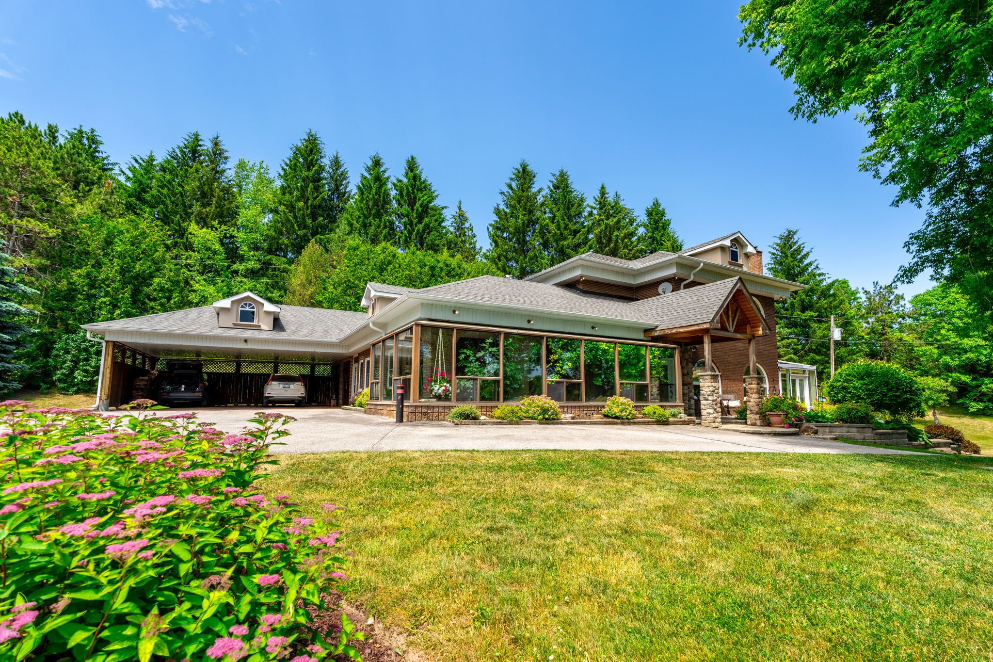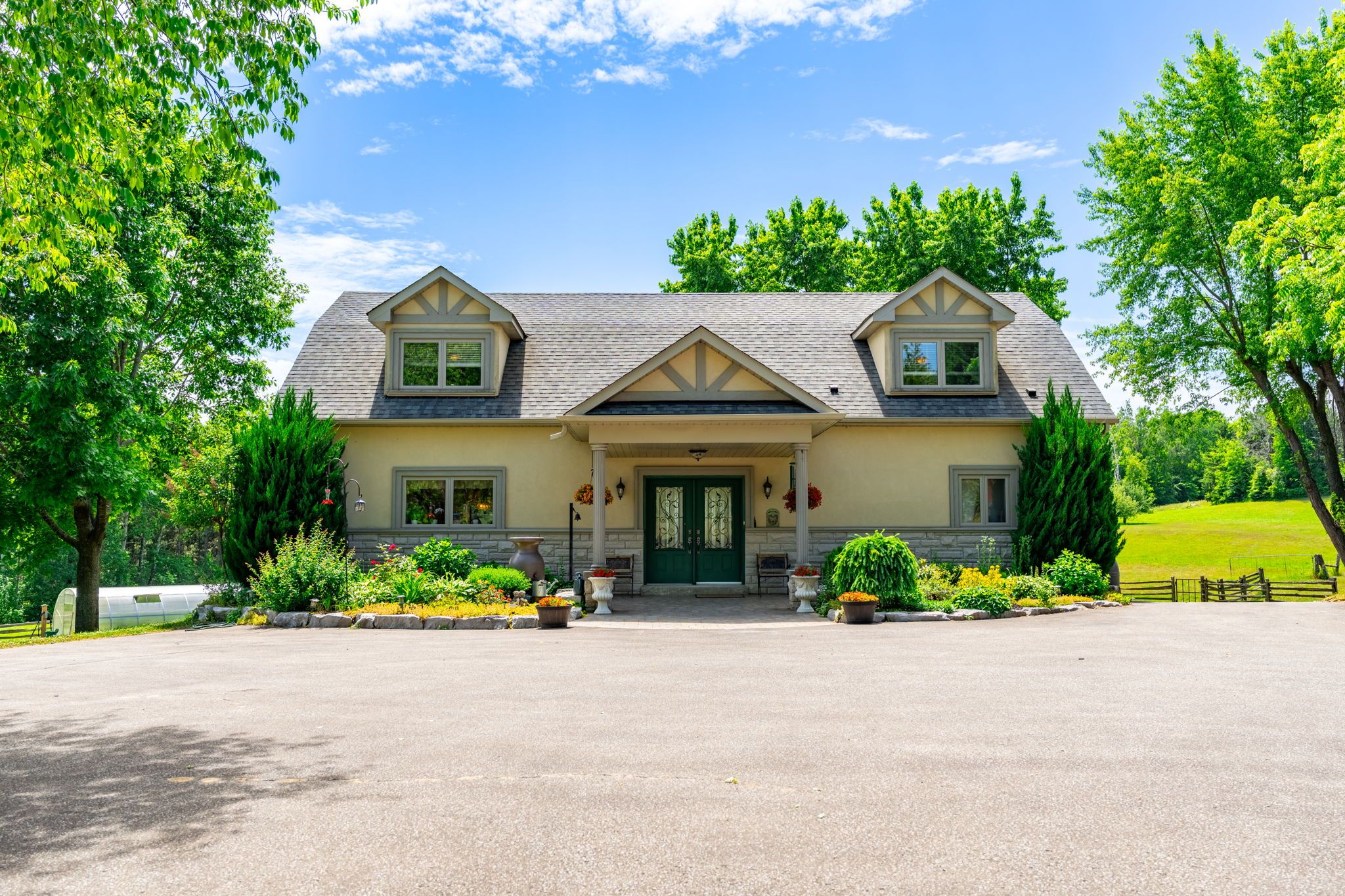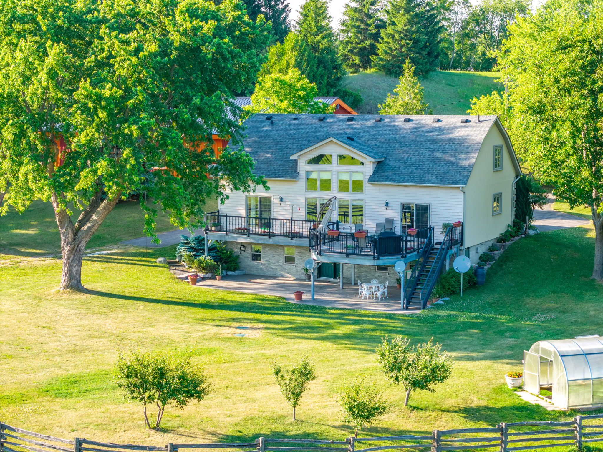 Welcome to 994030 mono adjala townline - a breathtaking country estate where refined living meets natural beauty across 18 private acres. With 2 beautiful homes, plus a 9,300 sq ft outbuilding, this one-of-a-kind property offers total privacy, timeless design, and boundless opportunity - all just an hour from toronto and minutes to alliston or orangeville. Main house: the 4-bedroom, 4-bath main residence offers over 3,100 sq ft of warm, elegant living space. Oversized windows frame postcard views in every direction, while a wood-burning fireplace, and natural finishes create a sense of calm and comfort throughout. Ideal for entertaining, hosting family, or simply enjoying the quiet rhythm of country life. Guest house: set privately across the property, a fully self-contained 3-bedroom, 5-bathroom, 2,900+ sq ft guest house adds unmatched flexibility. With three fully finished floors, a walk-out basement and massive deck, it's perfect for multi-generational living, visiting guests, or as a potential luxury rental income stream. Outbuilding: at the heart of the property stands a striking 9,300+ sq ft outbuilding with soaring ceilings, a new metal roof (2023), and 200 amp service - ideal for a hobby farm, collectors, or just about any venture you can dream up. Outside, the landscape is pure magic: walk forested trails, explore rolling meadows, and fish in your own spring-fed pond. Spend the day paddle boarding, swimming, or lounging at your private beach, then gather by the firepit as the sun sets and stars emerge. Whether you're seeking a private family oasis, a four-season escape, or a legacy property to grow into for generations, this once-in-a-lifetime estate is ready to welcome its next chapter. Don't miss the incredible video tour, and full floor plans for both homes and the outbuilding. Luxury certified.