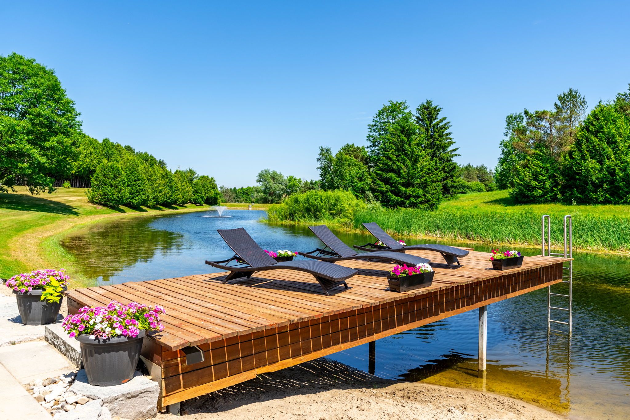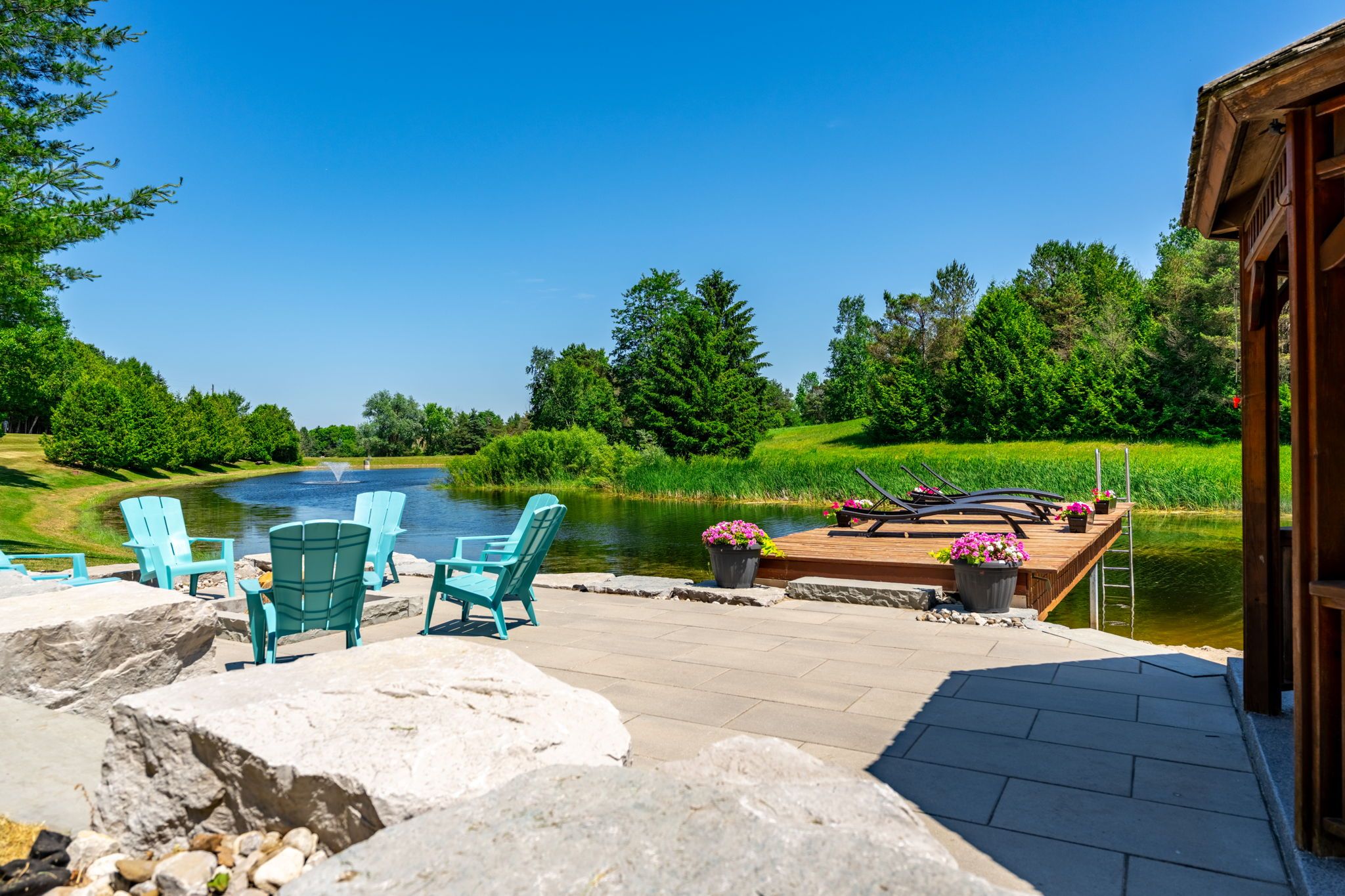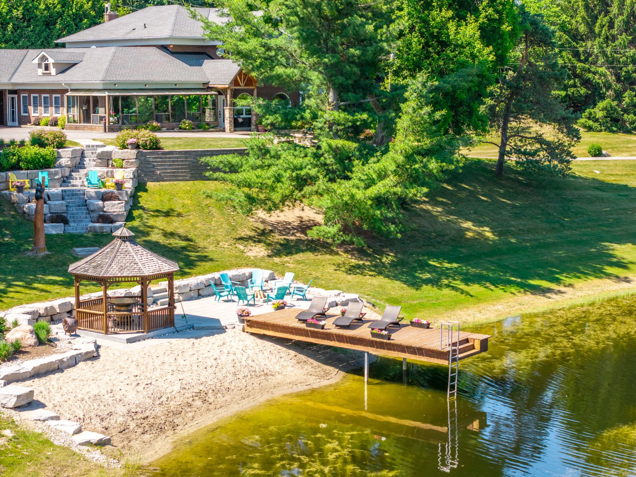 • Enjoy outdoor activities with private trails, a pond, and a beach area.