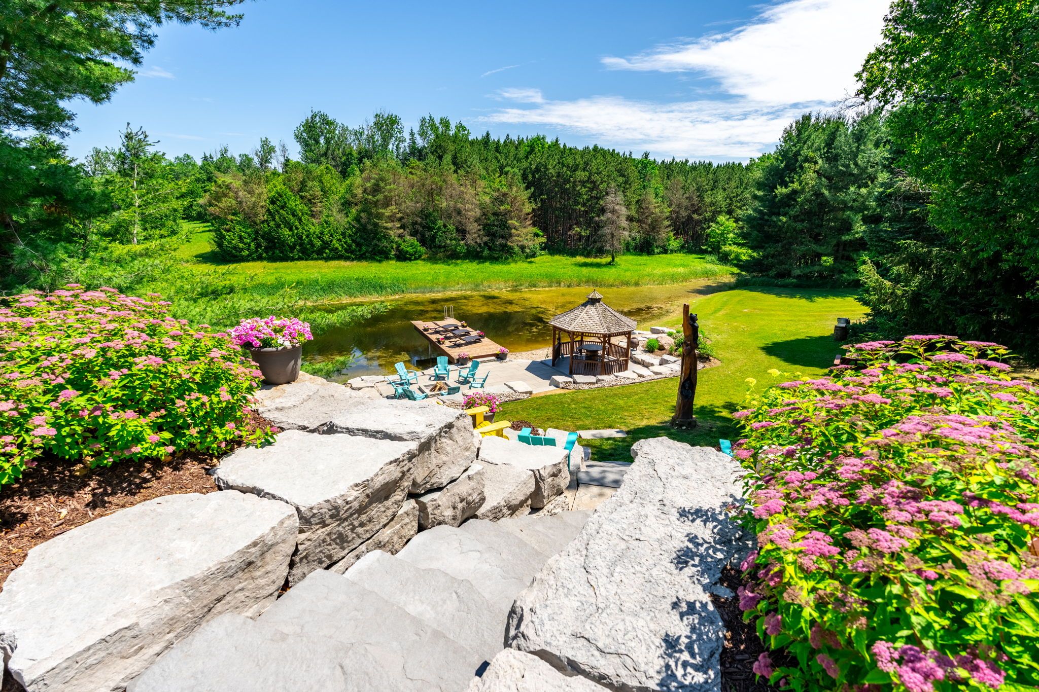 • Sprawling 18-acre estate offers complete privacy and natural beauty.