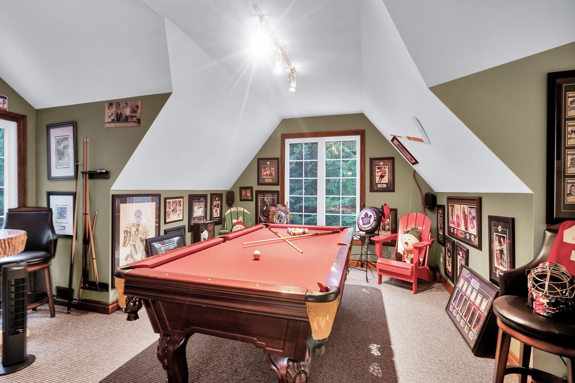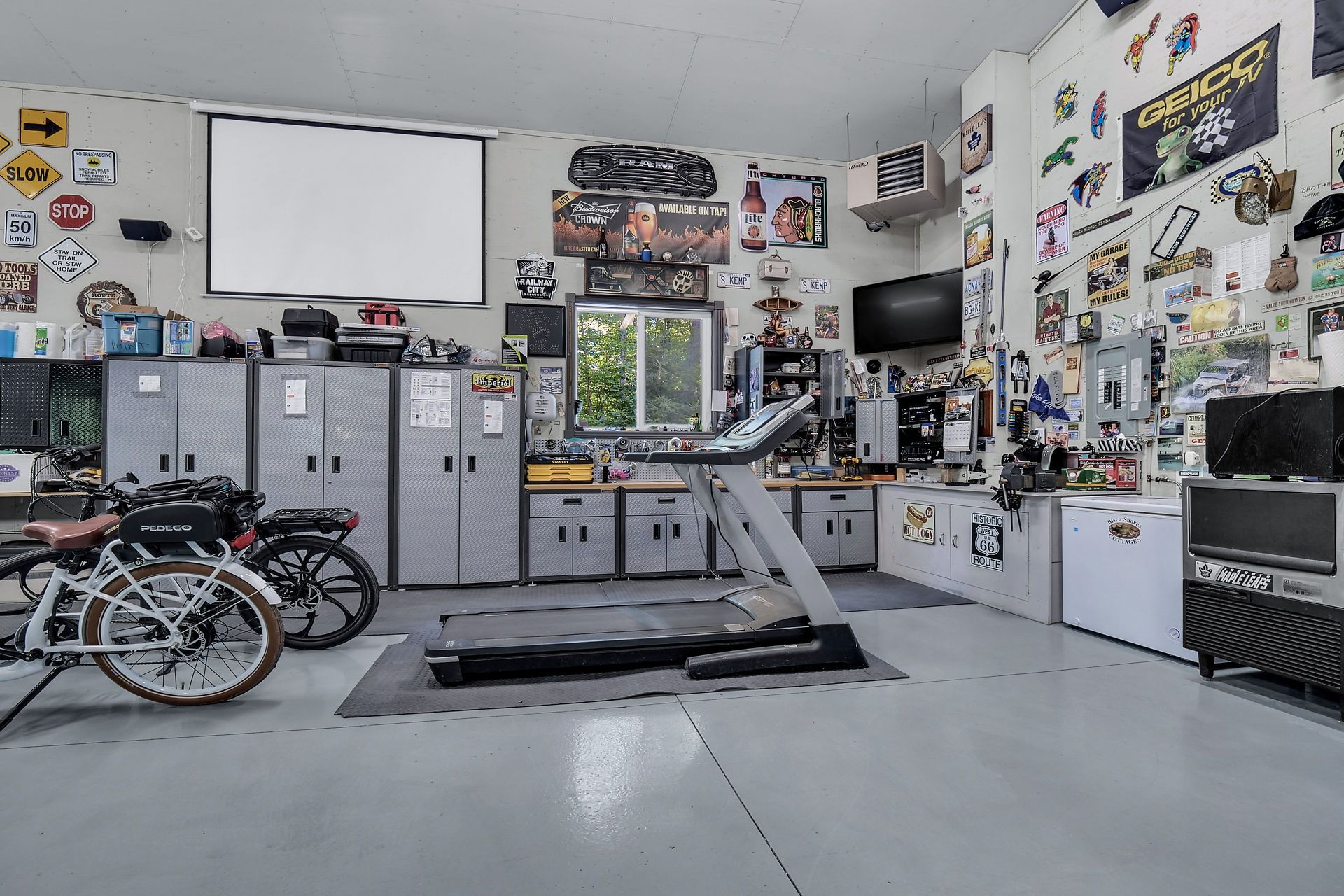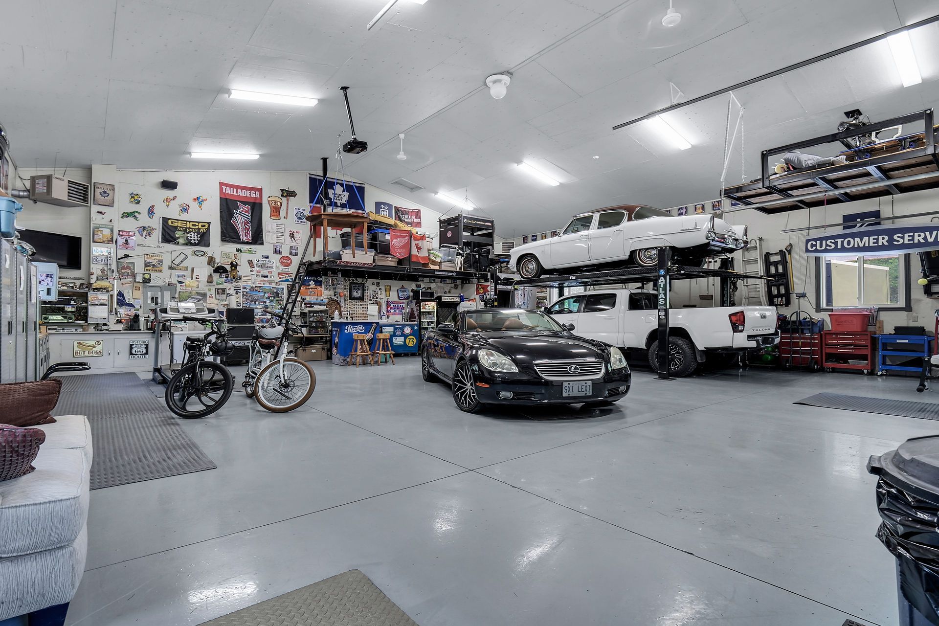 • Large heated garage with space for toys and camper parking.