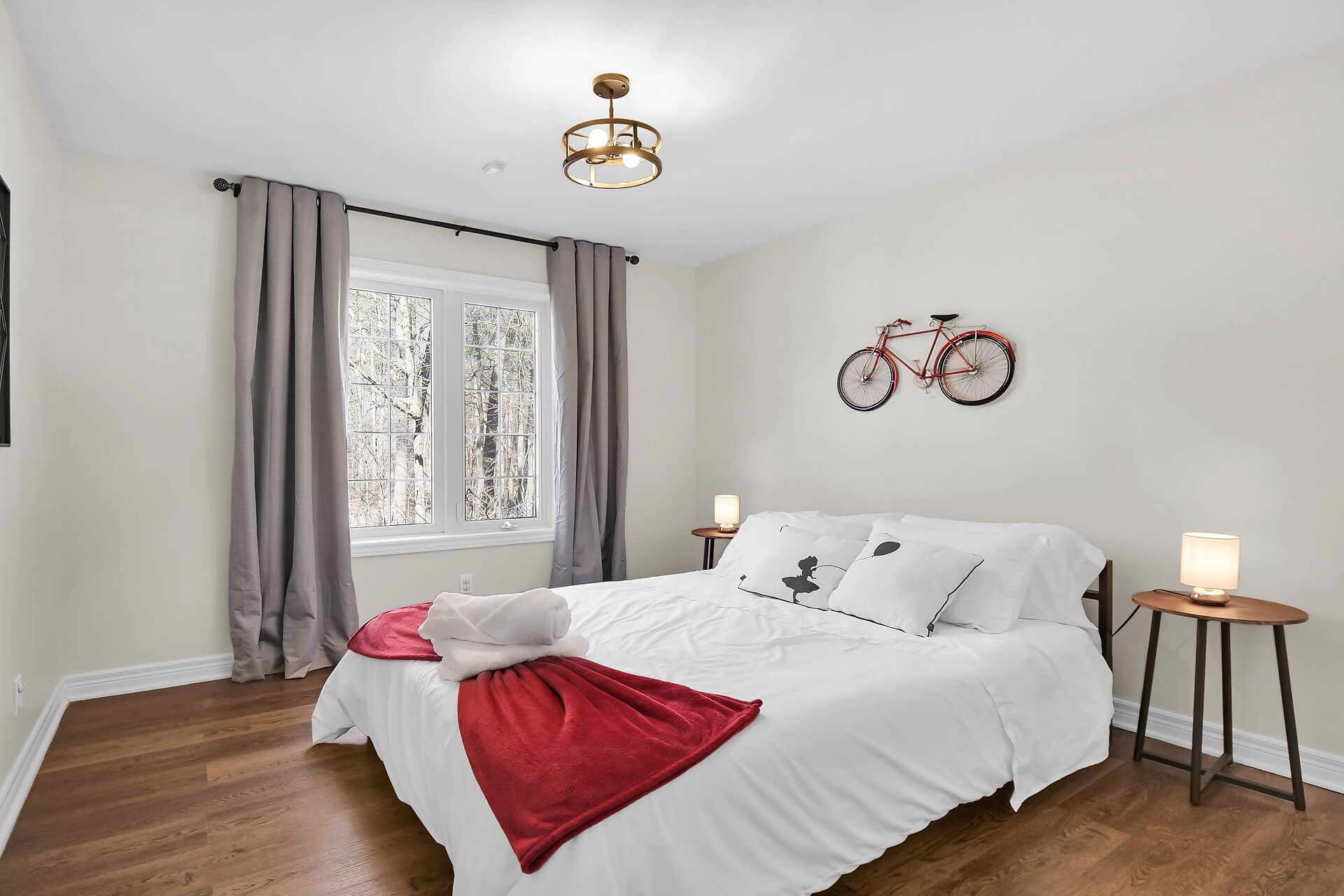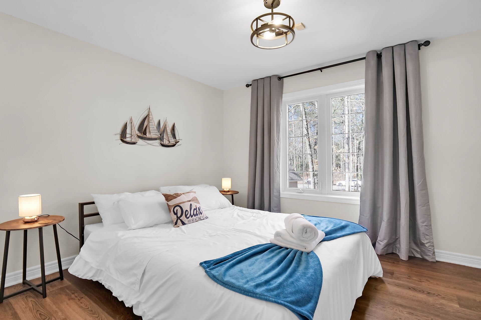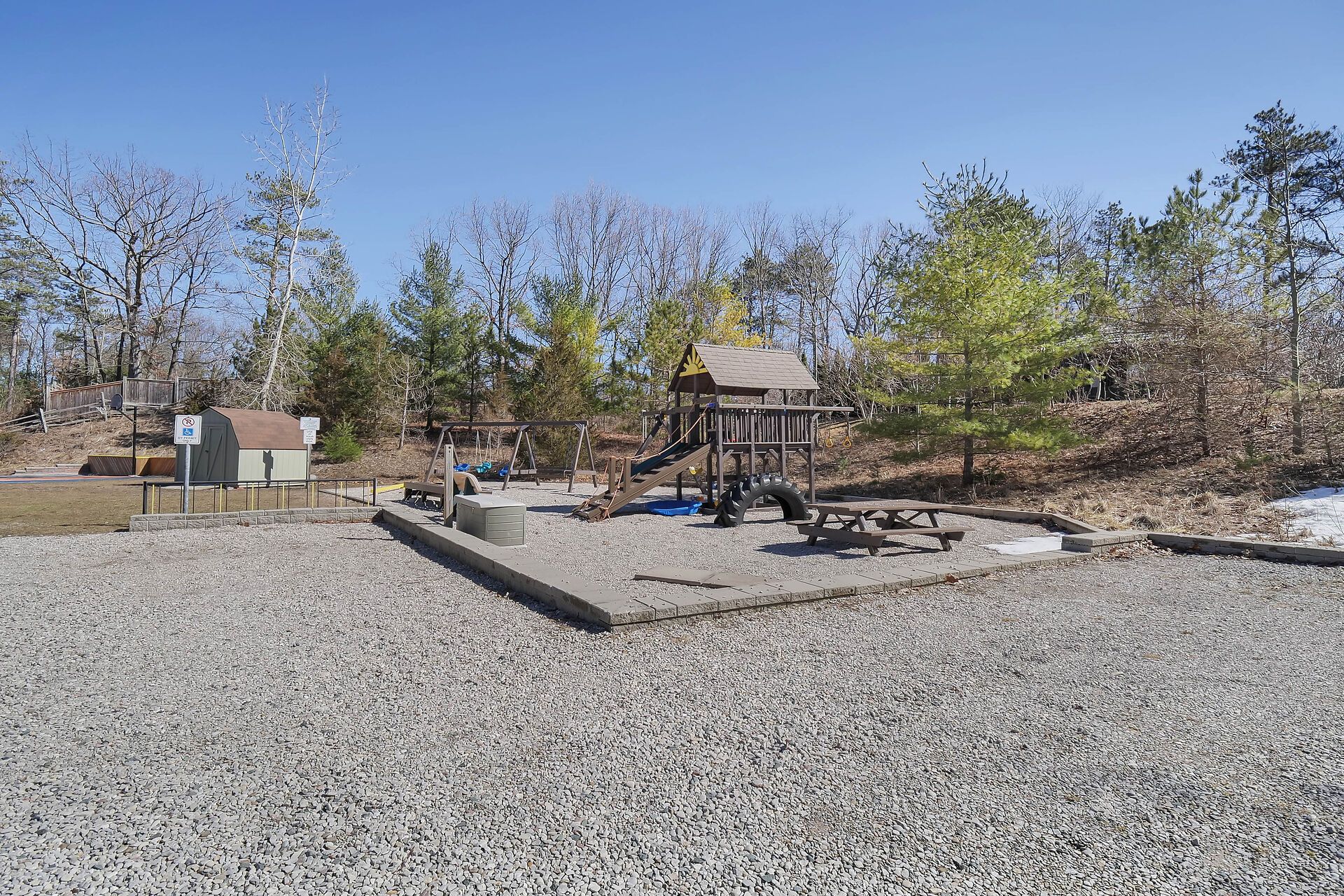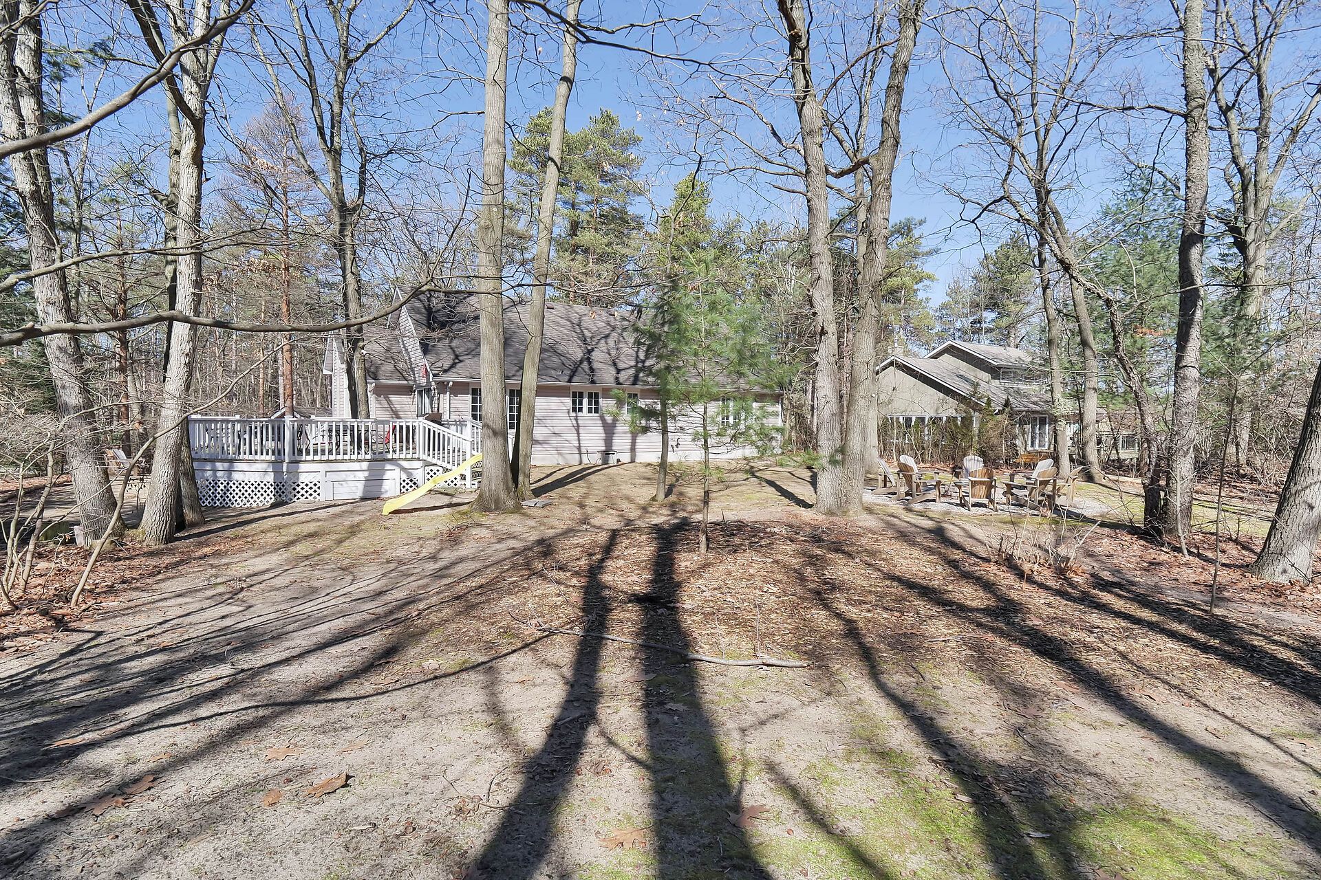 • Private treed half-acre lot with plenty of outdoor space and a fire pit.