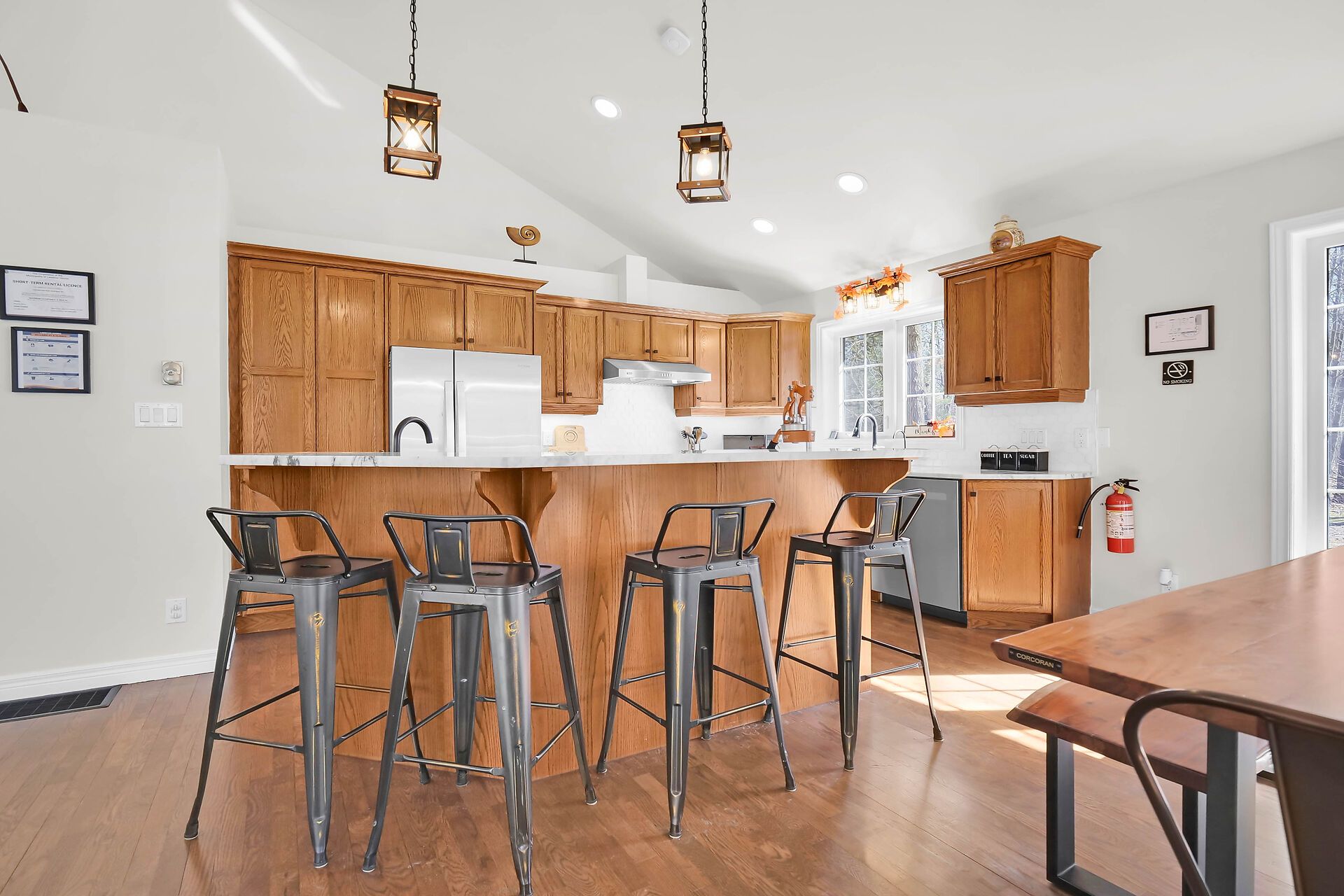 Welcome to acorn hills your woodland retreat in huron woods! Looking for the perfect getaway? Acorn hills is your spot whether you're craving peaceful weekends or a smart rental investment. Nestled on a private, treed half-acre lot, this home has it all: a fire pit, an extra-large deck, and parking for 8-9 cars (because road trips need options). There is even a detached garage for your gear. Inside, the vaulted ceiling in the great room creates an airy, inviting space, complete with a gas fireplace for cozy nights. The kitchen shines with newer appliances, quartz countertops, and loads of natural light. The open-concept dining area spills onto the deck, perfect for morning coffee or evening wine. Hardwood floors, three spacious bedrooms, and two updated full baths round out the main level. Downstairs? It's all about fun. A games room, a huge family room, and an extra bedroom make it the ultimate hangout space. And just down the road, the huron woods clubhouse keeps the good times rolling with tennis, pickleball, basketball, a playground, pool tables, ping pong, and more. Peace, privacy, and plenty of play. Acorn hills is calling.