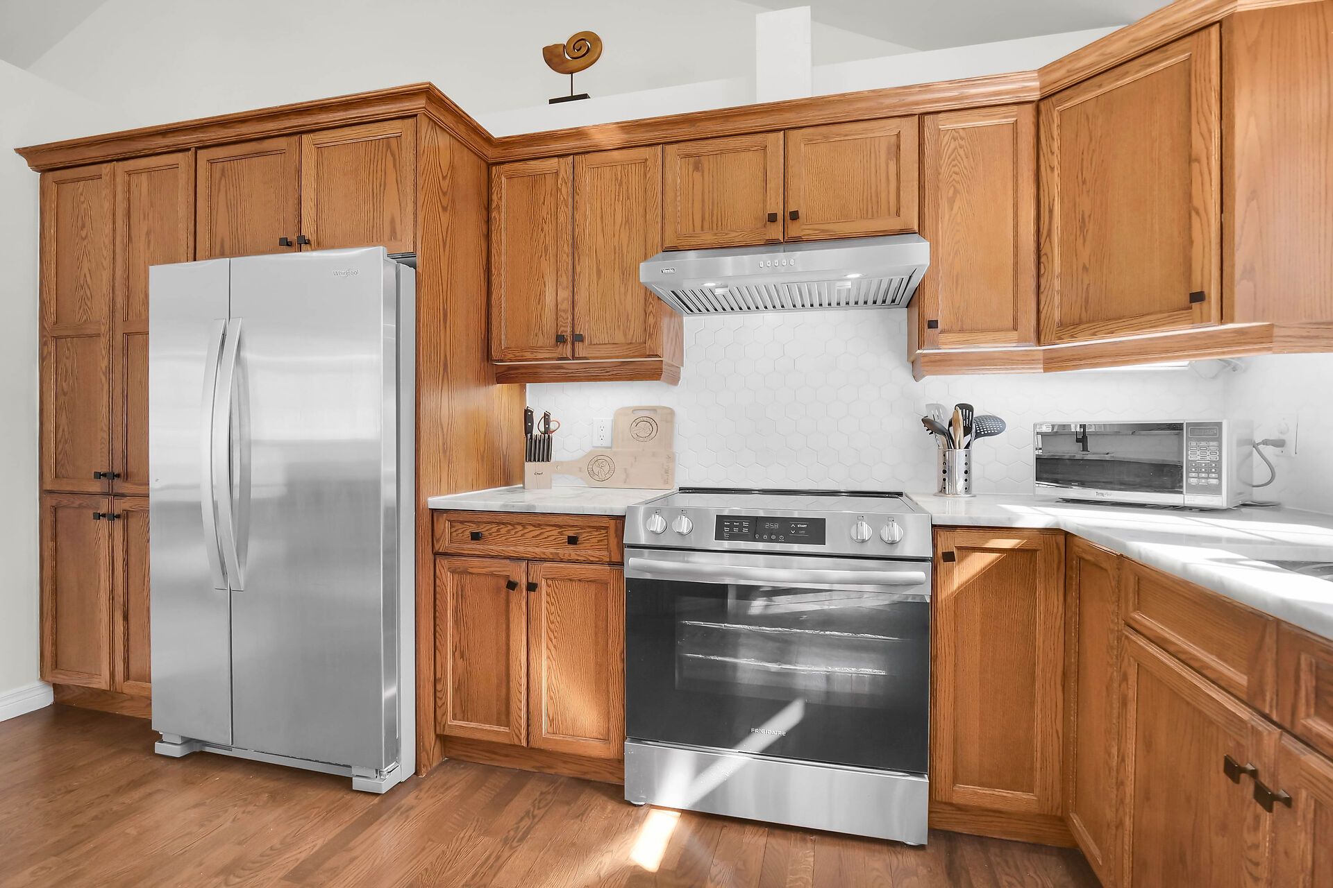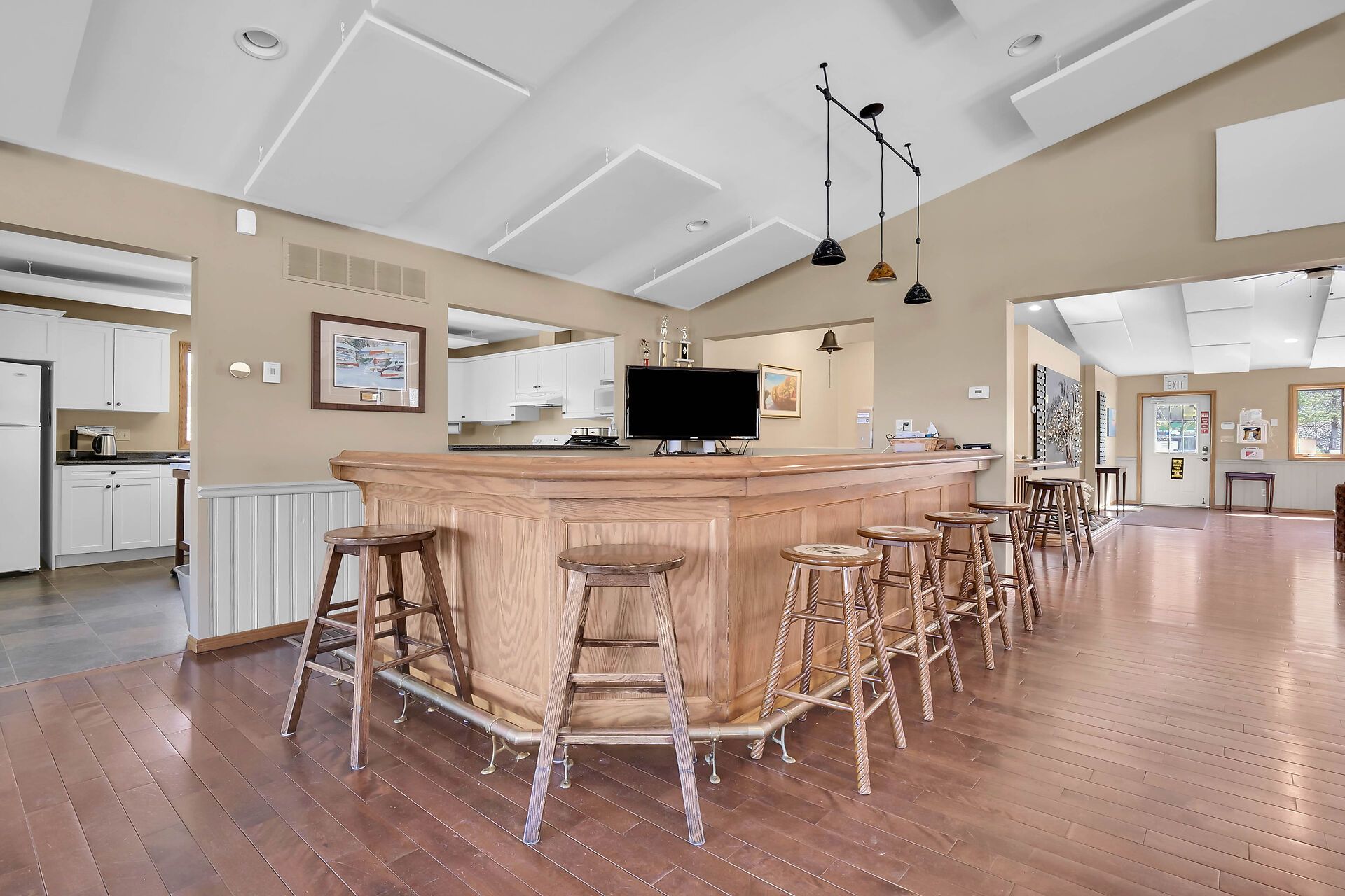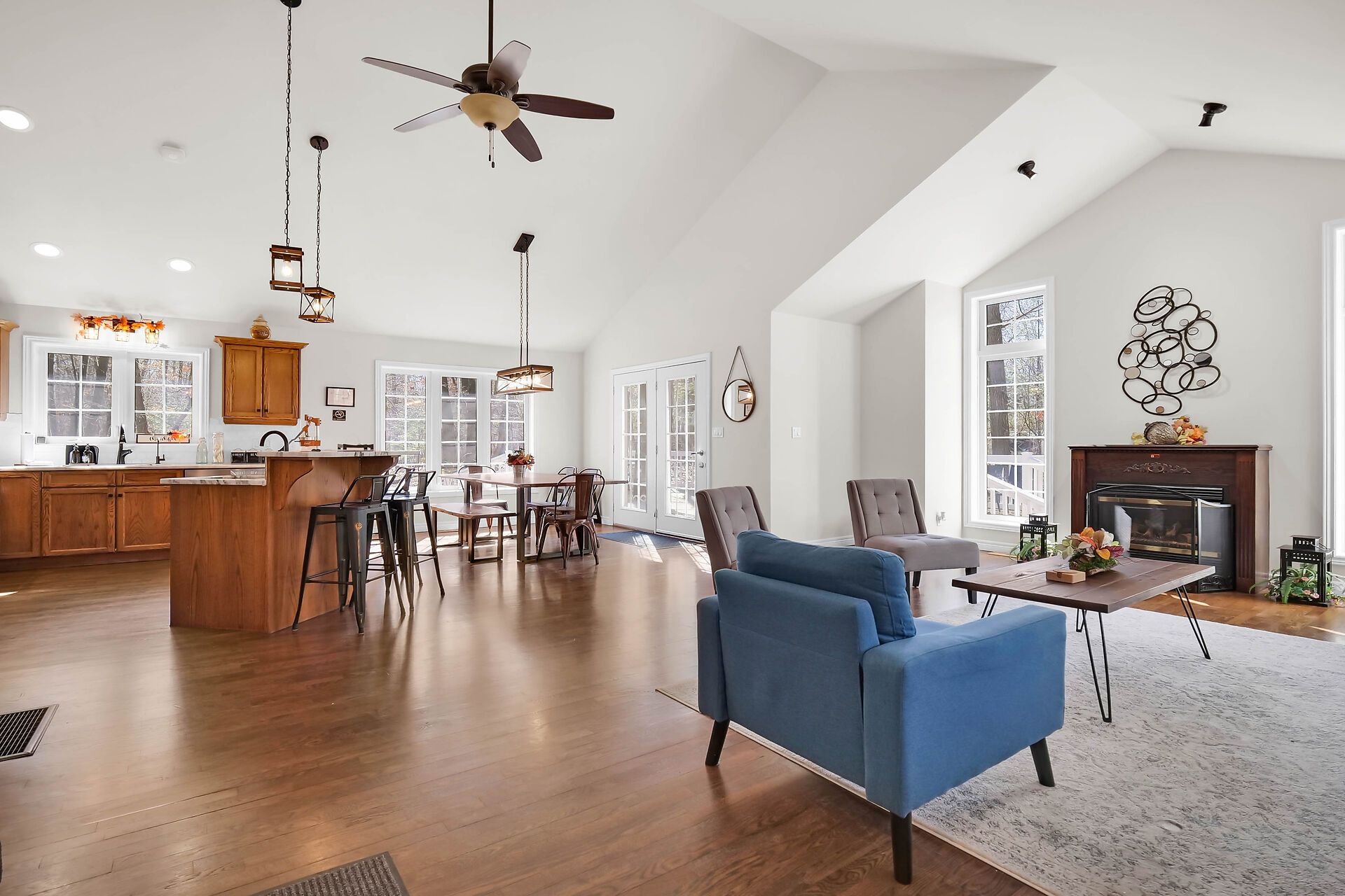 • Vaulted ceiling in the Great Room with a cozy gas fireplace.