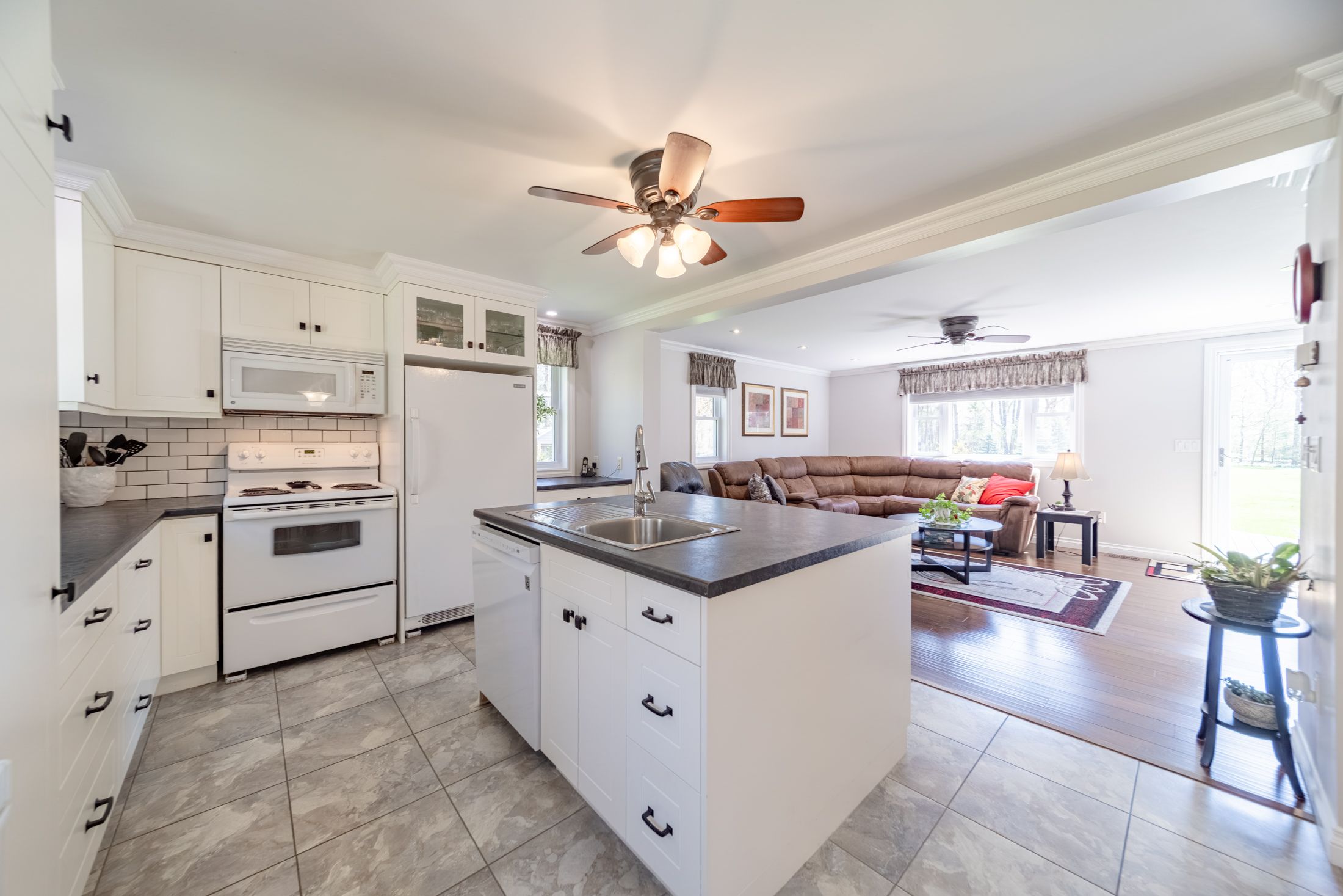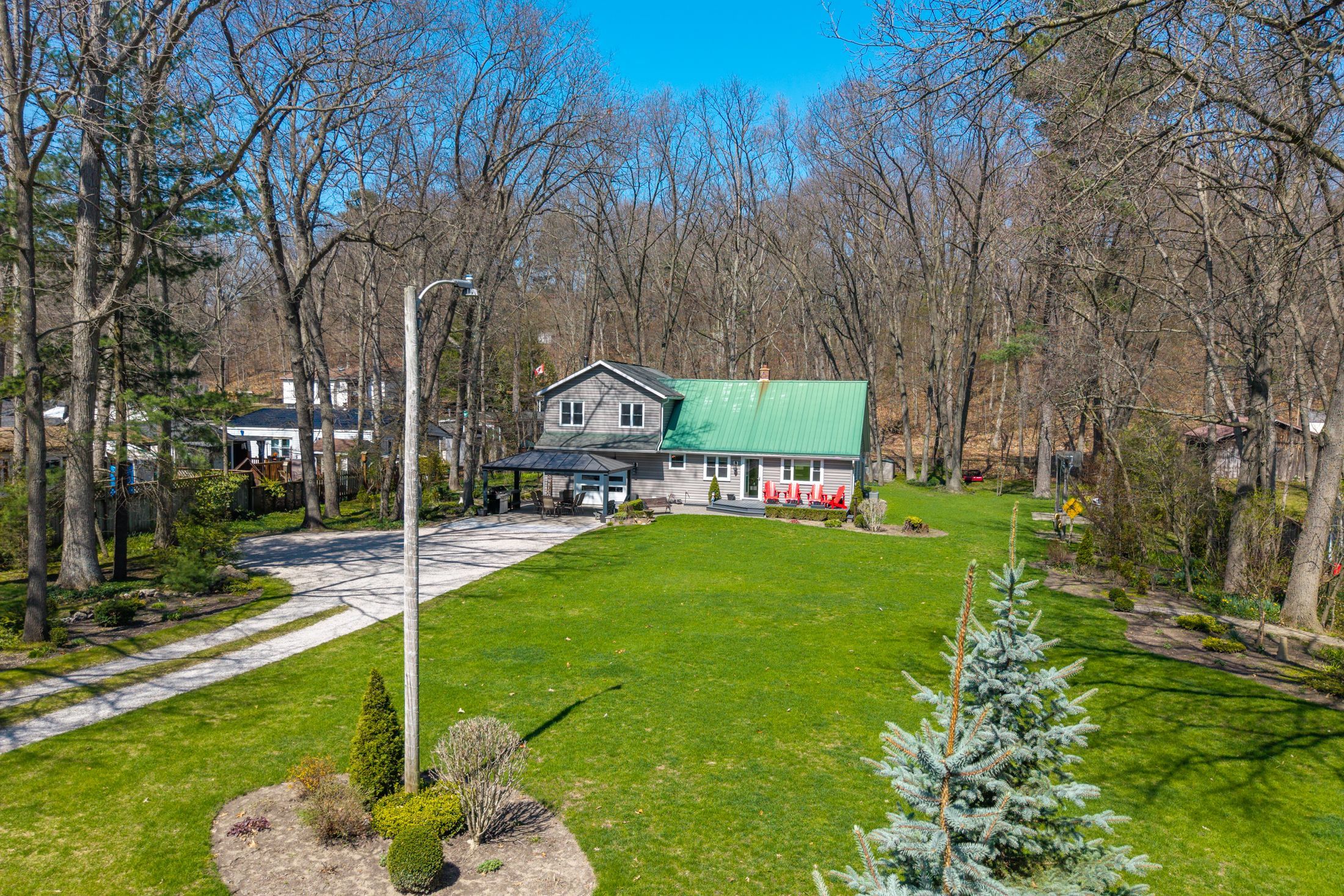 Welcome to your private retreat, ideally located just minutes from port franks, grand bend, ausable river conservation area, and the stunning sandy shores of lake huron. Set on just under an acre, this property boasts a beautifully expansive yard-perfect for relaxing, entertaining, or simply enjoying the peaceful surroundings that make this area so desirable. Step inside this 2 story, 4+ bedroom, 2 bathroom home. The renovated main floor in 2015 has been thoughtfully designed with modern finishes while maintaining a warm and inviting atmosphere. Major upgrades provide lasting peace of mind, including updated electrical, plumbing, furnace, and central a/c. The custom kitchen showcases quality cabinetry and craftsmanship, offering both style and functionality for everyday living and entertaining. A standout feature of the property is the fully insulated garage, this was an addition in 2017 along with the second floor above garage. The garage offers exceptional versatility. Ideal for parking, a workshop, or the ultimate man cave/entertainment space, it is finished with pine board detailing, an epoxy floor, insulated garage door with bug screen, and a cozy wood stove-perfect for year-round use. Whether you're searching for a full-time residence, weekend escape, or investment opportunity in a prime cottage-country setting, this property delivers the perfect blend of comfort, updates, and lifestyle.