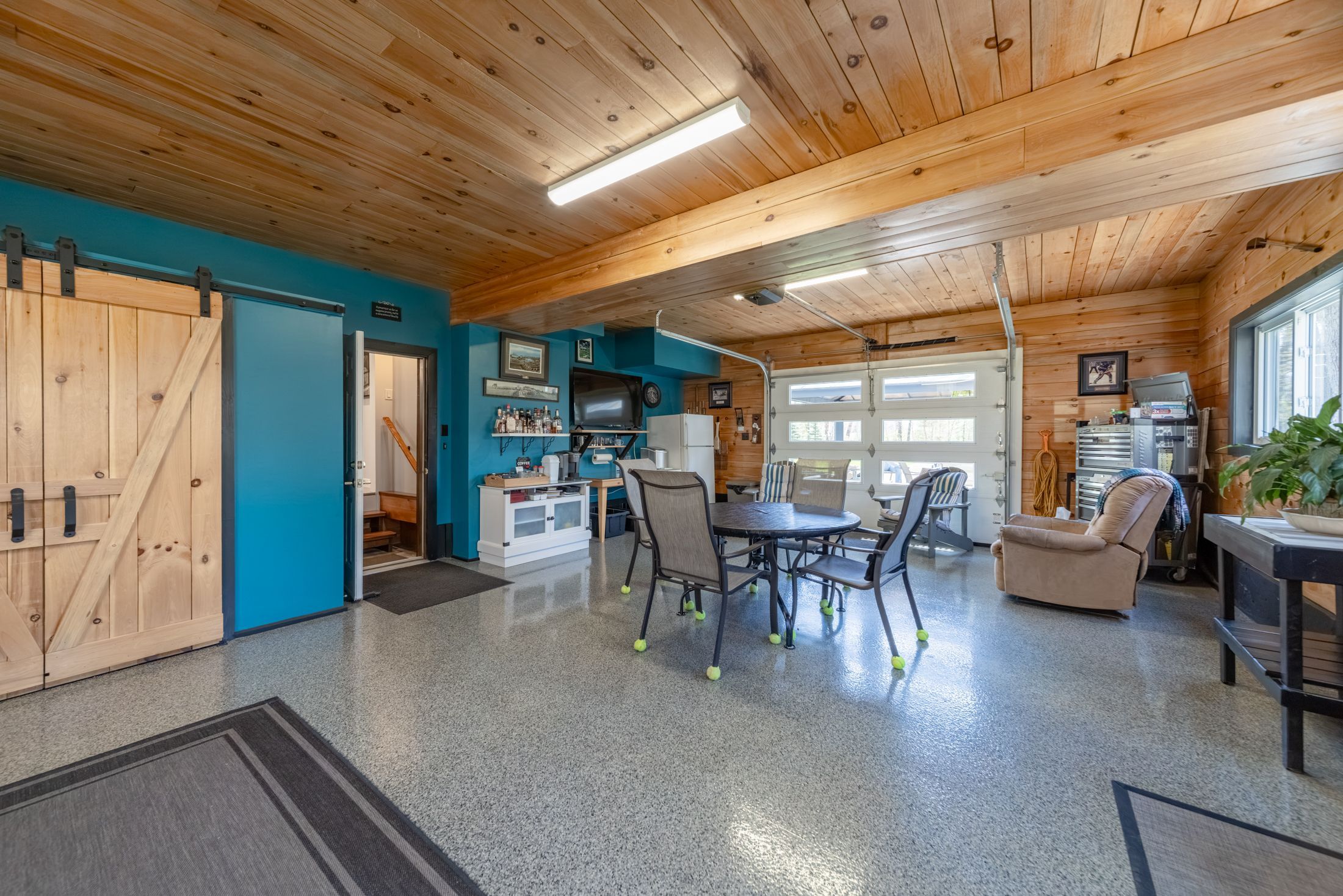 • Versatile insulated garage ideal for parking, workshop, or entertainment space.