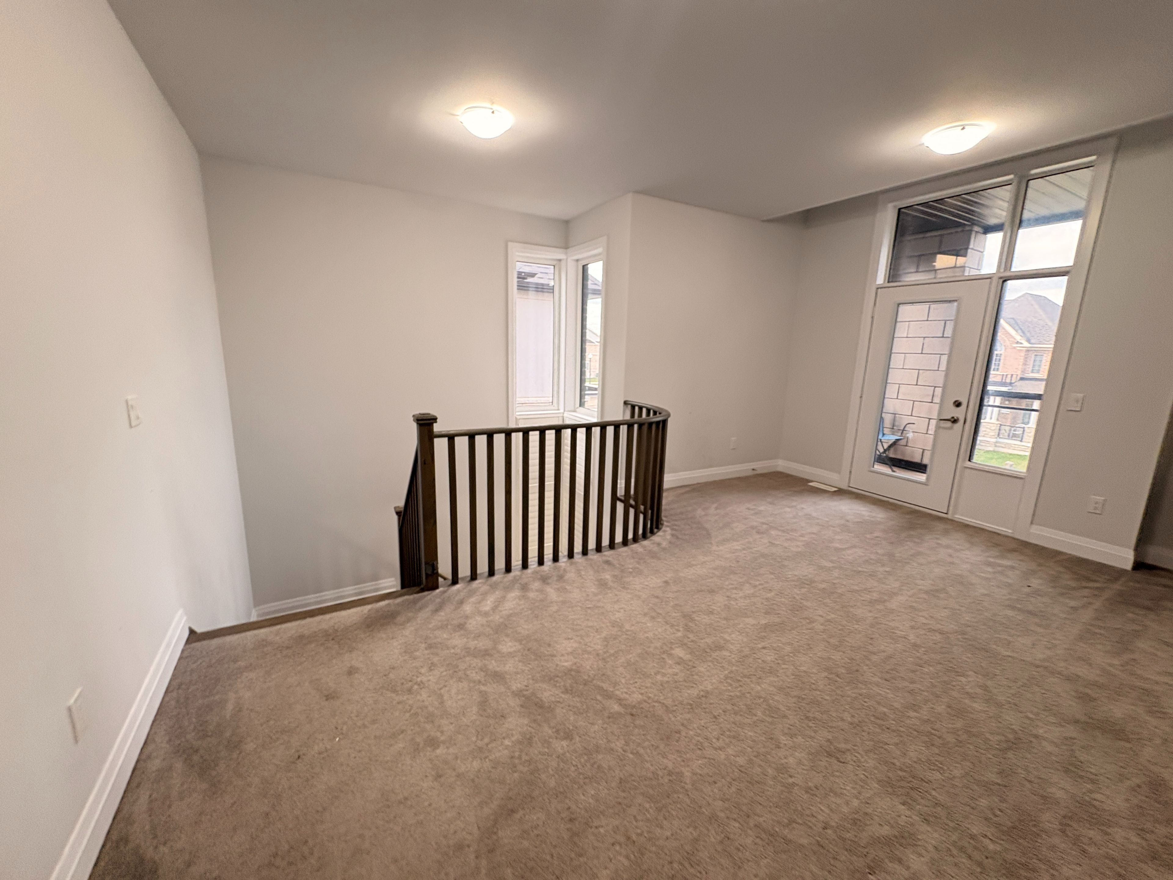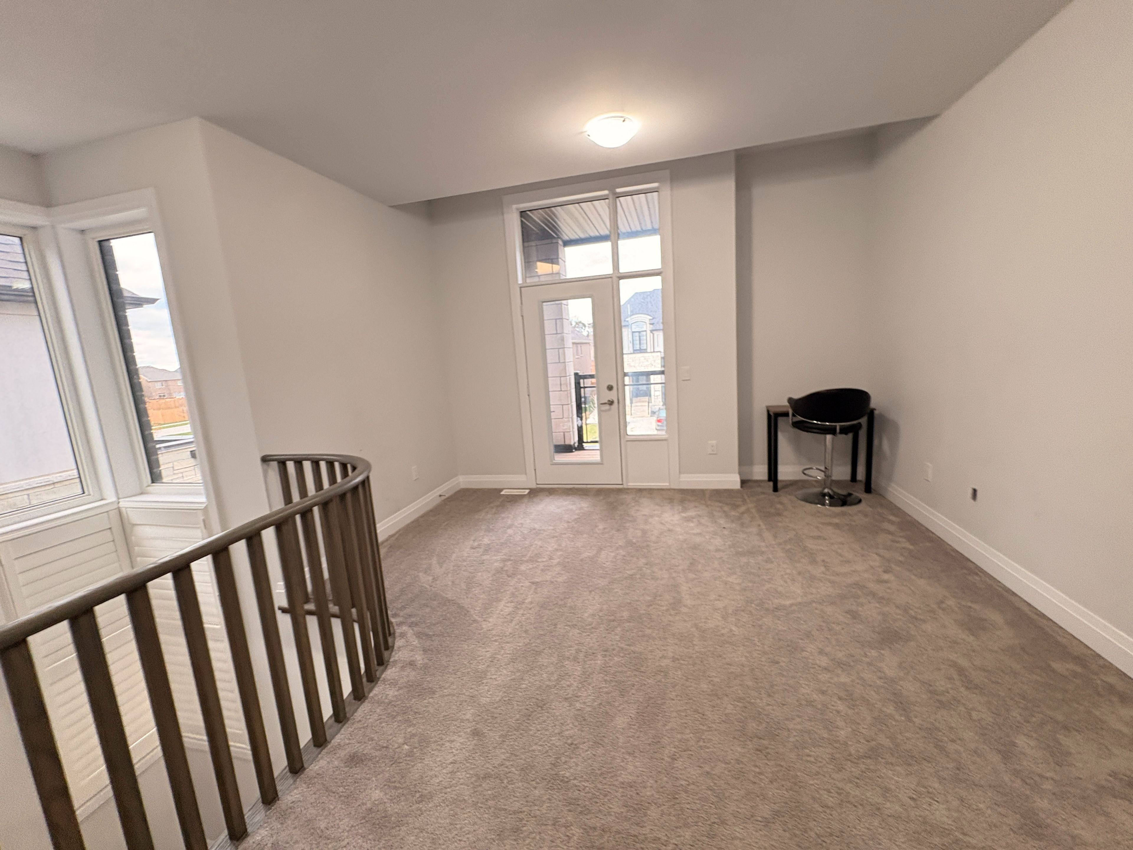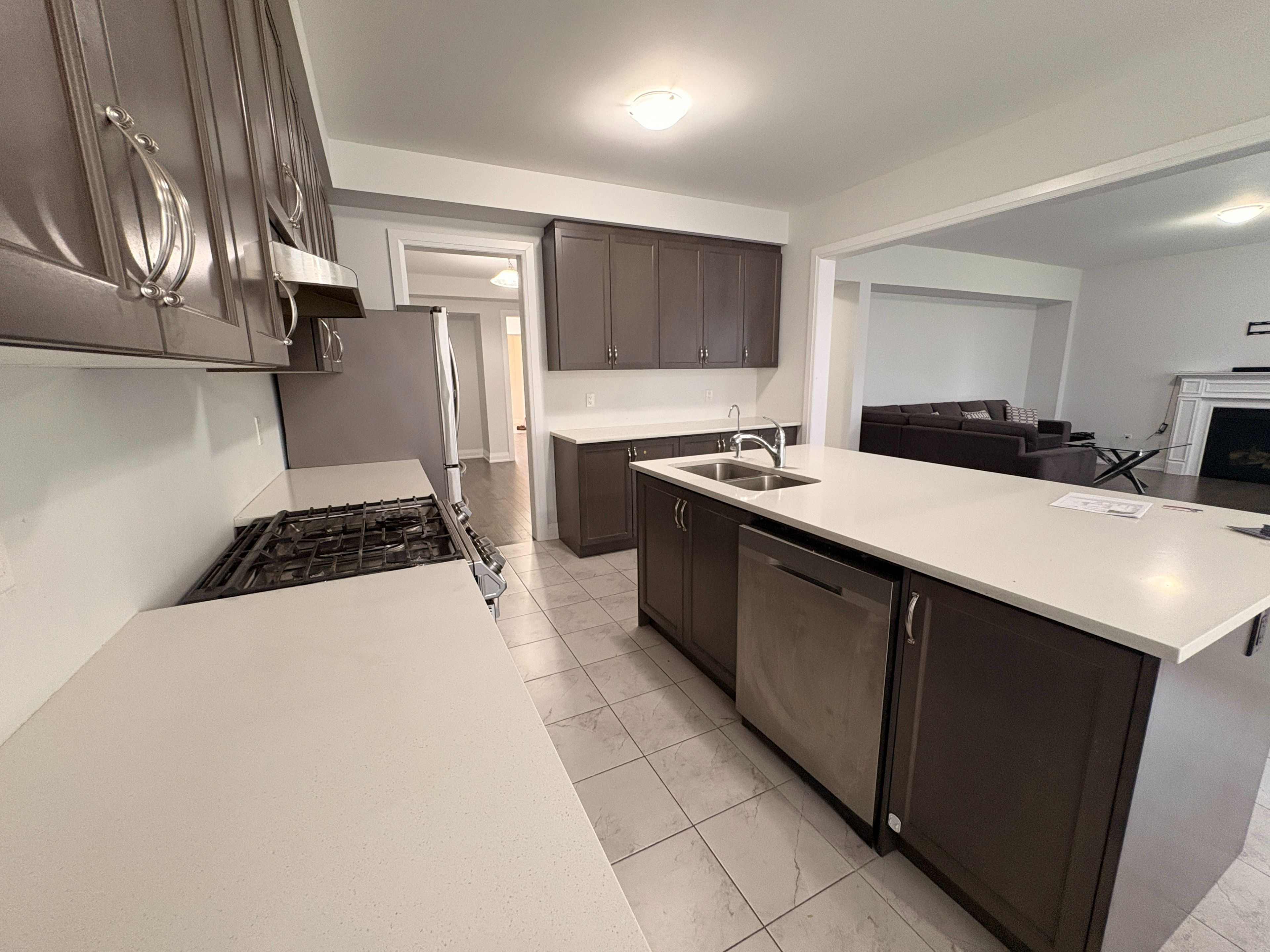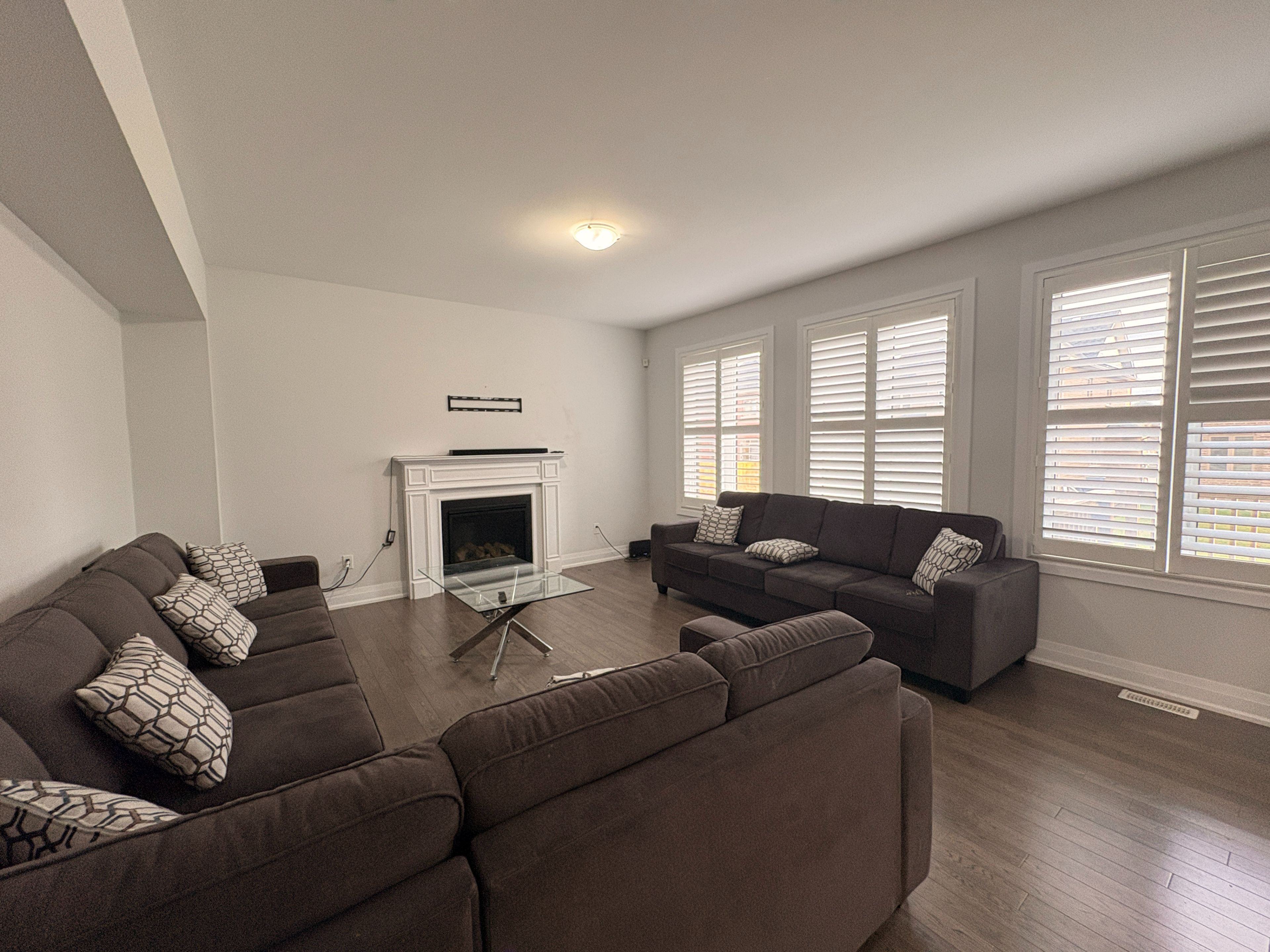 Welcome to this stunning 3000+ sq ft detached home built by kingsmen in the highly sought-after havelock corners community of woodstock. This exceptional residence features 4 spacious bedrooms, a media room/living space, and 5 bathrooms - with each bedroom offering its own private ensuite. The home also includes a tandem car garage for added convenience. Enjoy upgraded hardwood flooring, elegant oak stairs, and a bright open-concept layout enhanced by 9ft smooth ceilings. The inviting family room boasts a cozy gas fireplace, while the chef-inspired kitchen is equipped with premium quartz countertops and ample space for entertaining. Upstairs, you'll find a second-floor balcony, a versatile open area ideal for a home office or additional lounge, along with a second-floor laundry room for added comfort. Oversized windows throughout the home provide abundant natural light. Perfectly located close to transit, shopping plazas, parks, conservation areas, and other key amenities. A brand-new school is currently under construction nearby, set to open in the coming years - making this home ideal for growing families.