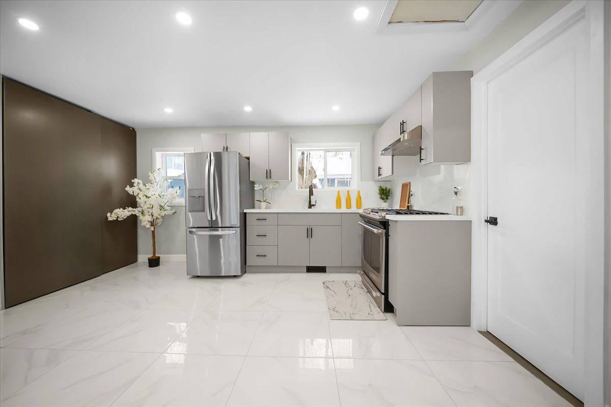 • Upgraded kitchen with quartz countertops and contemporary finishes.