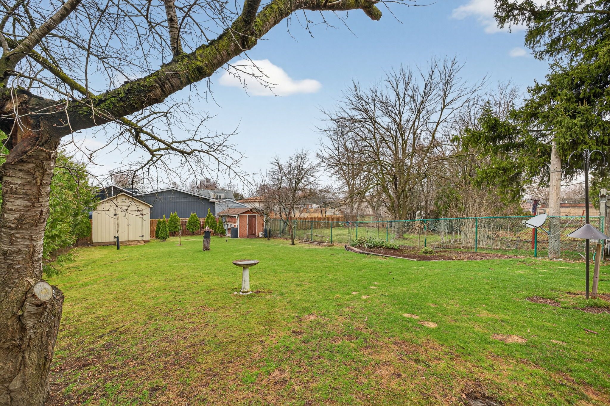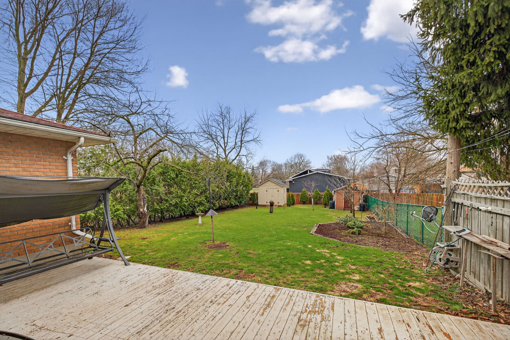 Fantastic bungalow with single car garage located on a large 50 x 197 lot in white oaks! This 3 bedroom, 2 bathroom home is located nearby wellingsboro park, nicholas wilson p. S., white oaks mall, shopping, restaurants and quick access to the 401. The main level is comprised of a spacious living room, formal dining room, kitchen, 3 bedrooms and 5-piece bathroom with double sinks. The second bedroom has sliding doors that walk out to the sundeck with awning in the fully fenced private back yard. The basement includes a den/office, 3-piece bathroom, recreation room with bar, laundry/utility room and storage room. The den/office could easily be converted to a 4th bedroom while the side door access allows the capability for an in-law suite. Updates include: driveway, some windows and basement carpet. Includes 5 appliances, bar, awning and two sheds. See multimedia link for 3d walkthrough tour and floor plans.