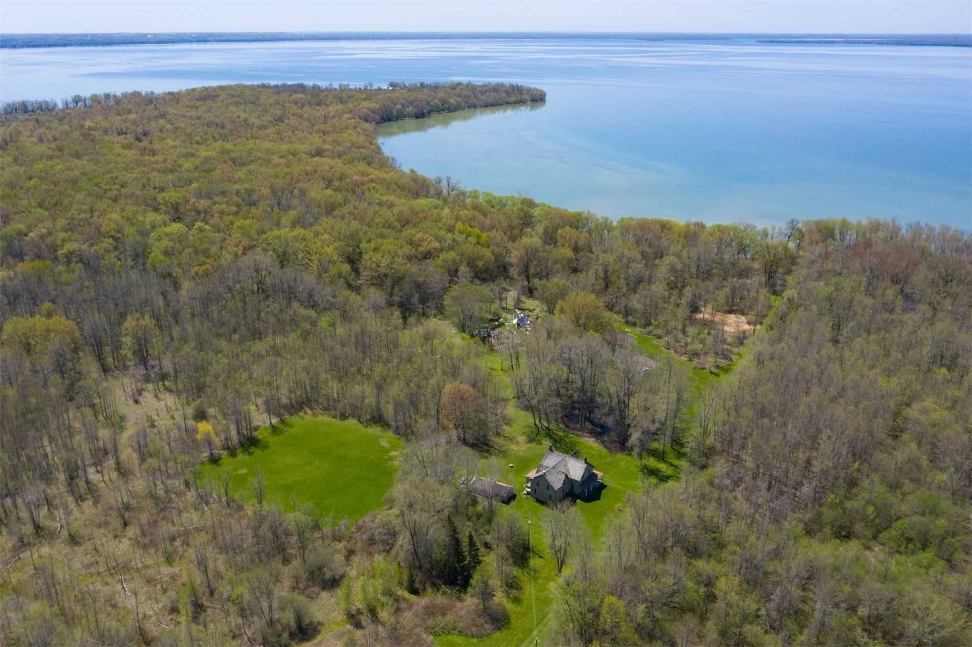 A rare opportunity to secure a spectacular waterfront holding on thorah island-located just 4 km from the mainland and approximately one hour from toronto. Encompassing 94 acres with approximately 1,900 feet of west-facing shoreline, this expansive lake simcoe property offers exceptional privacy and panoramic sunset views across a sheltered sandy bay. The existing farmhouse presents an opportunity for renovation and reimagination-ideal for those looking to restore and customize a private island retreat, family compound, or long-term investment in a truly unique setting. Mature black walnut woodlot and an extensive network of on-property trails-spanning nearly 4 kilometres-enhance the natural landscape and support a range of recreational uses including hiking, swimming, fishing, and boating in calm, protected waters. An exceptional canvas for those seeking space, seclusion, and future potential in one of lake simcoe's most distinctive island environments.