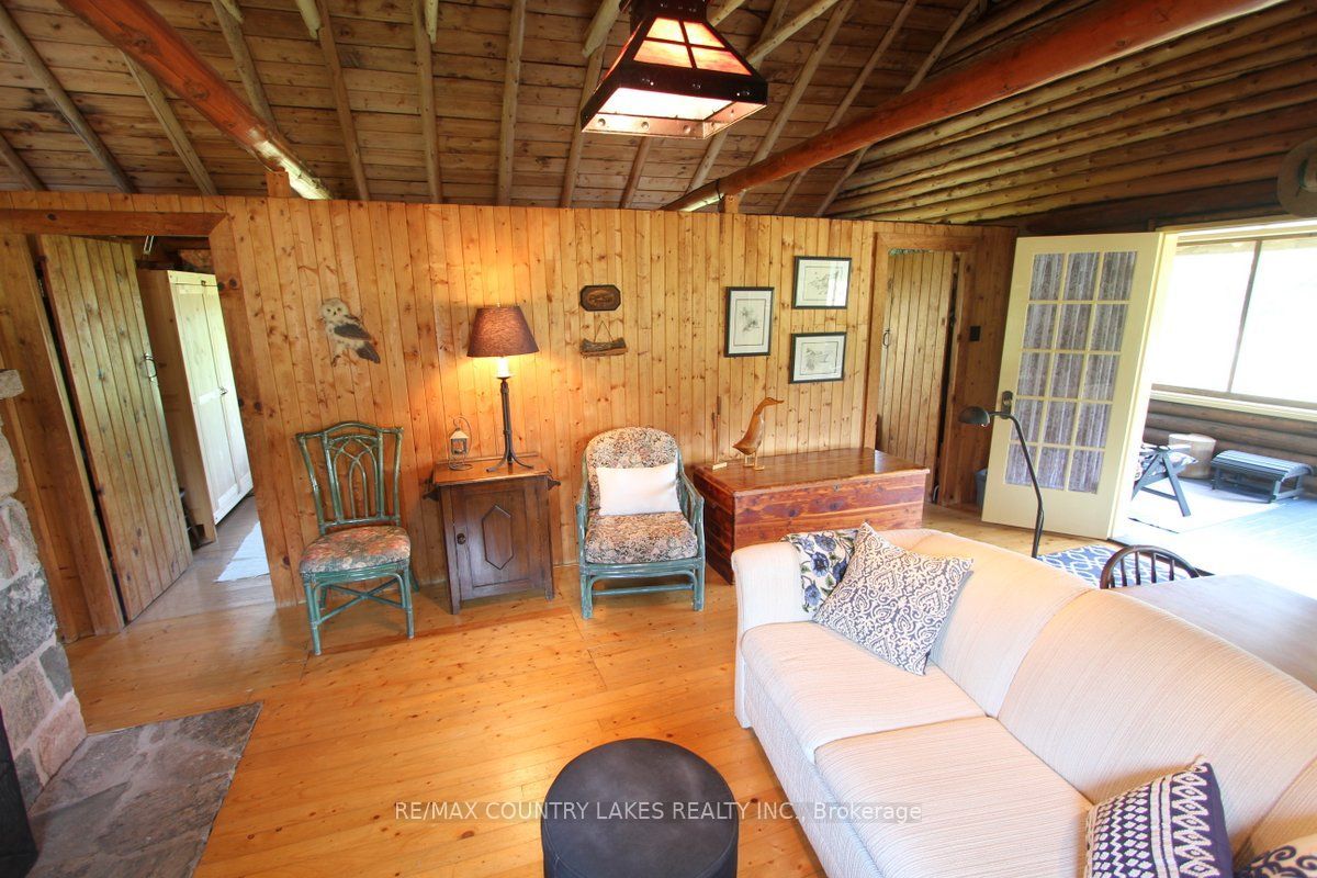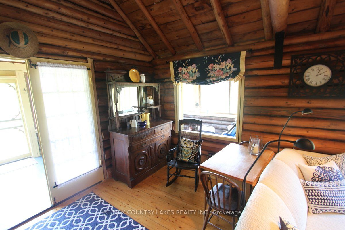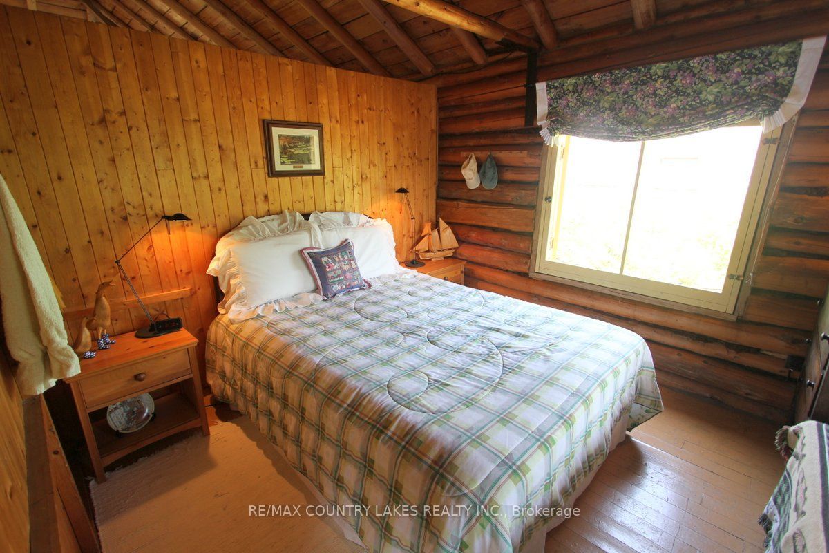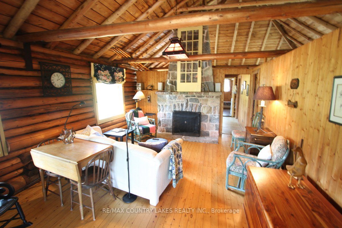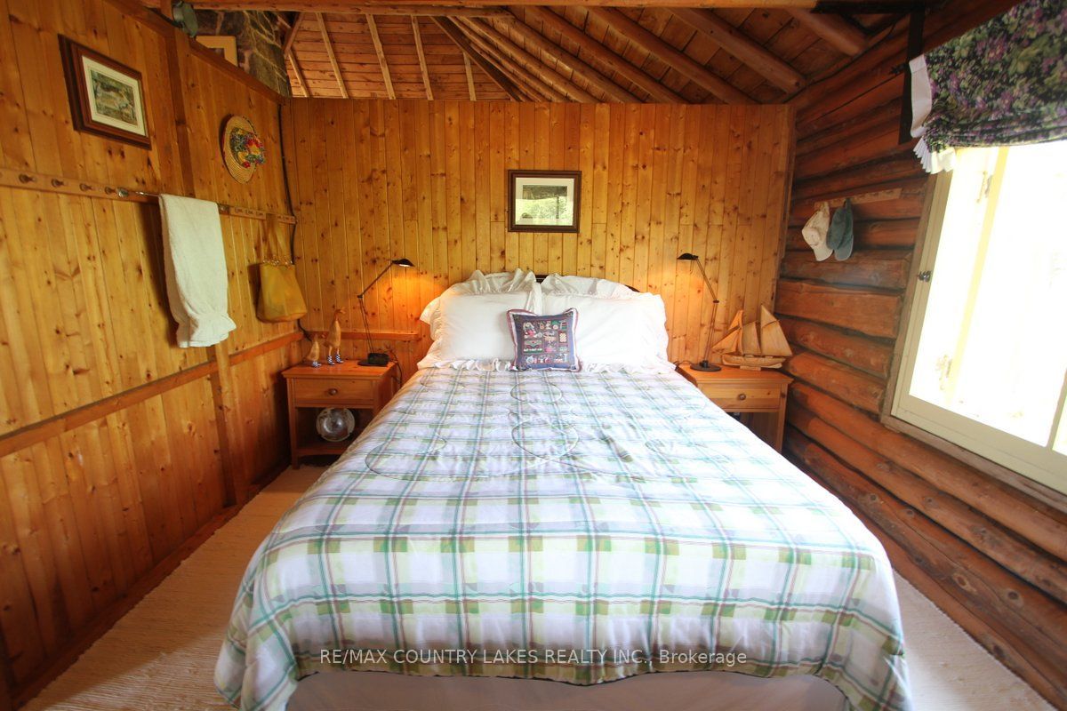 Welcome to this charming 3-bedroom seasonal thorah island retreat, offering the perfect blend of rustic character and thoughtful updates. Nestled on a generous 145 x 150 lot with mature trees and natural beauty, this cottage is accessible only by boat, making it a true private escape. Inside, you'll be greeted by french doors, cathedral ceilings, warm wood accents, and a spacious open-concept layout. The stunning stone wood-burning fireplace, professionally tuck-pointed in 2023, stands as the centerpiece of the cottage space ideal for relaxing evenings with family and friends. The cottage features a 4-piece bath, and key infrastructure has been updated to provide peace of mind, including, waterloo biofilter septic system 2007, new septic pump 2019, new water line to lake 2014 and new shingles 2022. The crystal-clear waterfront is perfect for swimming, with clean, refreshing water right off your dock. Despite the remote feel, you'll appreciate modern conveniences such as weekly garbage and recycling pickup, cell phone service and the option of satellite internet making island living easy and enjoyable. This rustic cottage offers the ideal balance of nature, charm, and comfort, a rare opportunity to own a slice of peaceful island life.