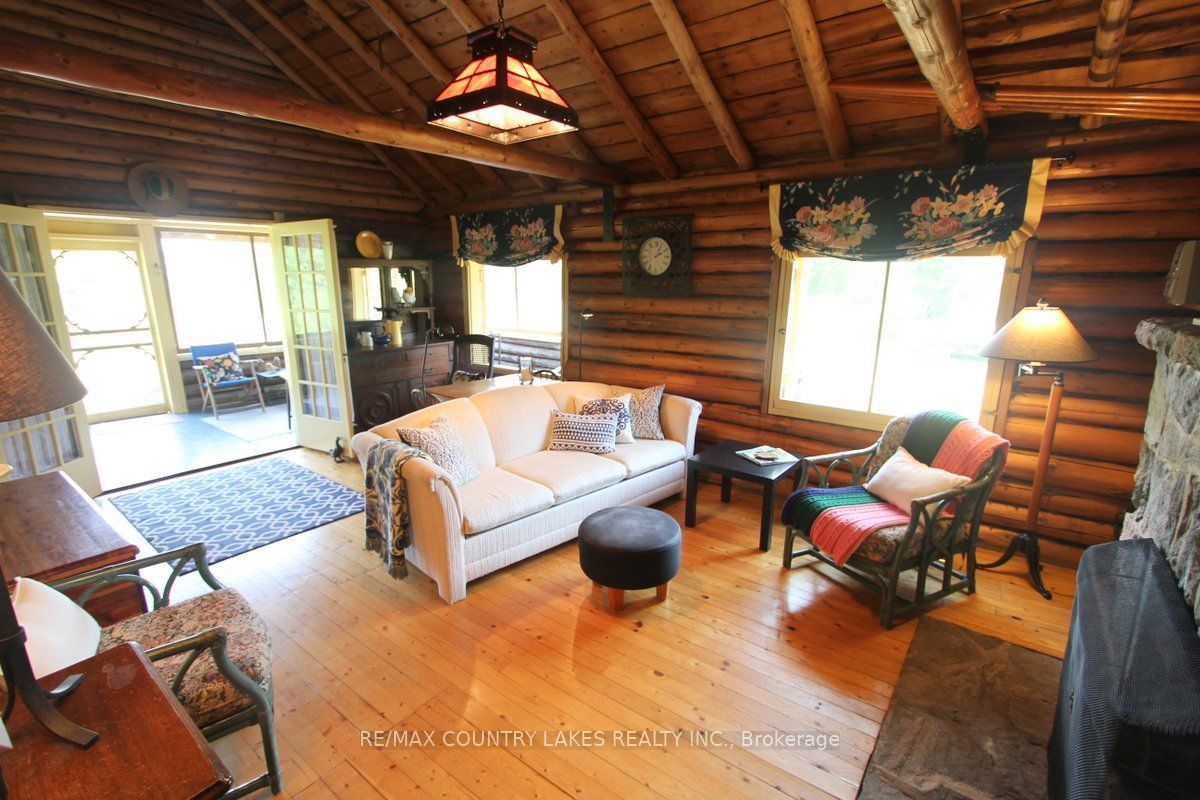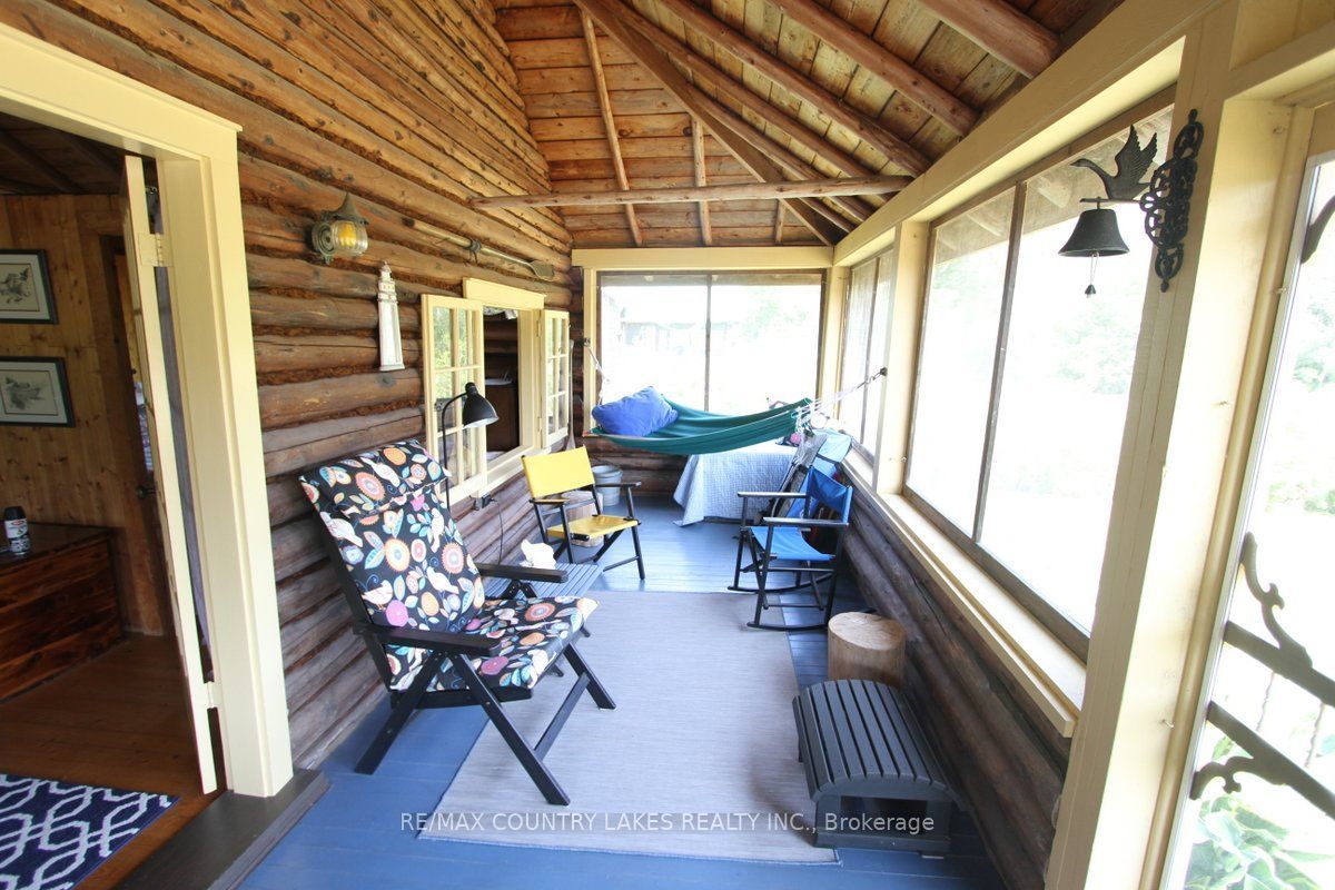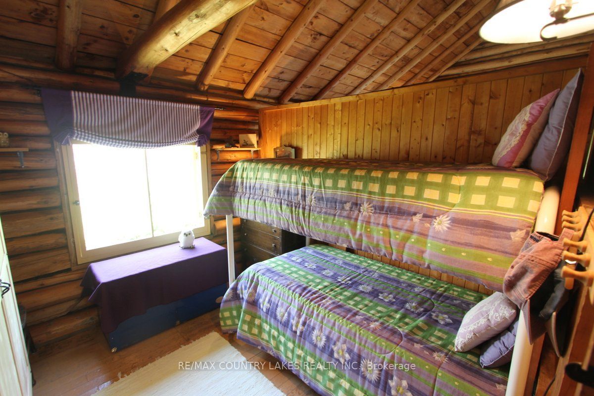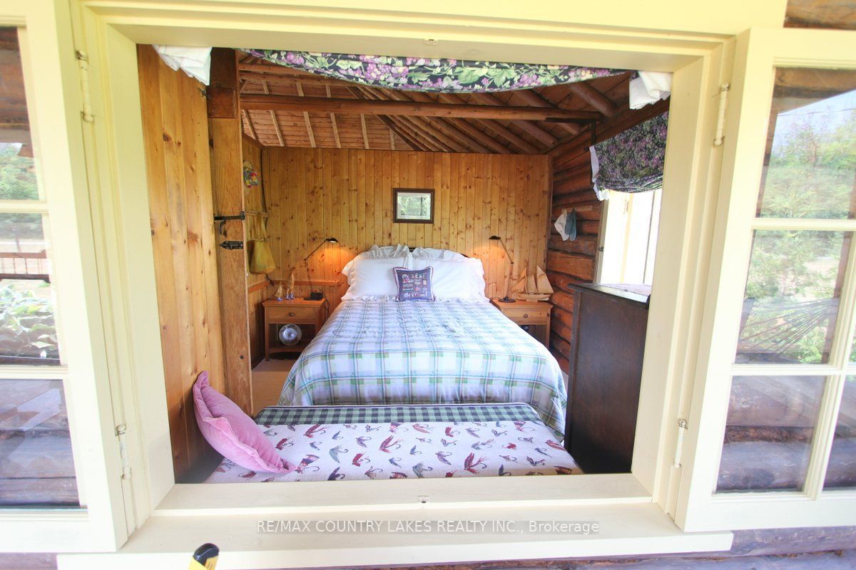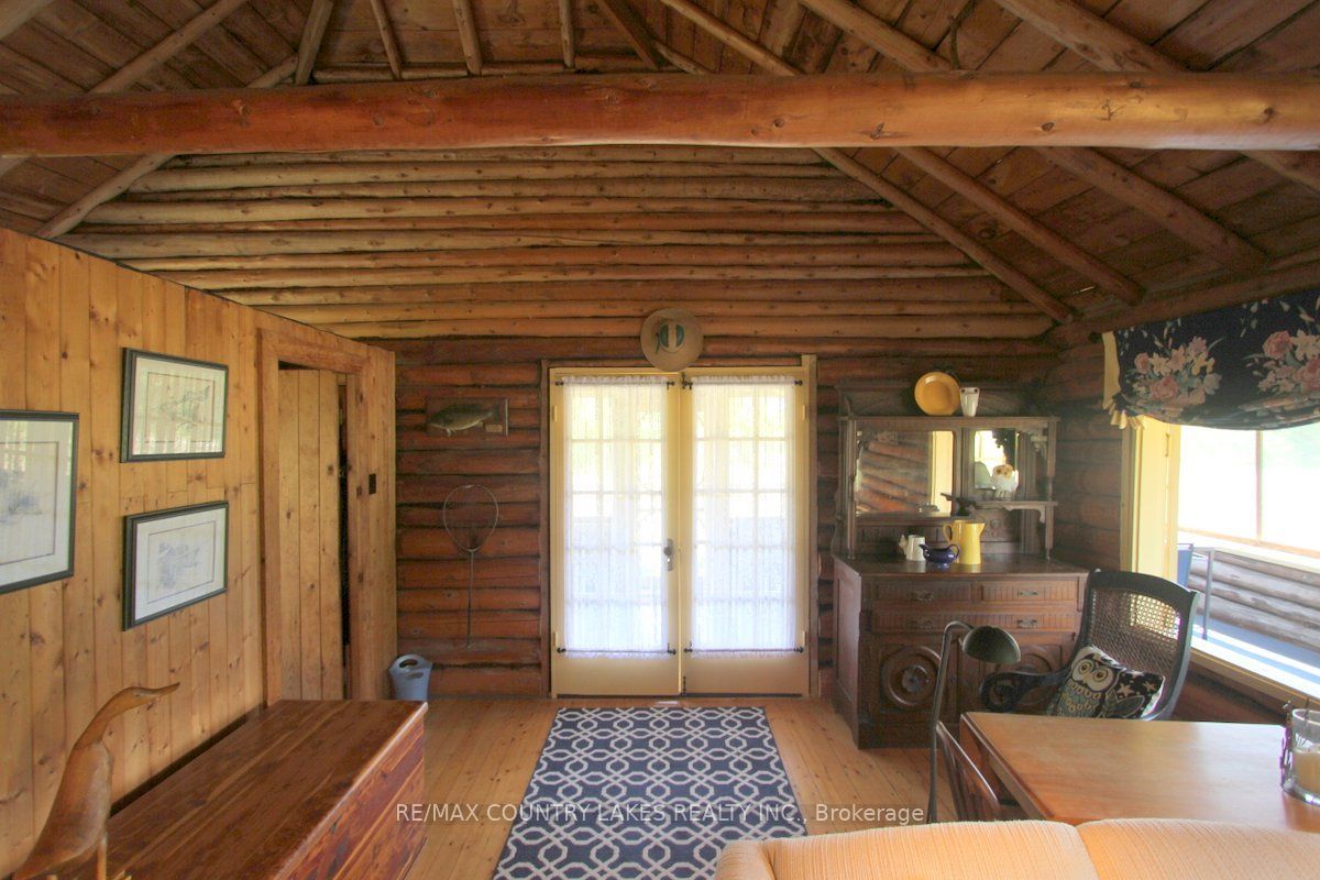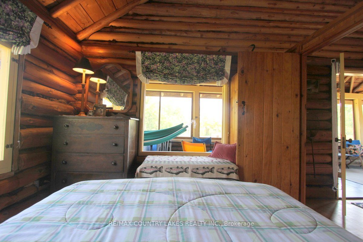 Welcome to this charming 3-bedroom seasonal thorah island retreat, offering the perfect blend of rustic character and thoughtful updates. Nestled on a generous 145 x 150 lot with mature trees and natural beauty, this cottage is accessible only by boat, making it a true private escape. Inside, you'll be greeted by french doors, cathedral ceilings, warm wood accents, and a spacious open-concept layout. The stunning stone wood-burning fireplace, professionally tuck-pointed in 2023, stands as the centerpiece of the cottage space ideal for relaxing evenings with family and friends. The cottage features a 4-piece bath, and key infrastructure has been updated to provide peace of mind, including, waterloo biofilter septic system 2007, new septic pump 2019, new water line to lake 2014 and new shingles 2022. The crystal-clear waterfront is perfect for swimming, with clean, refreshing water right off your dock. Despite the remote feel, you'll appreciate modern conveniences such as weekly garbage and recycling pickup, cell phone service and the option of satellite internet making island living easy and enjoyable. This rustic cottage offers the ideal balance of nature, charm, and comfort, a rare opportunity to own a slice of peaceful island life.