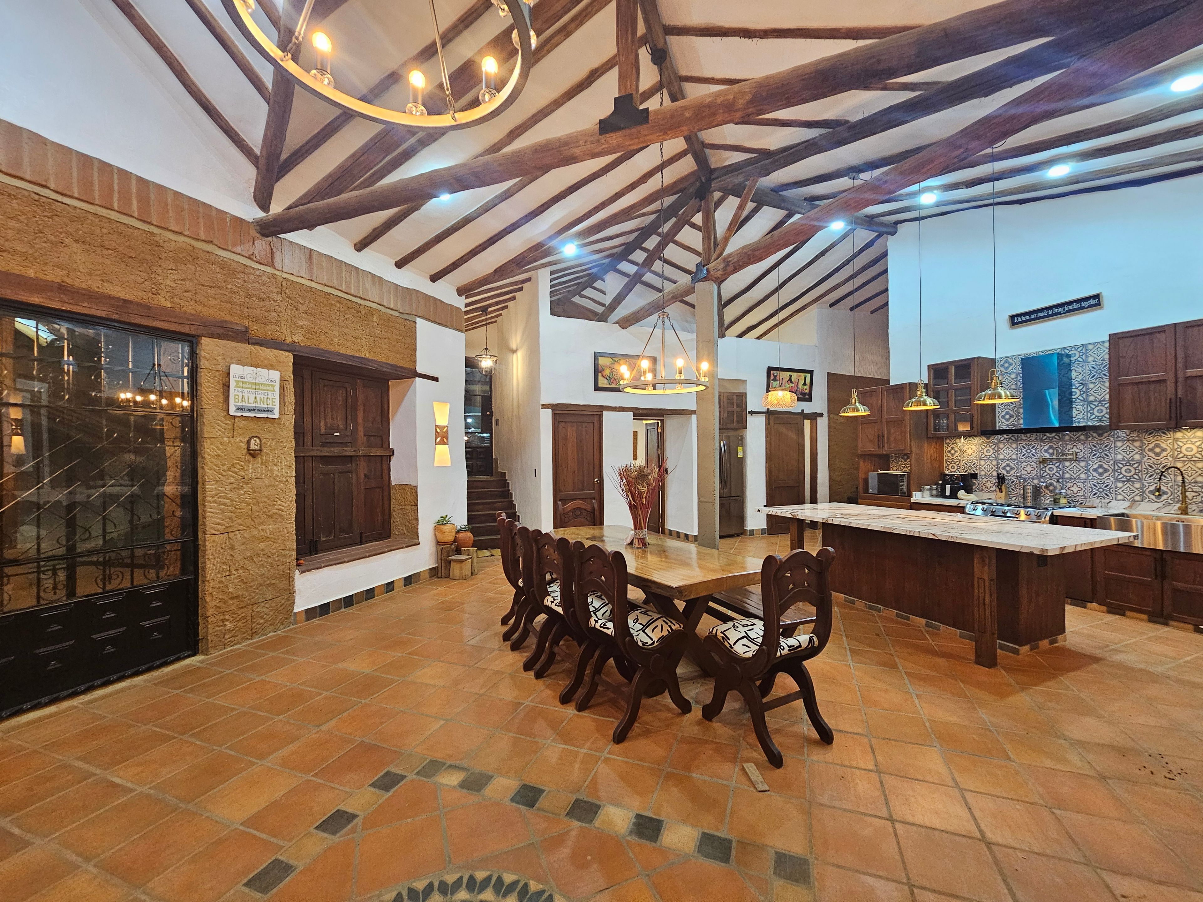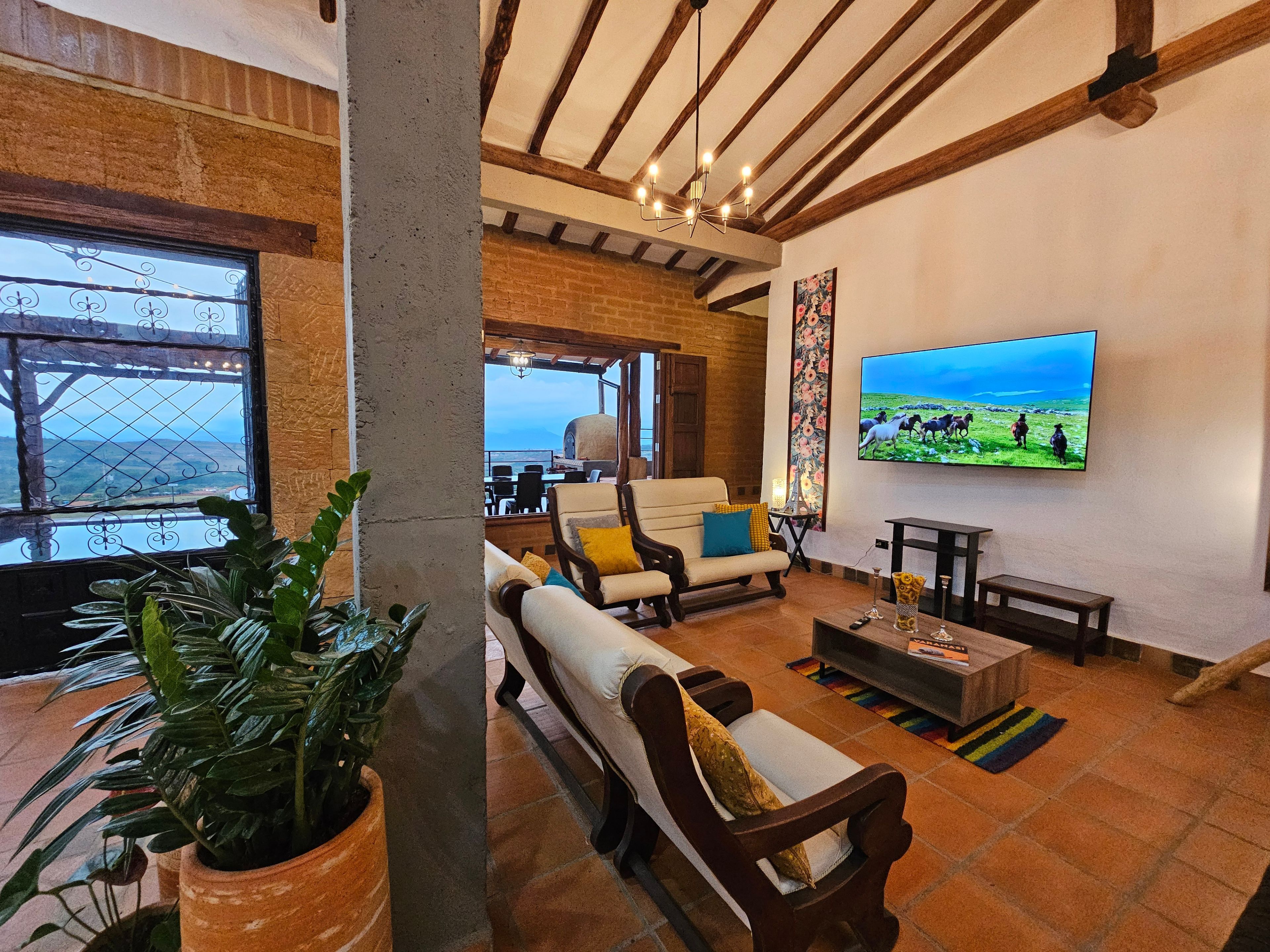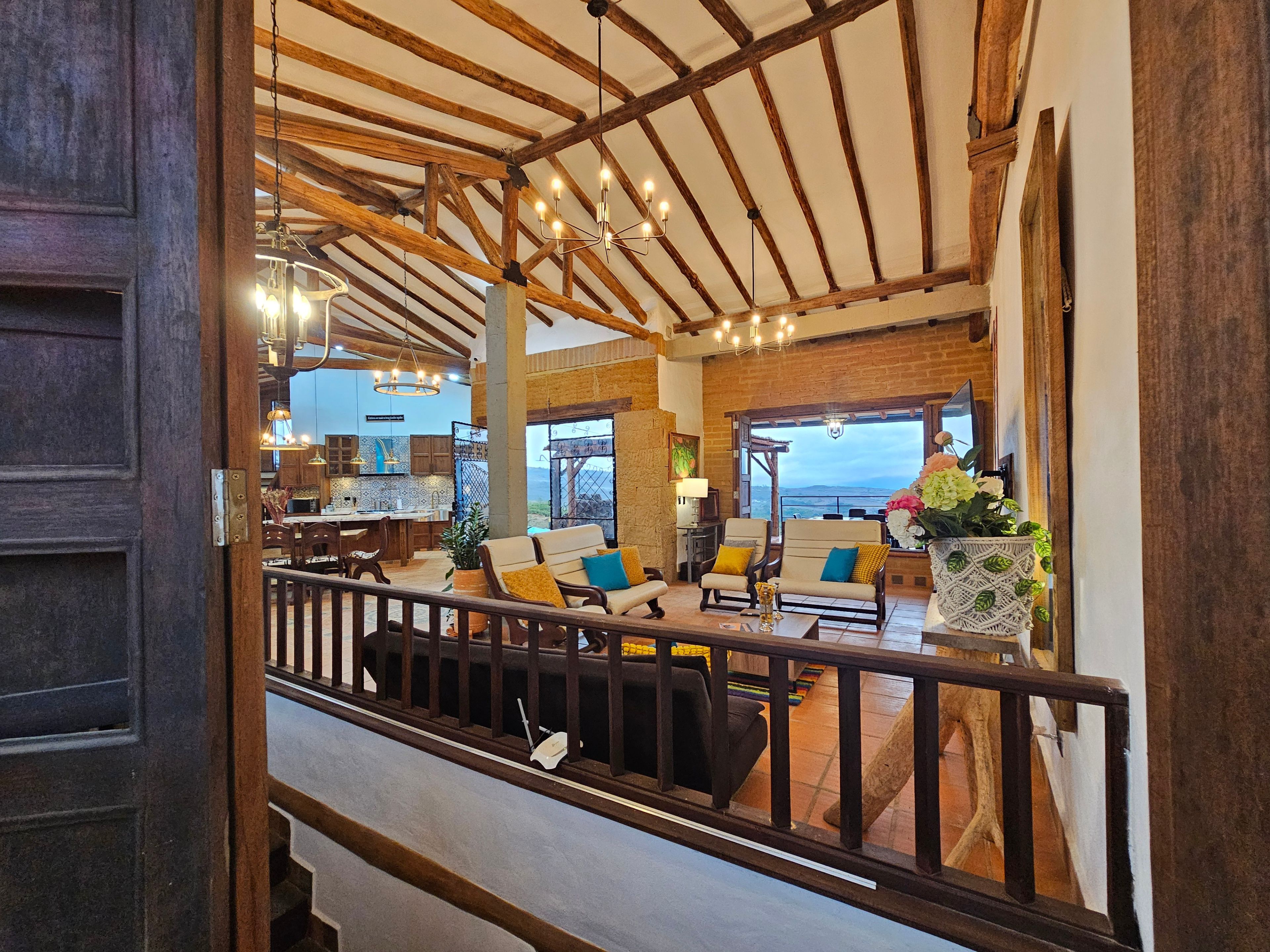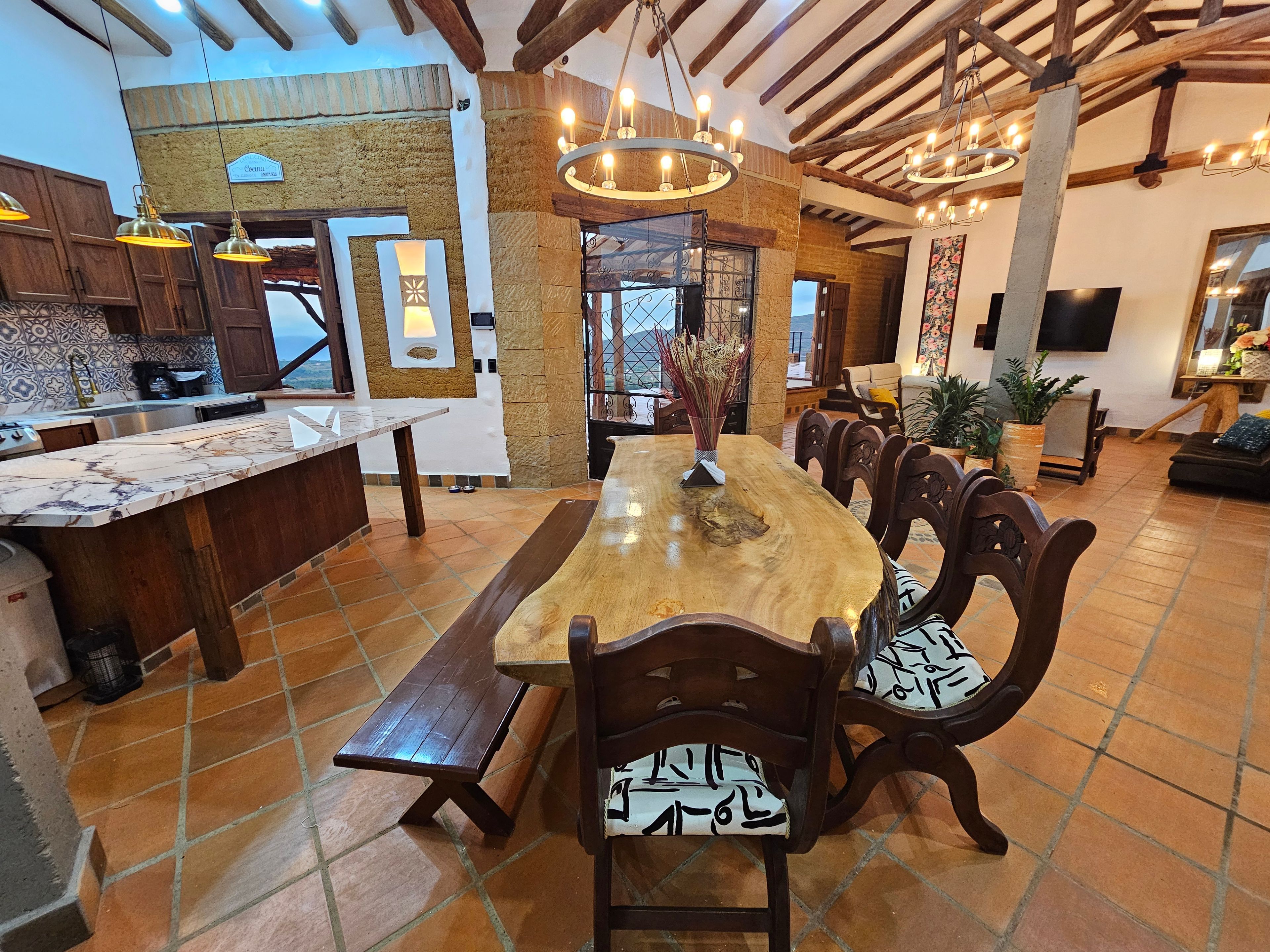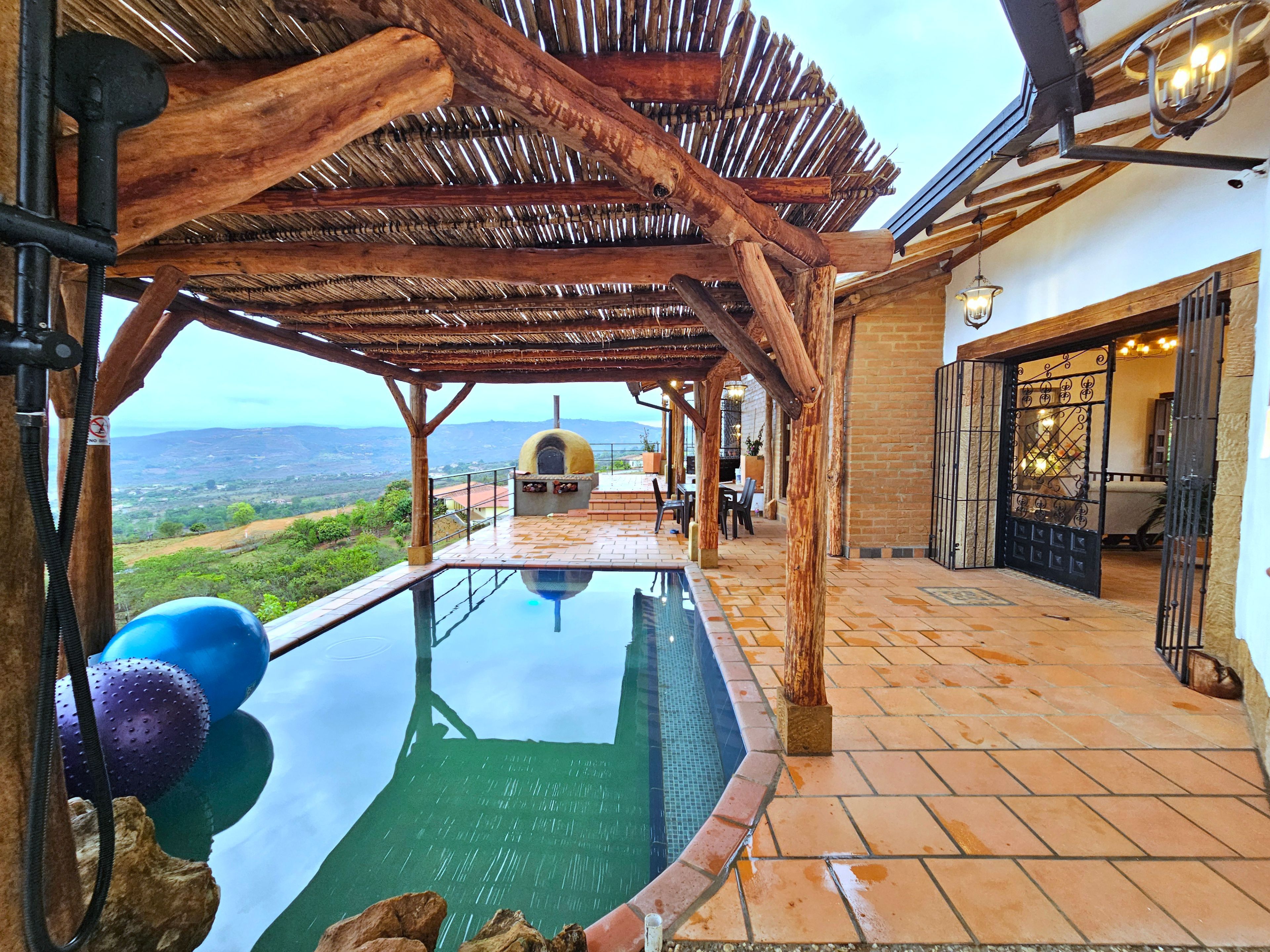 Barichara colombia, own the best location . Experience breathtaking, unobstructed views of the suárez river canyon, the serranía de los yariguíes national park, the andean mountain range to the east, and the picturesque town of barichara. Feel proud to live in a home crafted with authentic regional materialsrammed earth (tapia pisada), natural stone, and rich wooden finishes that reflect the soul of santander. Two homes in one the best location in barichara. This exceptional property offers two fully independent residences on a single estate, perfect for multi-generational living, hosting guests, or generating rental income. Main residence: (first property) enjoy 4 spacious bedrooms, & 4 full bathrooms finished with refined, local touches. Enjoy a generously sized open-concept kitchen with a stainless steel large refrigerator, stove, and dishwasherperfect for entertaining. The family-sized living room opens directly onto a scenic terrace, while the hammock lounge provides 360-degree views of the surrounding beauty. An impressive guest suite or recreational room connects directly to your private soccer field. Independent guest house (second property): a completely separate apartment with its own entrance features 2 large bedrooms, an open living/dining room, a modern open-concept kitchen, and a full 3-piece bathroom. Ideal for guests, caretakers, or as a rental unit. At the heart of the outdoor space is an stunning infinity-edge pool with a built-in jacuzzi and counter-current propulsion system, perfect for swimming laps or relaxing with a view. The pool is nestled between panoramic terraces and has direct access from the living room and principal bedroom. Next to the pool, enjoy a stone oven and dinning area designed for hosting unforgettable meals. The estate includes, charming stone pathways and retaining walls, a multi-sport court, and large tranquil walking trails shaded by native trees a perfect blend of nature, comfort, rustic design, and timeless elegance.