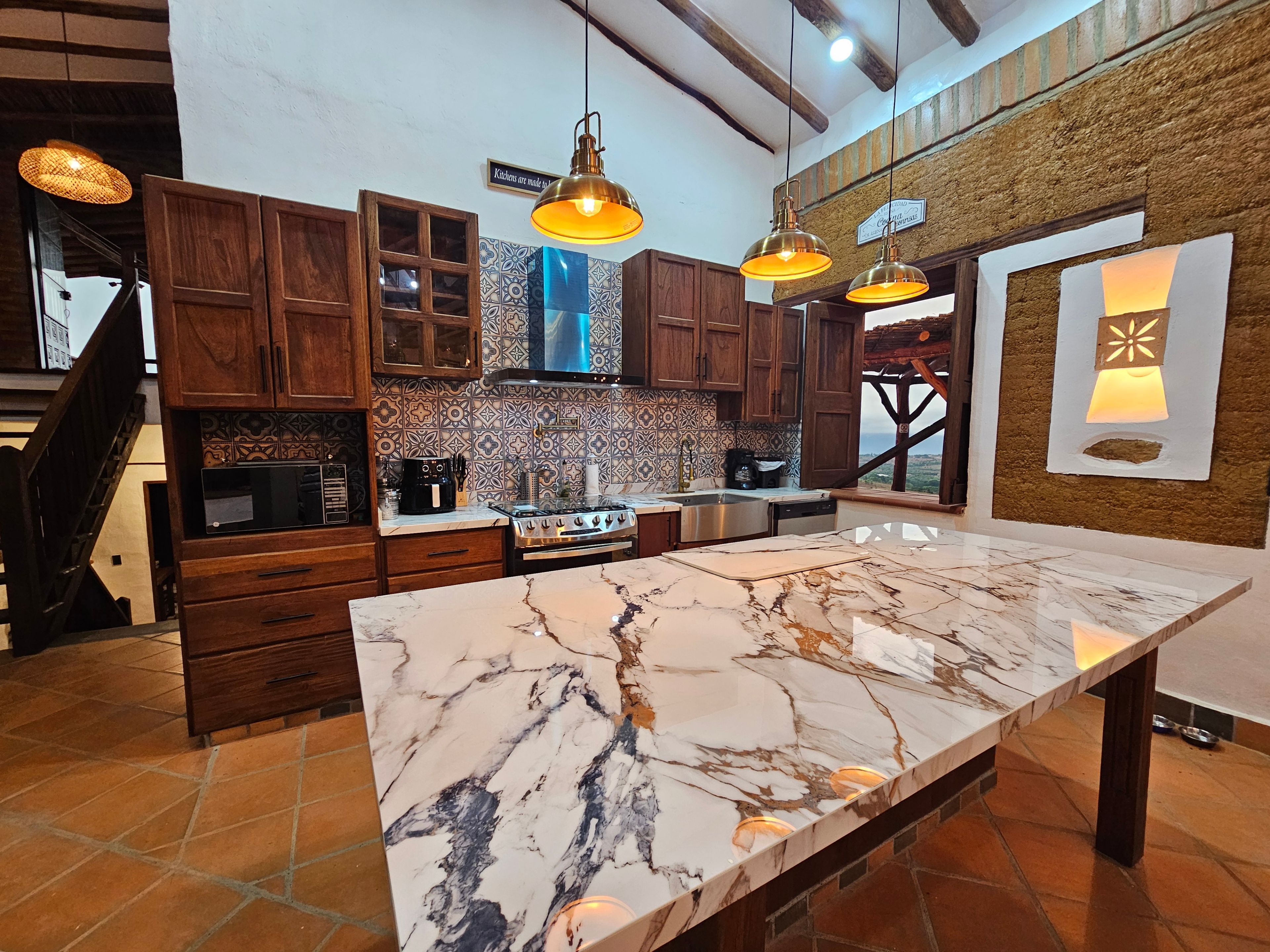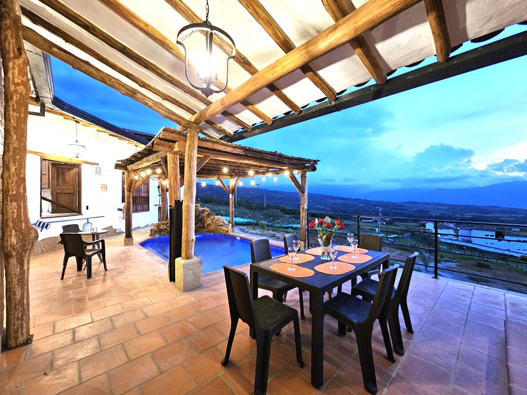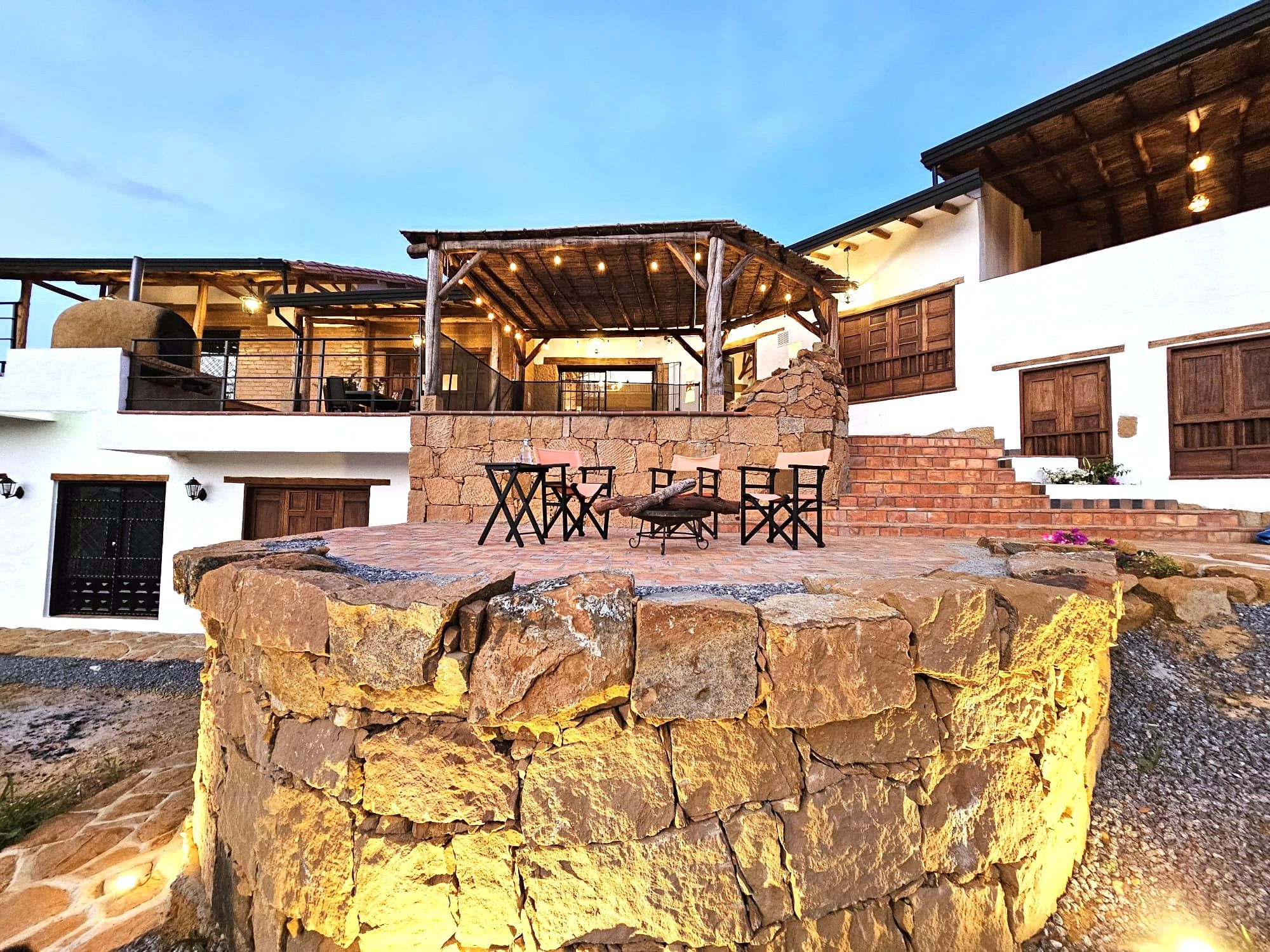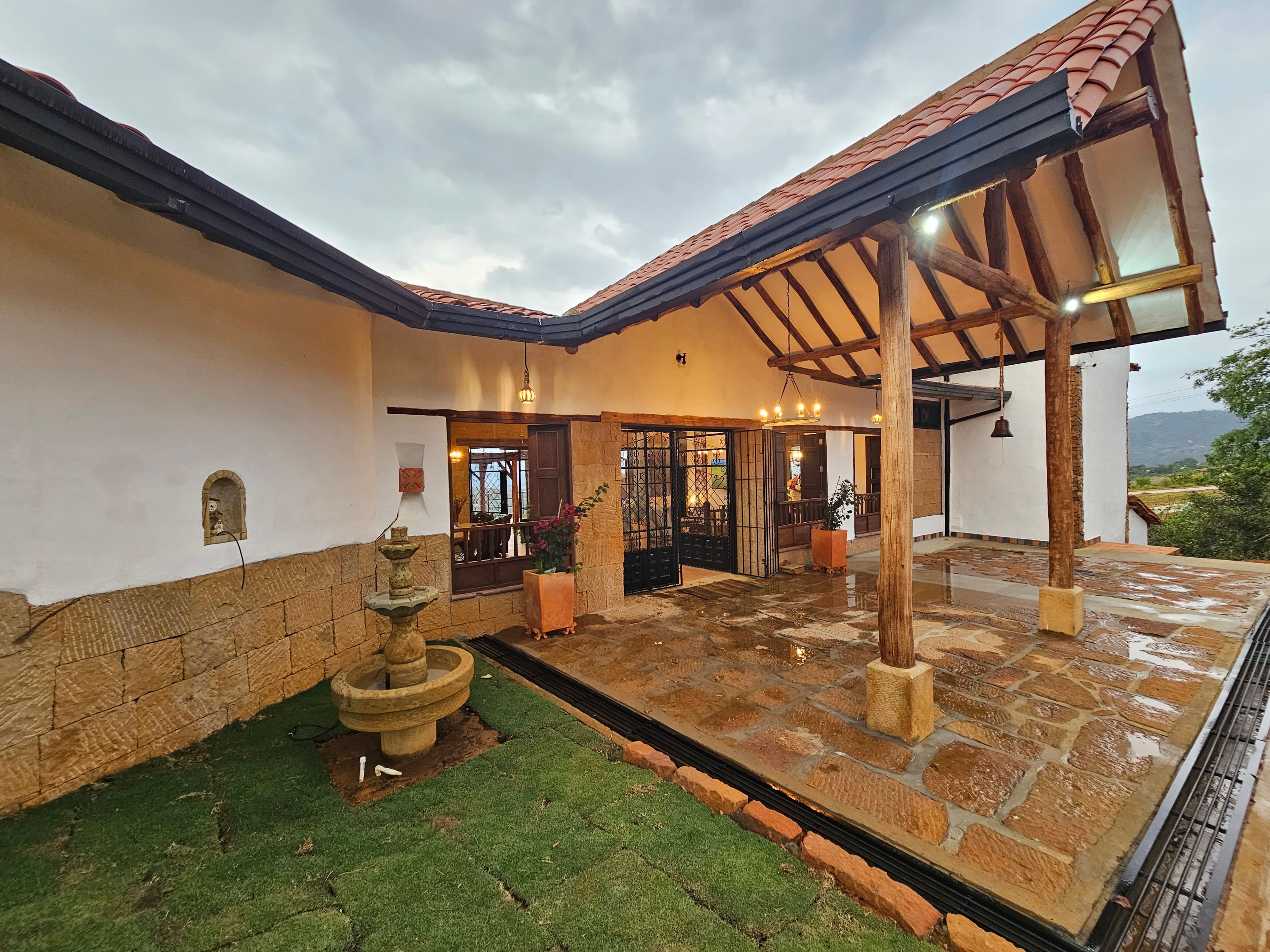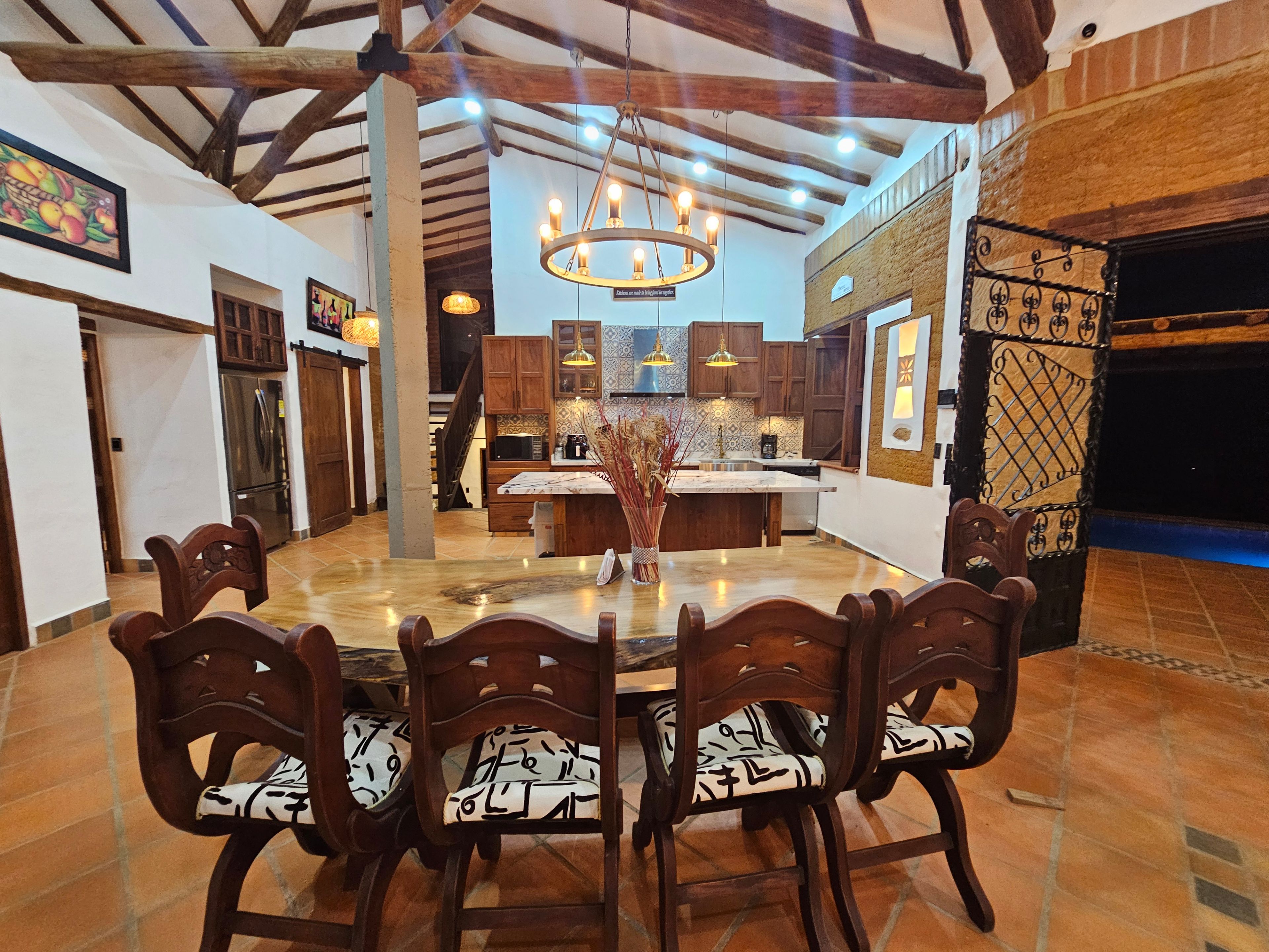 Barichara colombia, own the best location . Experience breathtaking, unobstructed views of the suárez river canyon, the serranía de los yariguíes national park, the andean mountain range to the east, and the picturesque town of barichara. Feel proud to live in a home crafted with authentic regional materialsrammed earth (tapia pisada), natural stone, and rich wooden finishes that reflect the soul of santander. Two homes in one the best location in barichara. This exceptional property offers two fully independent residences on a single estate, perfect for multi-generational living, hosting guests, or generating rental income. Main residence: (first property) enjoy 4 spacious bedrooms, & 4 full bathrooms finished with refined, local touches. Enjoy a generously sized open-concept kitchen with a stainless steel large refrigerator, stove, and dishwasherperfect for entertaining. The family-sized living room opens directly onto a scenic terrace, while the hammock lounge provides 360-degree views of the surrounding beauty. An impressive guest suite or recreational room connects directly to your private soccer field. Independent guest house (second property): a completely separate apartment with its own entrance features 2 large bedrooms, an open living/dining room, a modern open-concept kitchen, and a full 3-piece bathroom. Ideal for guests, caretakers, or as a rental unit. At the heart of the outdoor space is an stunning infinity-edge pool with a built-in jacuzzi and counter-current propulsion system, perfect for swimming laps or relaxing with a view. The pool is nestled between panoramic terraces and has direct access from the living room and principal bedroom. Next to the pool, enjoy a stone oven and dinning area designed for hosting unforgettable meals. The estate includes, charming stone pathways and retaining walls, a multi-sport court, and large tranquil walking trails shaded by native trees a perfect blend of nature, comfort, rustic design, and timeless elegance.