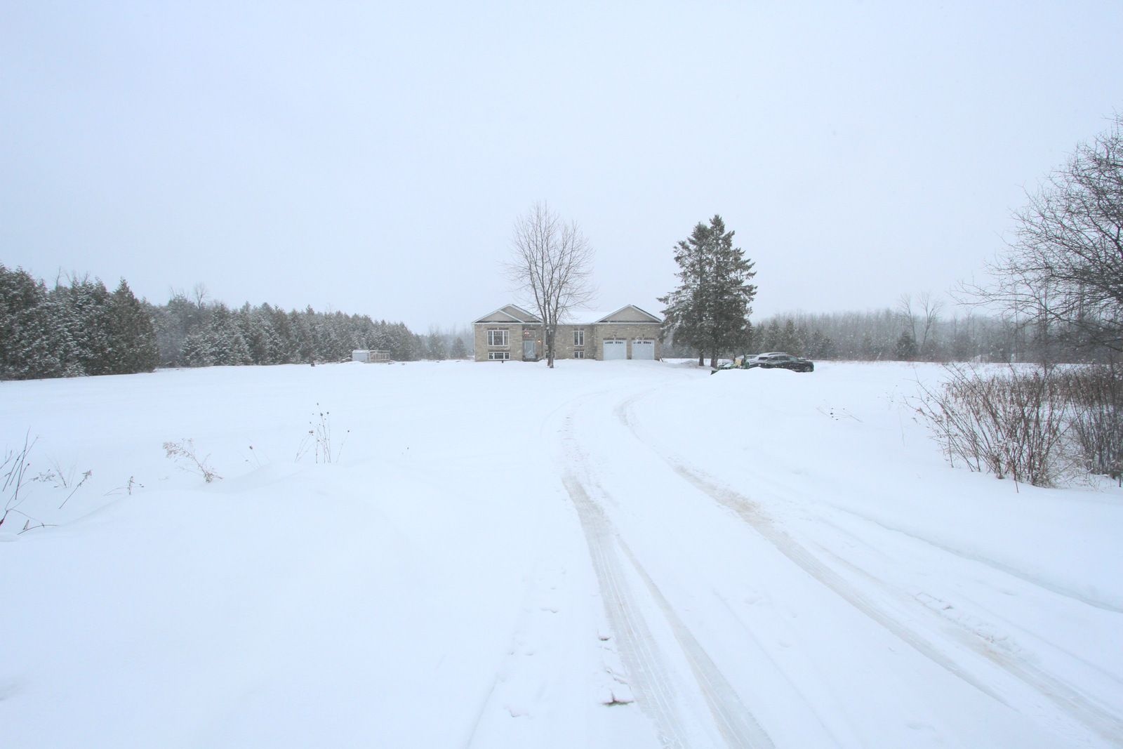 Set on a stunning 10. 15-acre parcel, this beautifully crafted 10-year-old custom raised bungalow offers approximately 2,200 sq ft of thoughtfully designed living space in an exceptionally private and peaceful setting. A picturesque stream meanders through the rear of the property, attracting abundant wildlife and creating a truly serene backdrop. Inside, the open-concept kitchen and living area features a striking cathedral ceiling, a central island, and a walkout to the covered rear deck - perfect for entertaining or relaxing while enjoying the natural surroundings. Hardwood flooring flows throughout the home, complemented by elegant egyptian ceramic tile in the foyer and kitchen. The layout includes a formal dining room and a spacious primary bedroom complete with a 3-piece ensuite. The unfinished basement, with its above-grade windows, provides excellent potential for future expansion. A convenient laundry room offers direct access and a walkout to the attached double-car garage. Approximately 3-4 acres surrounding the home are cleared and maintained, while the remaining 6 acres remain beautifully untouched. Ideally located with easy access to amenities and just a short 5-minute drive to lake simcoe, this property perfectly balances privacy, nature, and convenience.