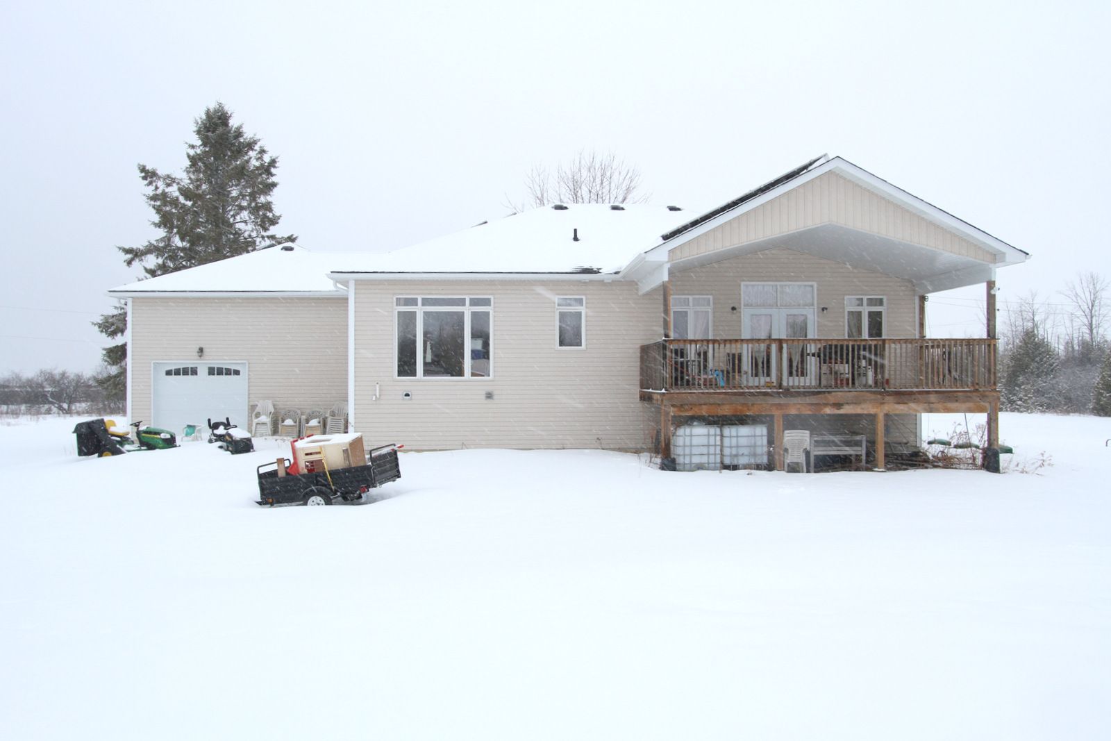 • Spacious custom raised bungalow on a private 10.15-acre lot.