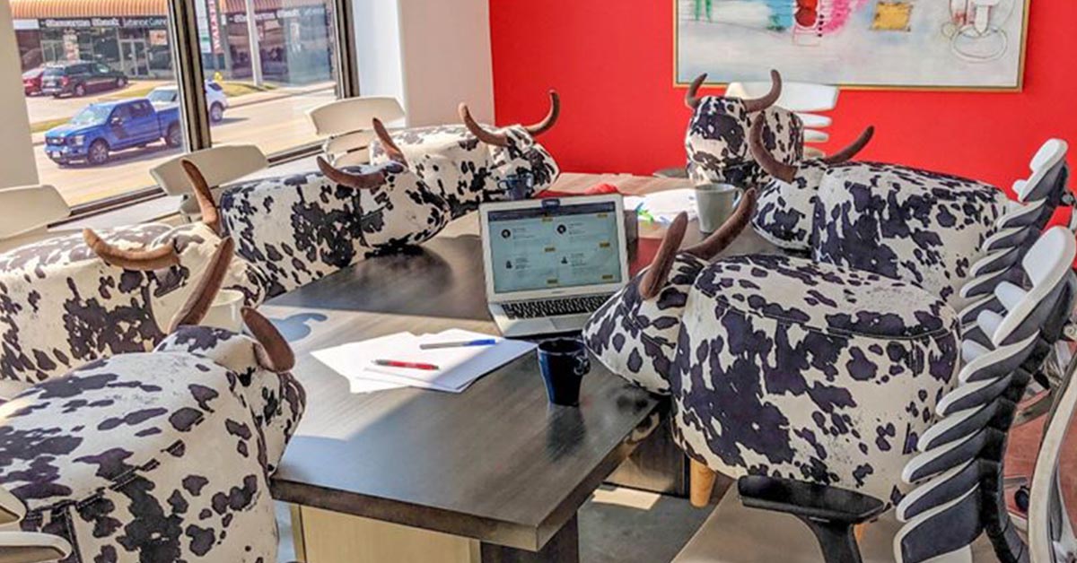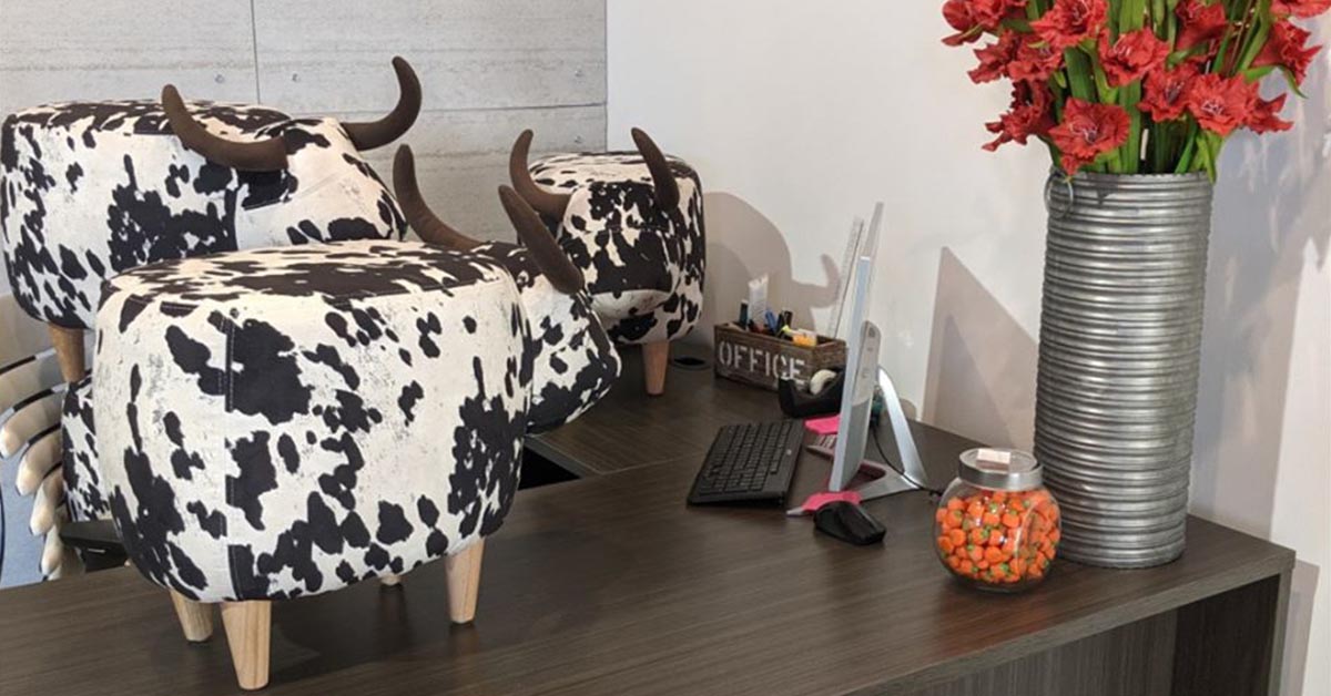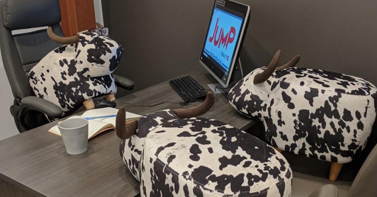 One of the crowd favourite features of this office is our black and white cows that are always #uptonogood. You will never see these guys in the same position twice. They are always herding around the office seeing what they can get into next. Clients, friends, and family are always on the lookout for the cows the second they step foot into the hub. The Jump hub cows make our office a #reallifetoystory.
