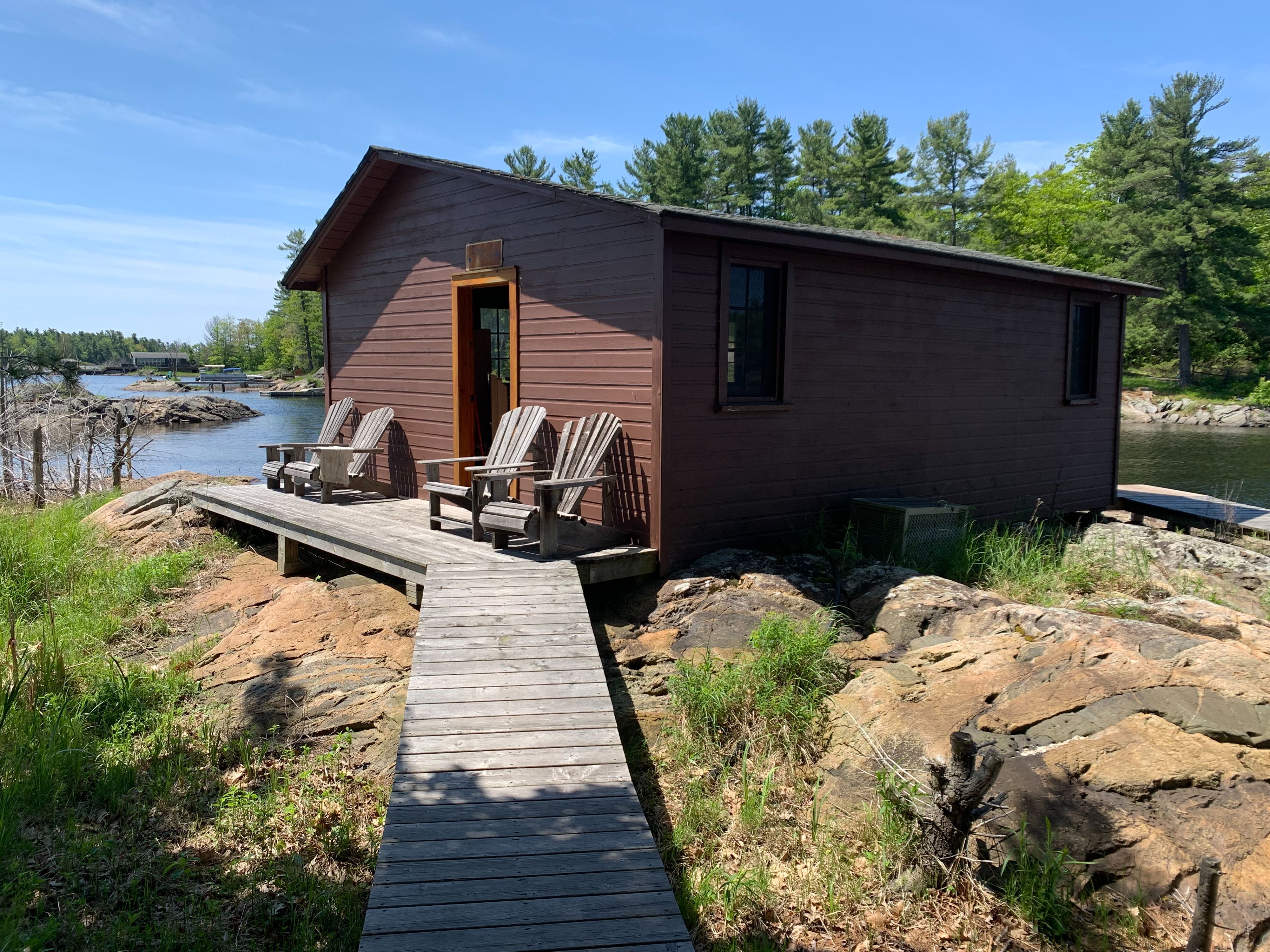 Well treed island in the heart of the massasauga wilderness water access park. Located in the small summer community known as sans souci. This property offers great views & privacy. The boathouse has great storage for boats, motors and fishing gear. From the water on the wooden walkway to the cottage, will pass a well appointed guest cabin with bath & electricity. Main cottage has a great open concept featuring a country kitchen, cathedral ceilings & a large fully stone floor to ceiling fireplace. Dining room is surrounded by windows & has a great view to the open water of the bay. A screen porch attached to a newly built large deck. Down by the water you will find a great entertainment deck, great place to hang out on those hot summer days. This is a rare opportunity for your family to have your own private island that is well maintained with all the features of a traditional georgian bay cottage.