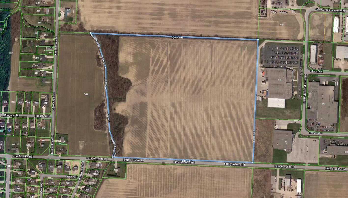 Potential future development opportunity. Approximately 73 acres of land, as per geowarehouse, designated as urban reserve in the official plan. This property offers significant potential for residential, commercial, or employment-related development. The site features 1,848 feet of frontage on little baseline road and a depth of approximately 1,618 feet, with 2207 feet back. Municipal services are available either at the lot line or nearby, enhancing development feasibility. Strategically located in an area surrounded by established residential and industrial developments, the property is situated just down the road from the new high-tech industrial park, offering excellent proximity to future growth.