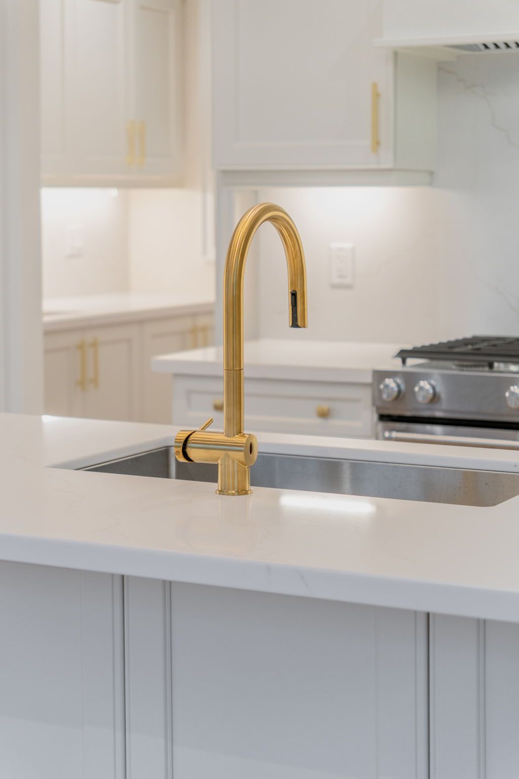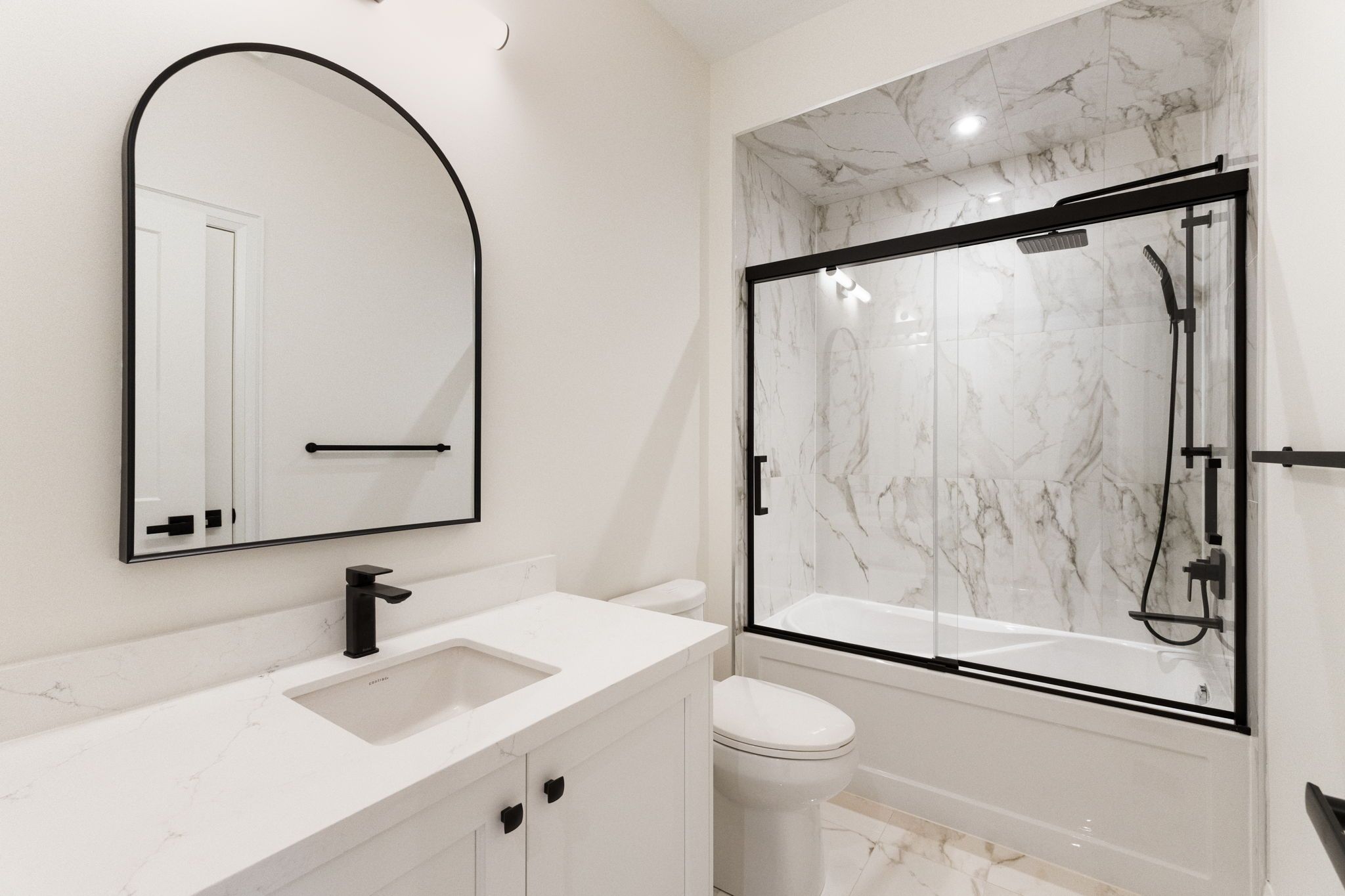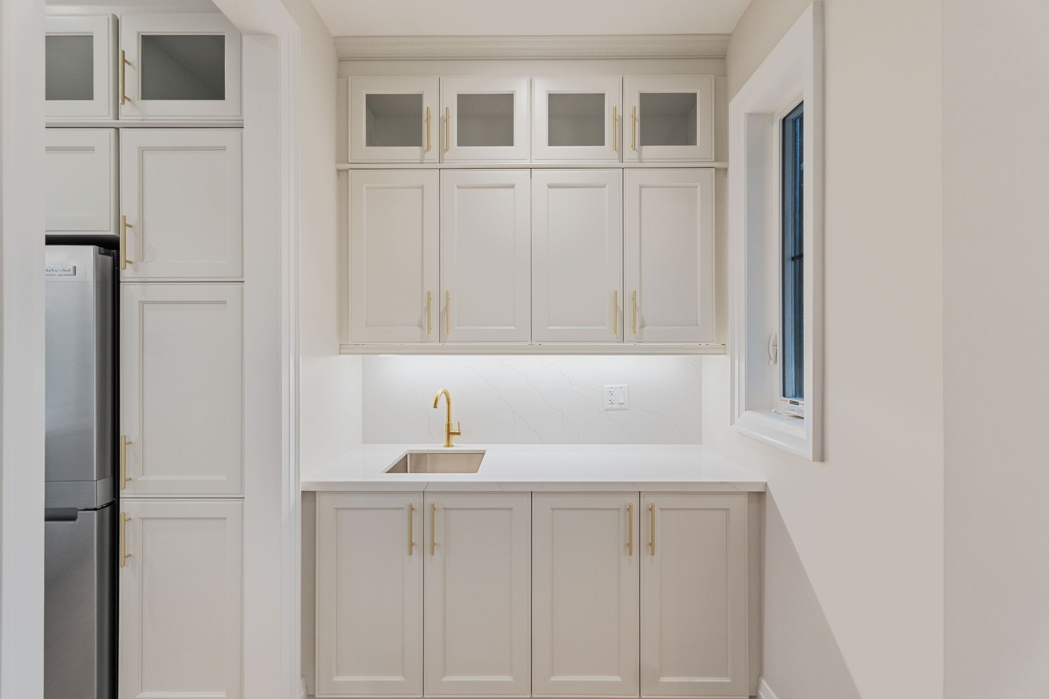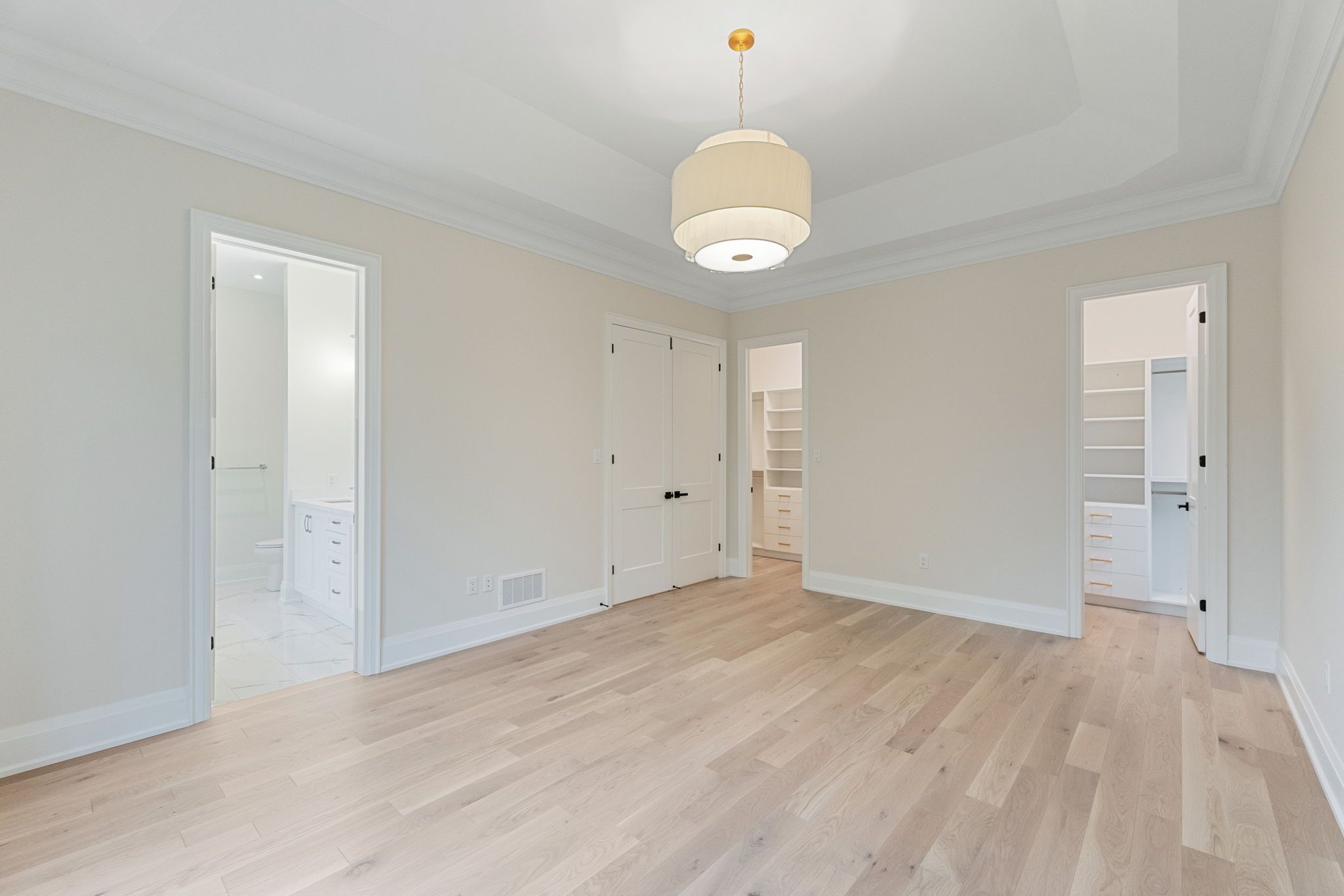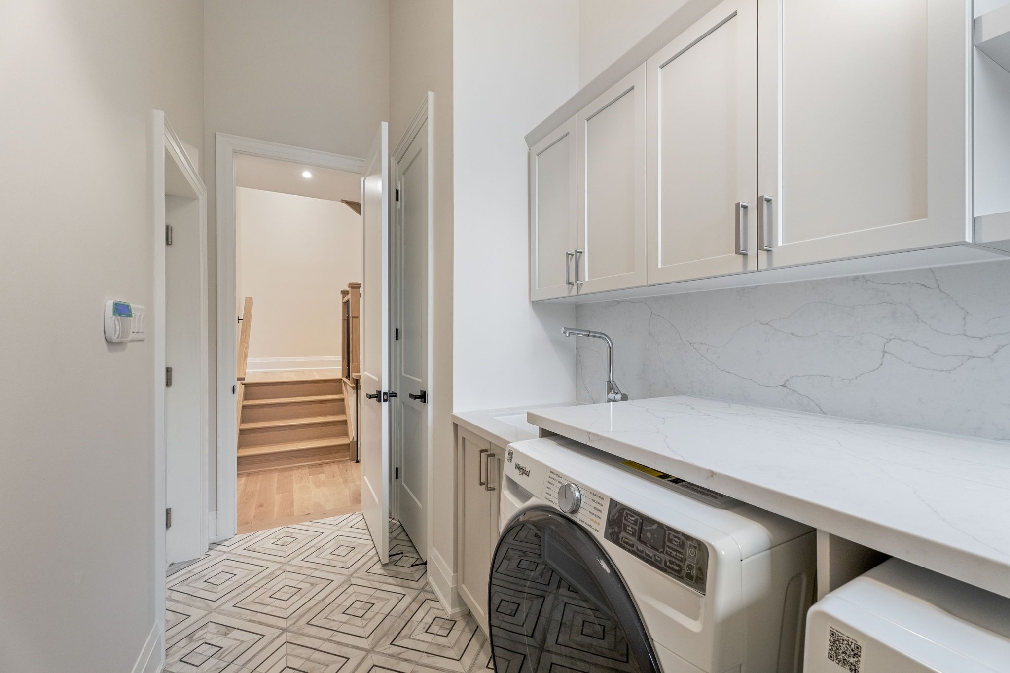 • Gourmet kitchen with quartz countertops and seamless engineered hardwood floors.