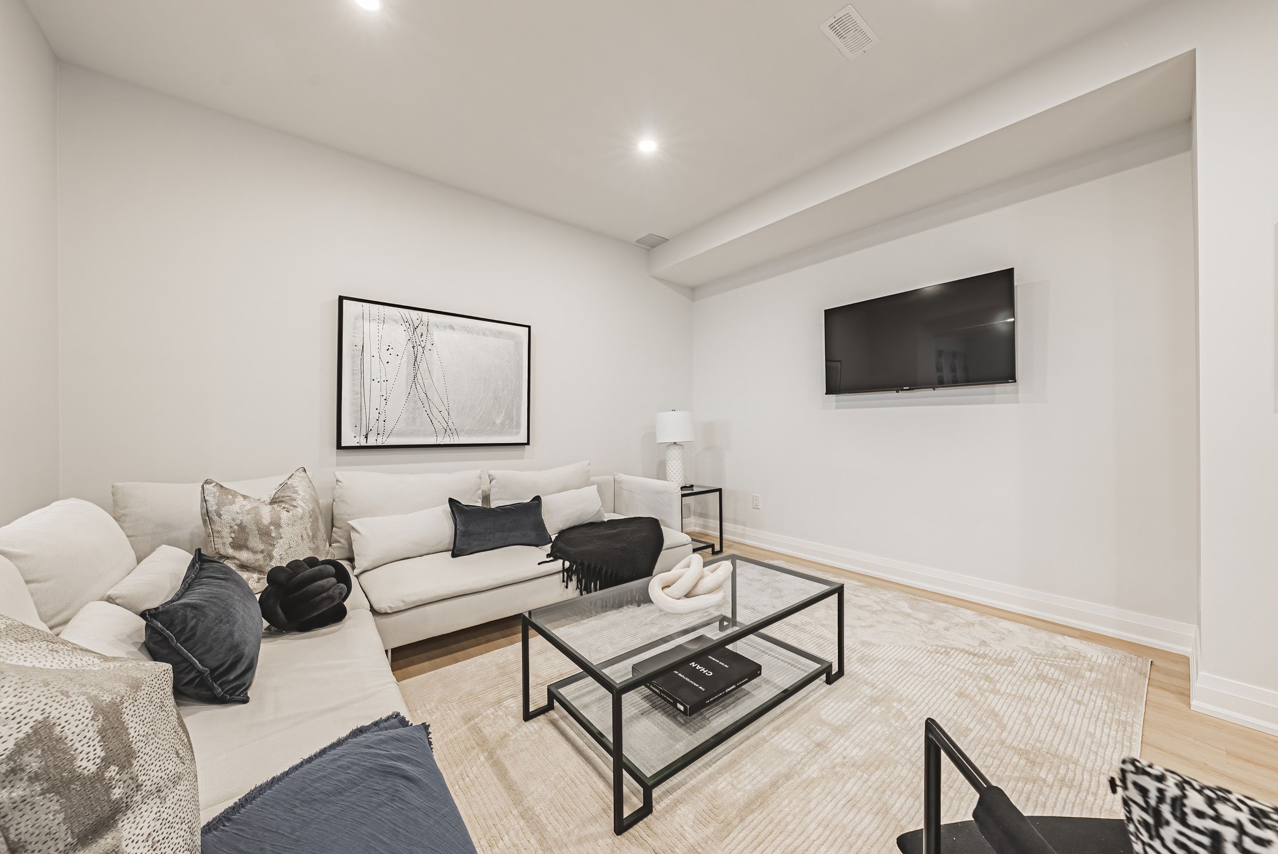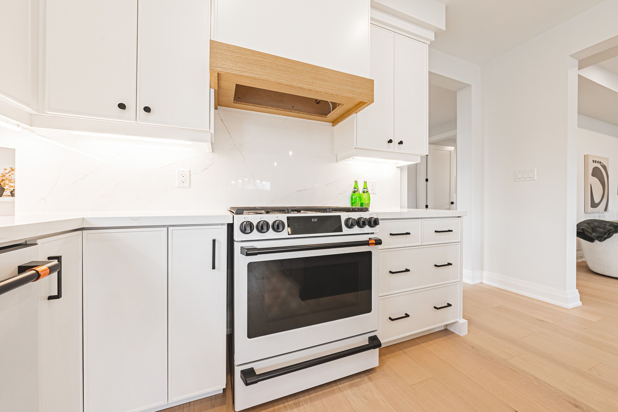 • Gourmet kitchen features quartz countertops and soft-close cabinetry.