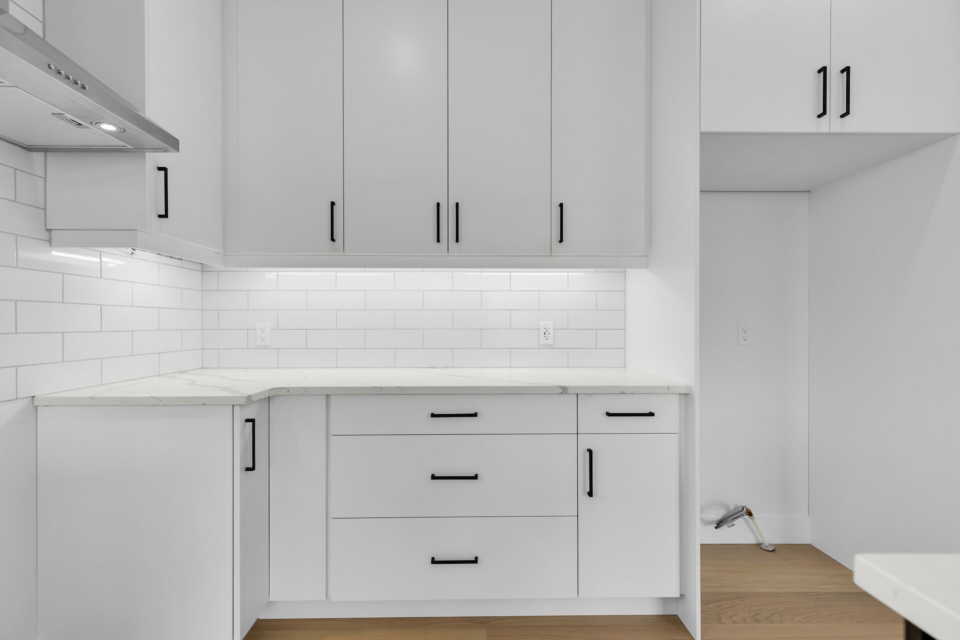 • Stylish open concept living area with 9ft ceilings and hardwood flooring.