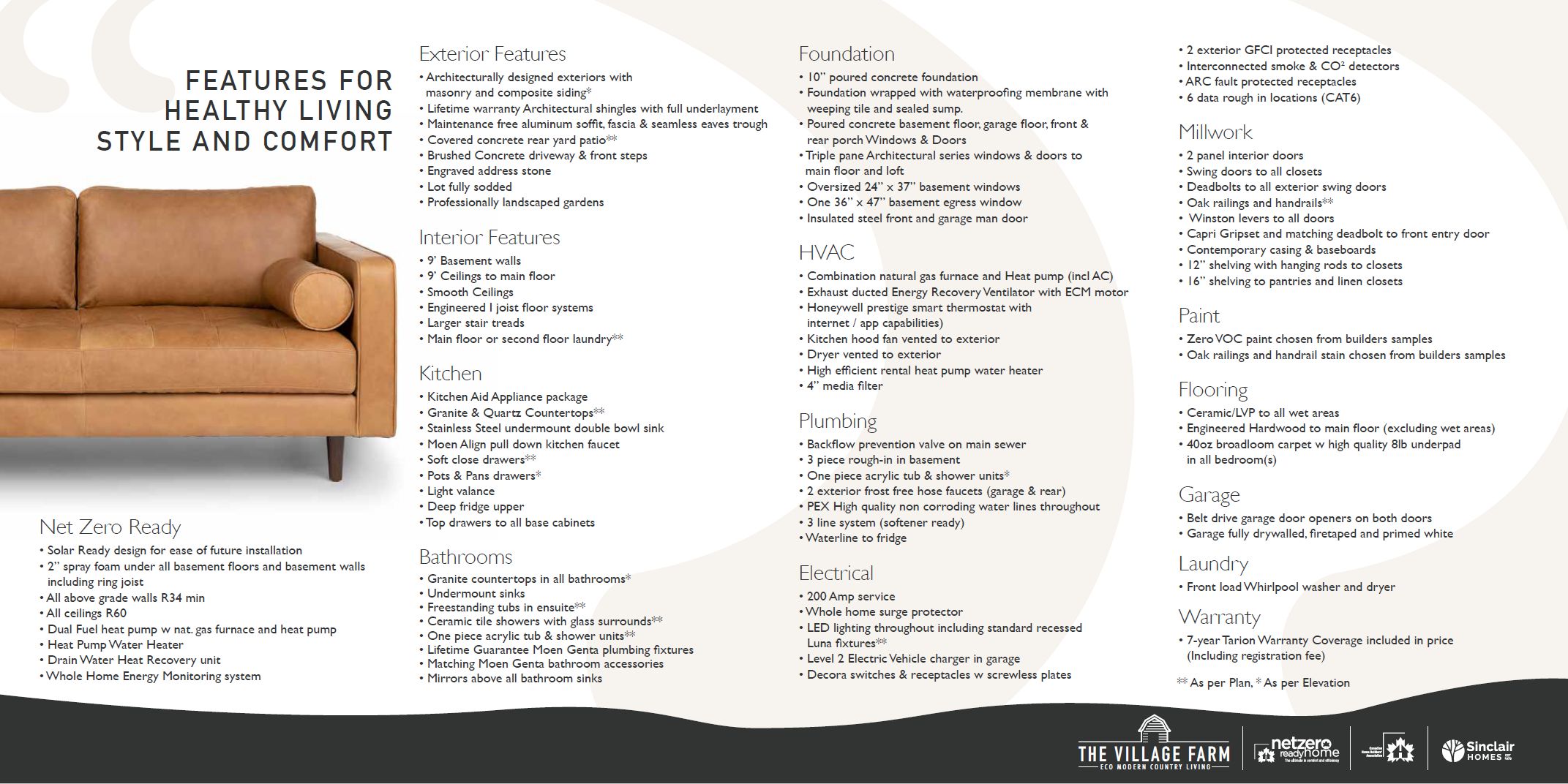 • Net Zero Ready home with superior insulation and energy efficiency.