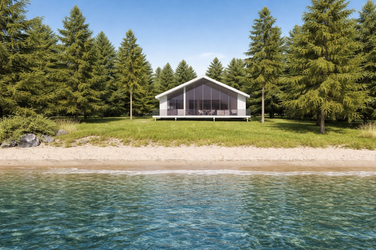 **luxury off-grid living: a modern masterpiece on giant's tomb island** discover the pinnacle of island exclusivity on the protected leeward side of giant's tomb island. This to be built 1,470 sq. Ft. Contemporary cottage offers a rare opportunity to own a sustainable sanctuary in southern georgian bay, adjacent to the pristine wilderness of awenda provincial park. The "shed roof", one of two designs, is a triumph of modern aesthetics and functional island living. A full-height glazing wall spans the lake-facing façade, capturing uninterrupted, panoramic views of the bay's turquoise waters. The home is engineered for a seamless indoor-outdoor lifestyle, featuring a true beachfront walkout design that leads from the living space directly to a full-width deck and your own private shoreline. At the heart of the home is an expansive open-concept great room, perfectly designed for entertaining. The chef-inspired kitchen features a central social island and a walk-in pantry for effortless storage. A private primary bedroom suite is a secluded retreat situated in the right wing, ensuring maximum privacy from guest areas. Two other well-proportioned bedrooms in the left wing share a full bath. A centrally located den serves as the perfect home office or overflow sleeping area. Embrace off-grid independence and self-sufficiency with a state-of-the-art rooftop solar power system, complete with an inverter and battery storage. This smart-home-ready build includes high-performance energy-efficient glazing, a modern septic system, and fully pressurized domestic water systems, ensuring luxury comfort in a remote setting. The ultimate georgian bay retreat. Experience the rugged beauty of granite boulders and crystal-clear water from a home designed to blend into the natural environment. Pick one of three lots and customize your vision of island luxury. **all home imagery is conceptual**