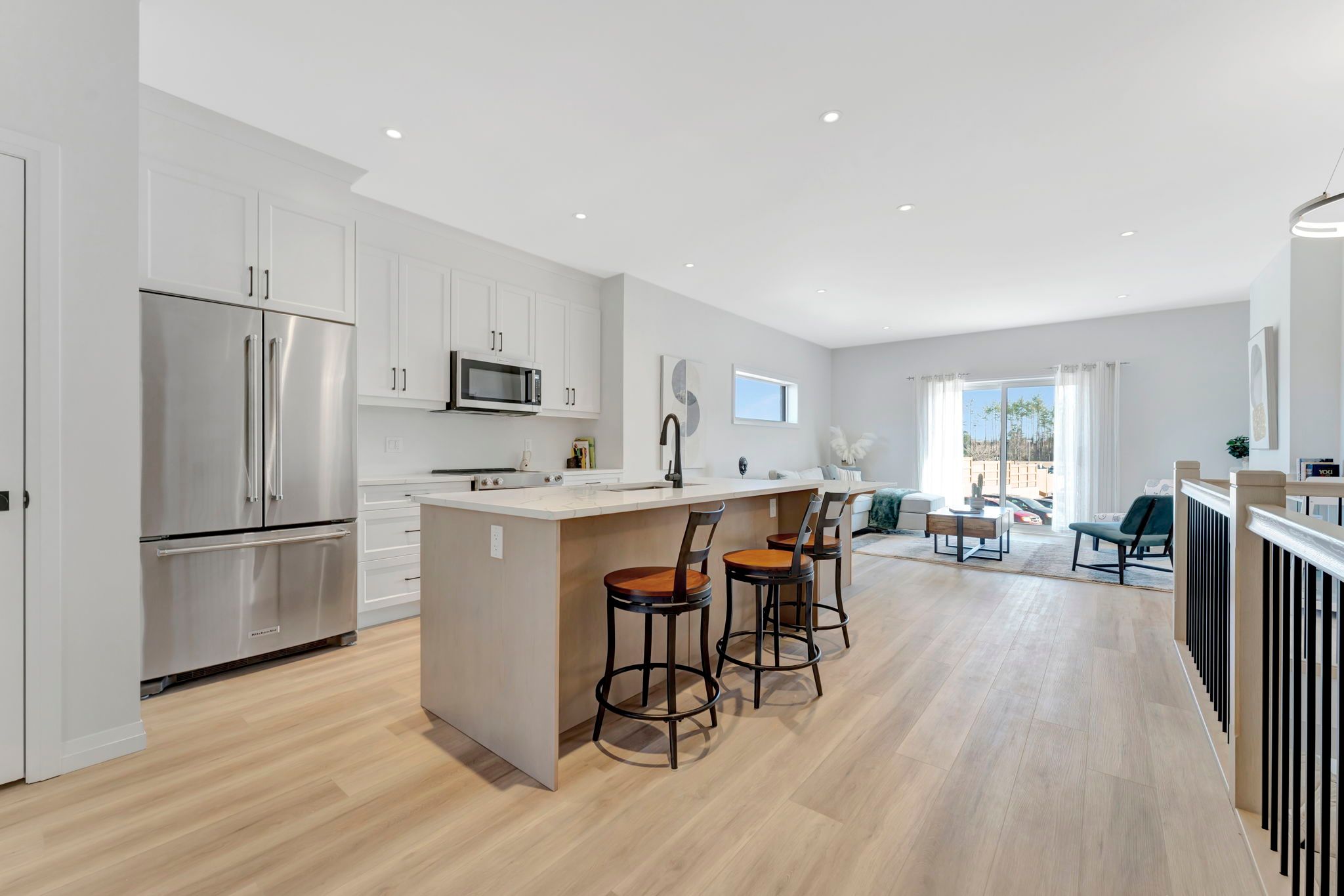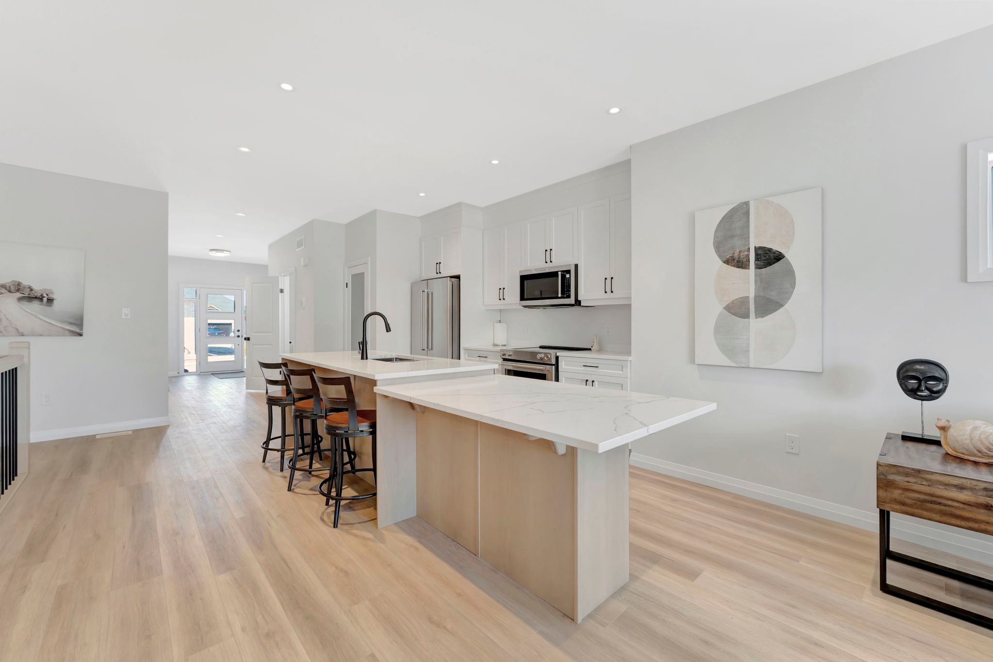• Luxurious features include stone countertops and high-end appliances.